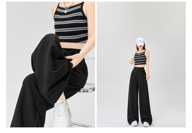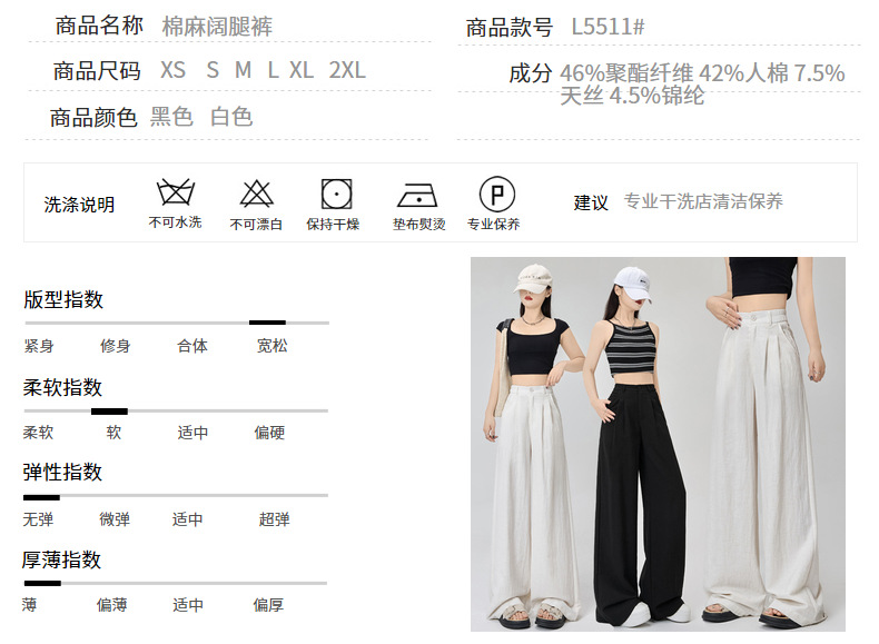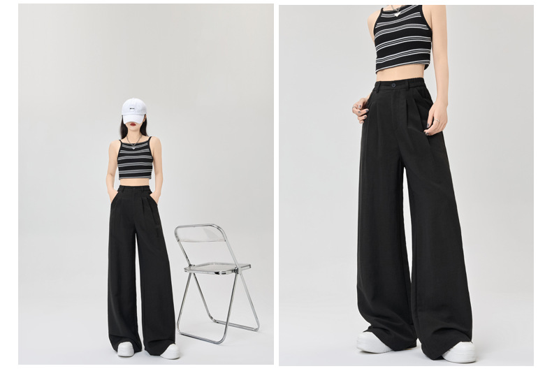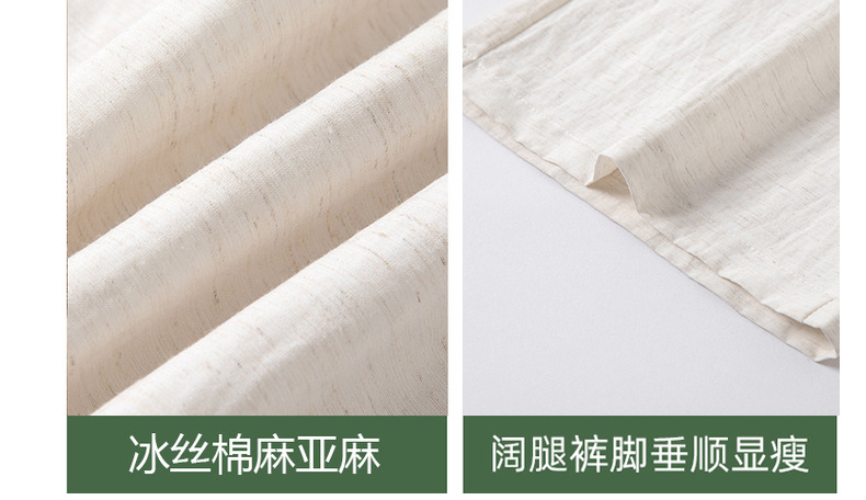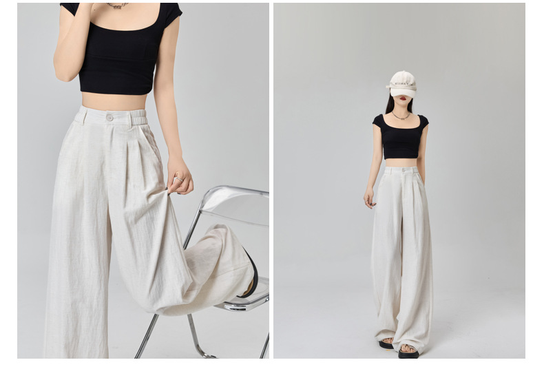 여름면 및 린넨 와이드 레그 팬츠 여성의 얇은 높은 허리 슬리밍 처짐 게으른 주름 얼음 실크 빠른 건조 바지스토어 가기