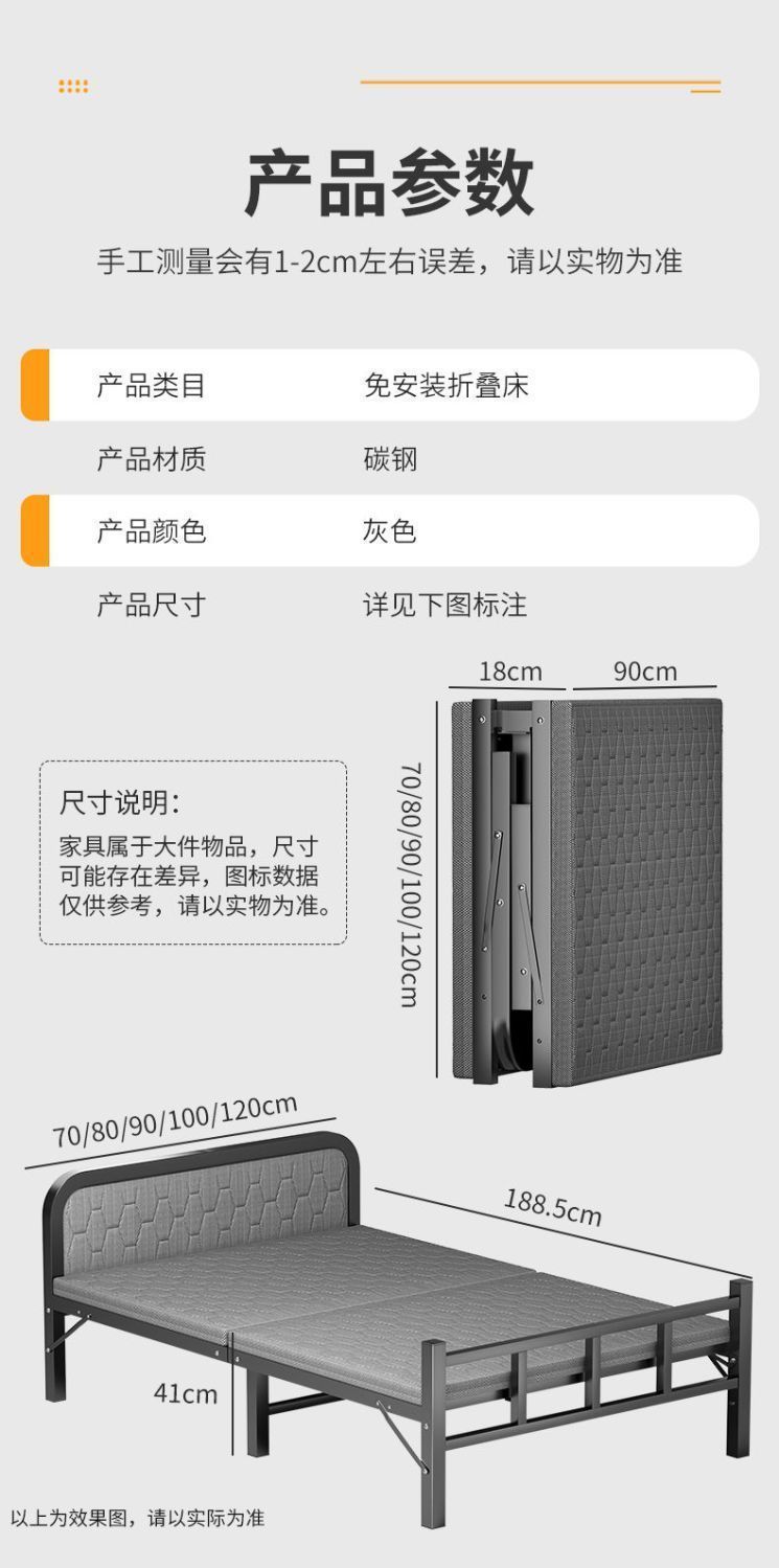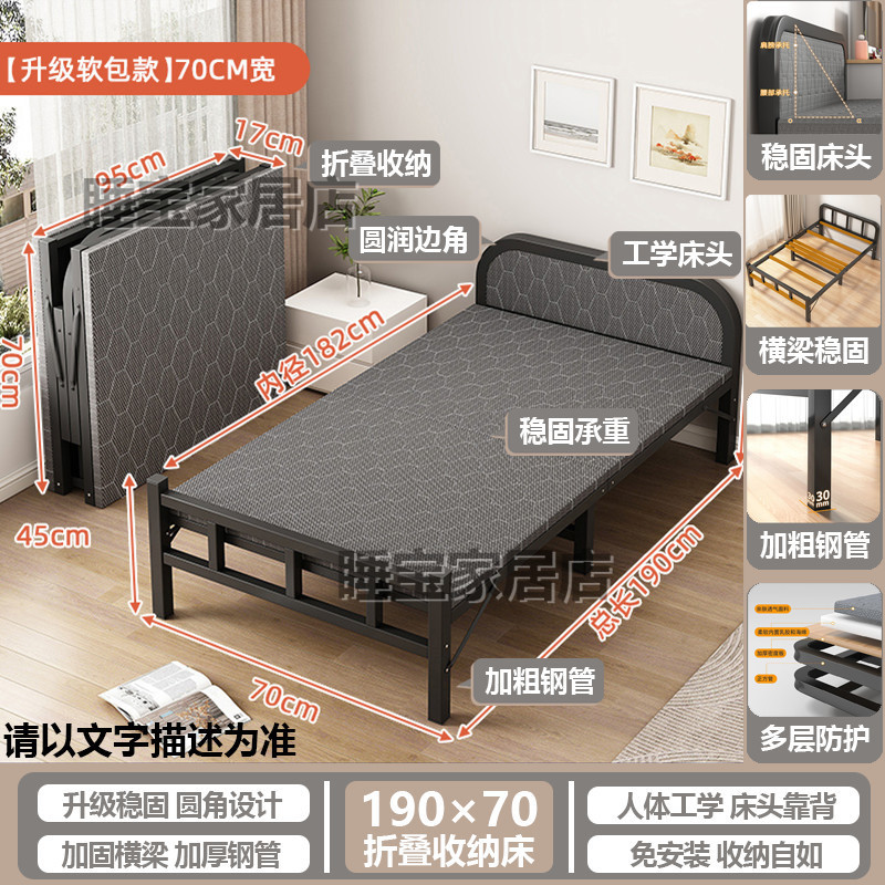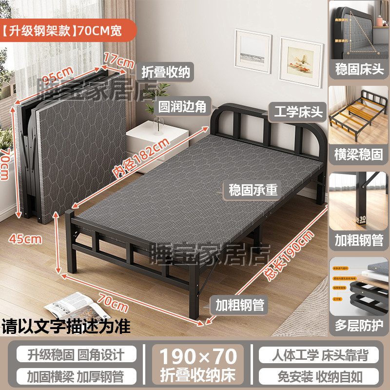 접이식 침대 가정용 간단한 철제 침대 임대 접이식 싱글 침대 성인 점심 시간 침대 휴대용 접이식 침대 강화스토어 가기