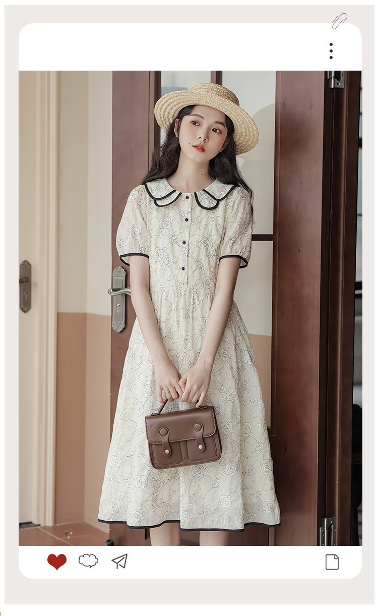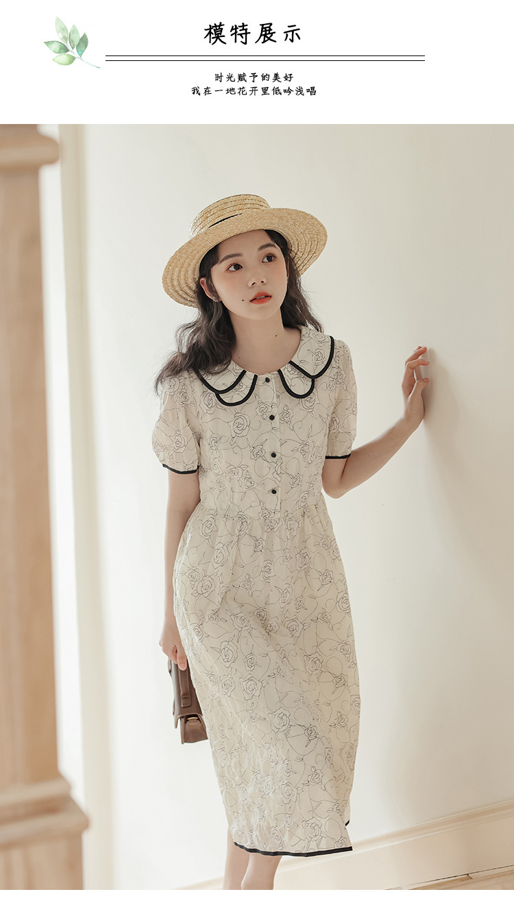 더블 레이어 꽃잎 칼라 로즈 프린트 반팔 원피스 여성 2025 년 여름 프랑스 하이 허리 하이 엔드 미디 원피스스토어 가기