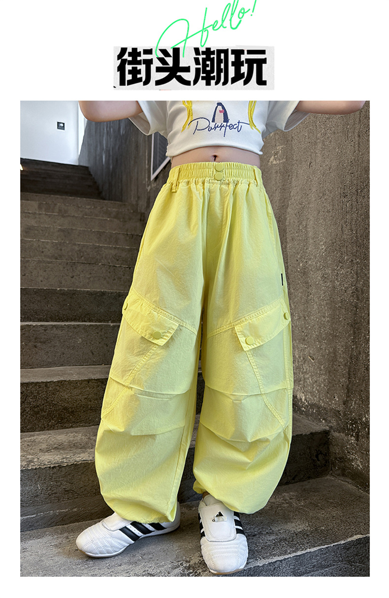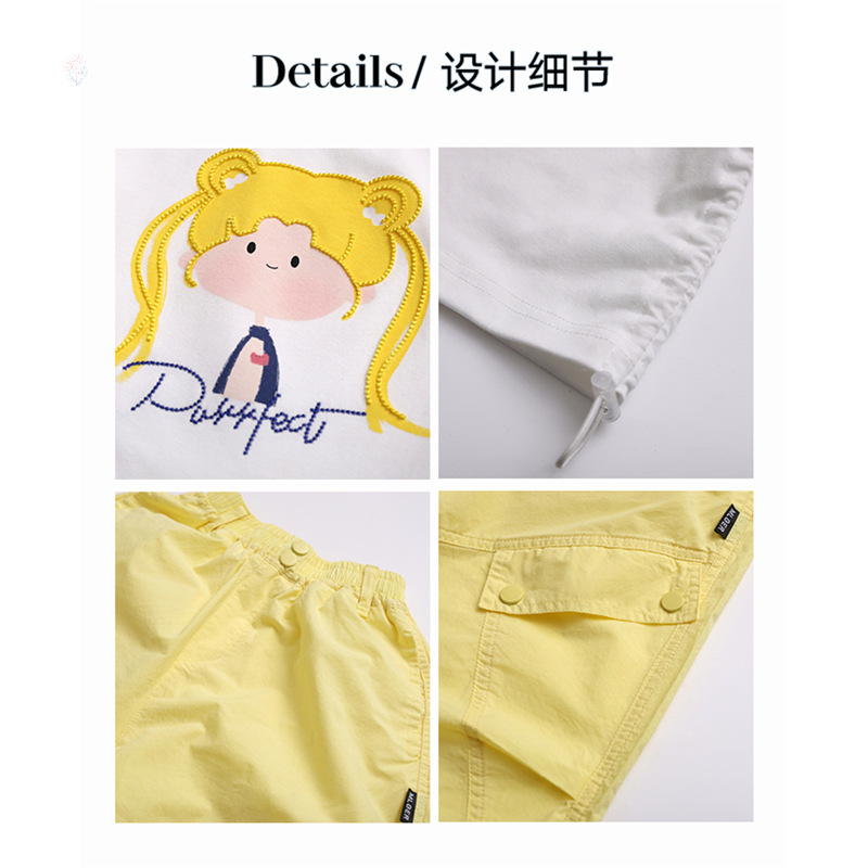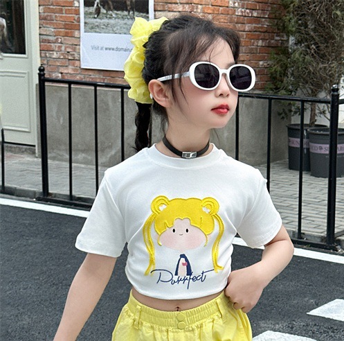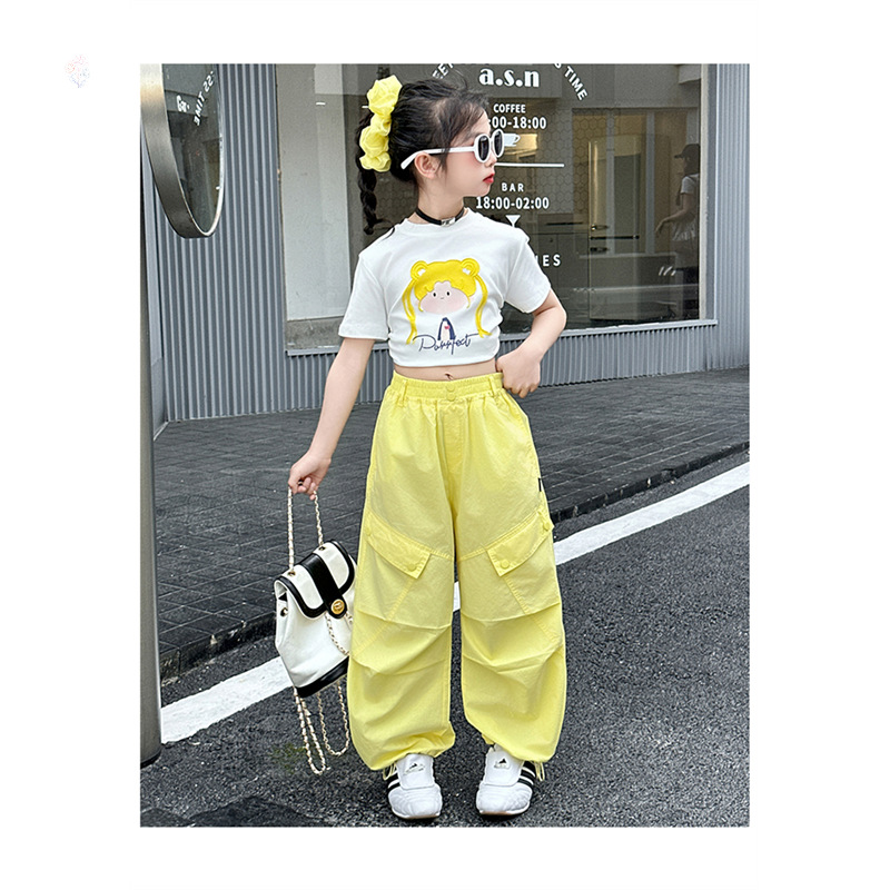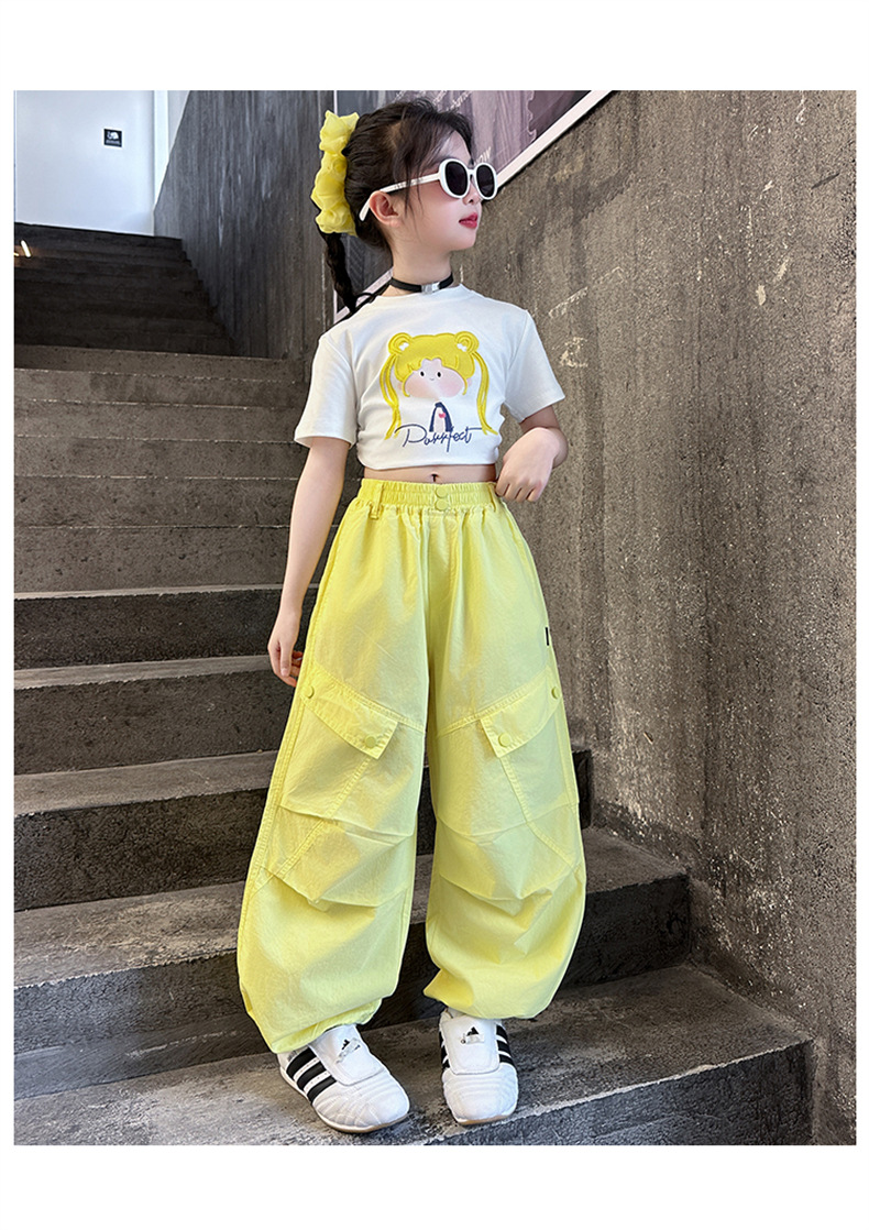 소녀 캐주얼 프린트 티셔츠 와이드 다리 바지 세트 중 · 대형 어린이를위한 귀여운 반팔 크레인 바지 2025 여름 새로운스토어 가기