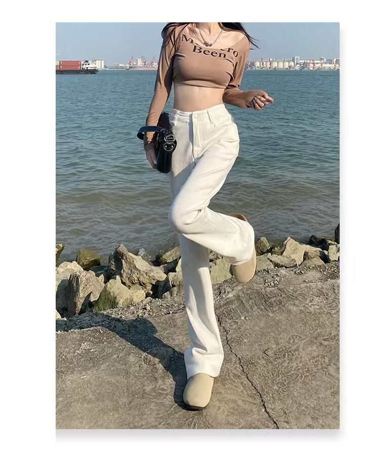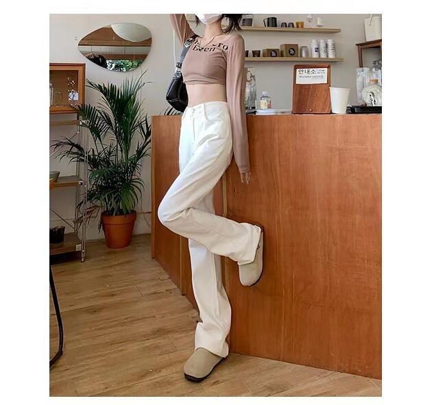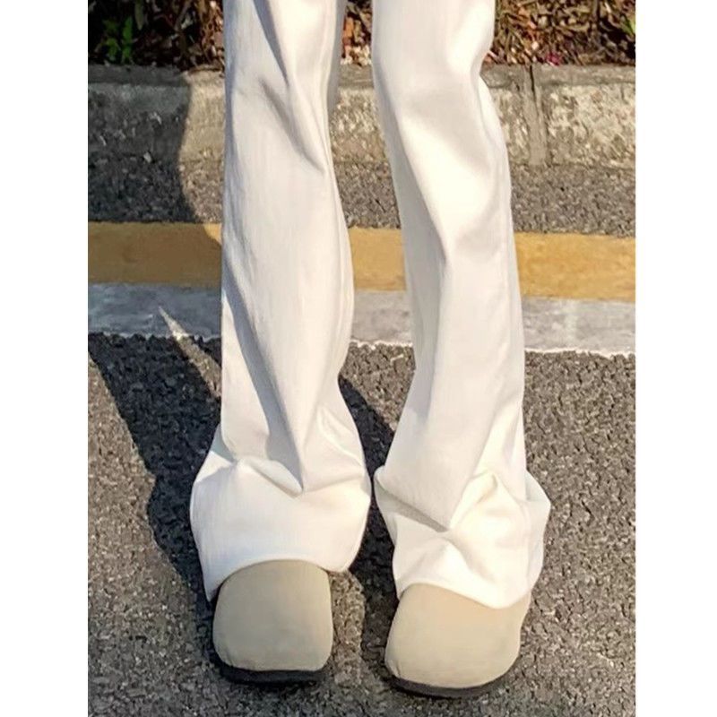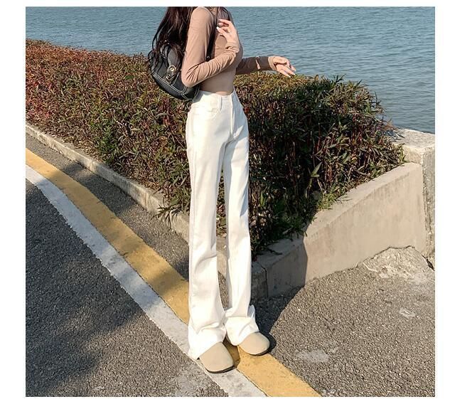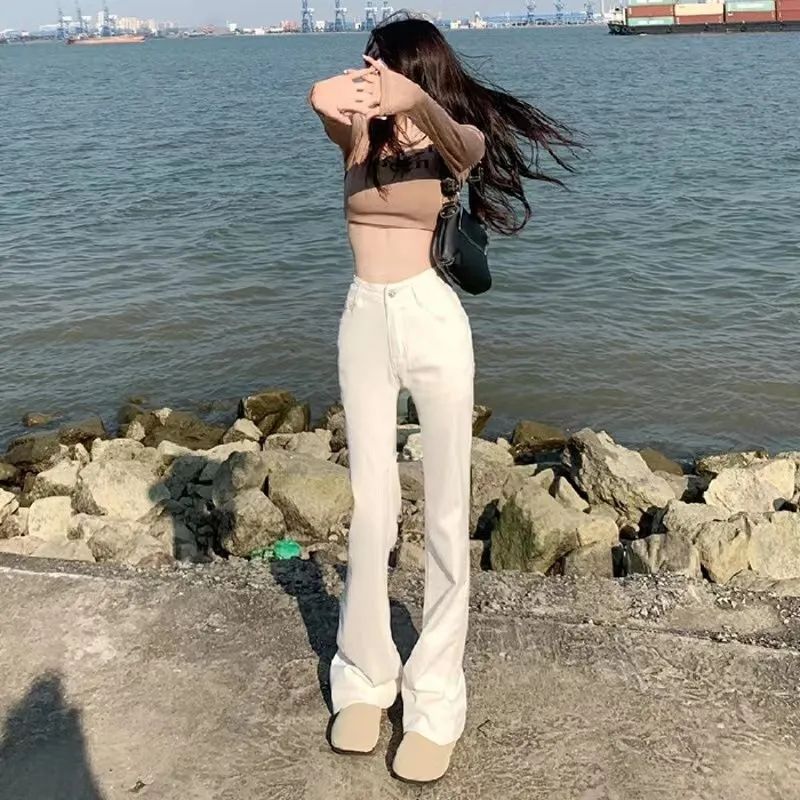 2025 화이트 마이크로 플레어 청바지 여성의 봄과 여름 새로운 하이 웨이스트 슬림 핏 슬림 핏 말굽 바지스토어 가기