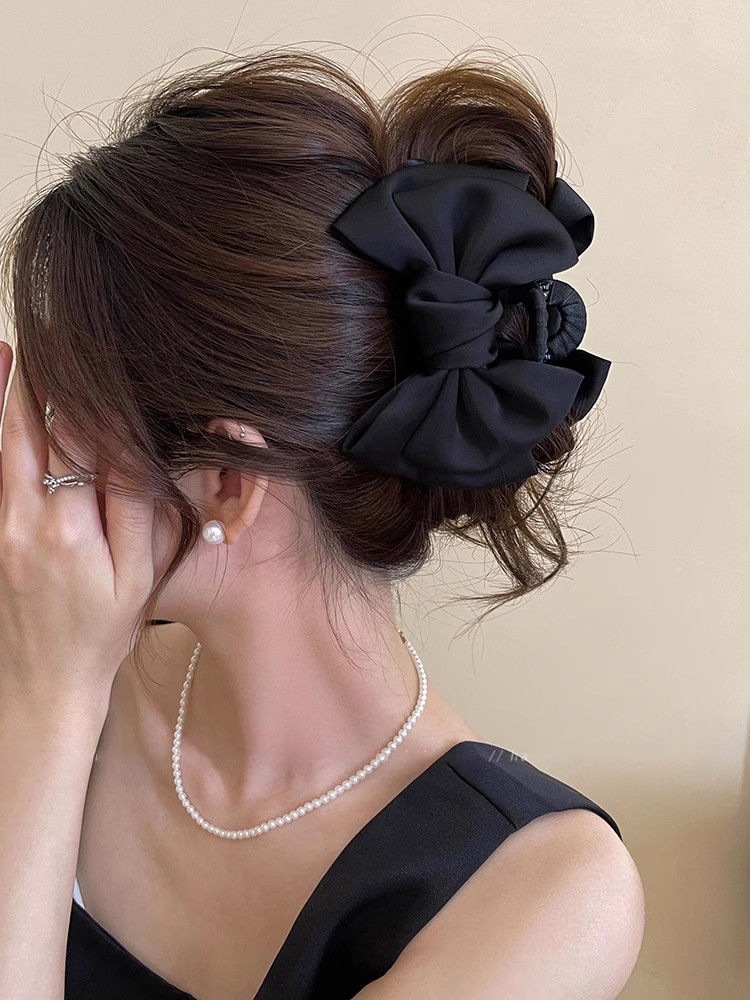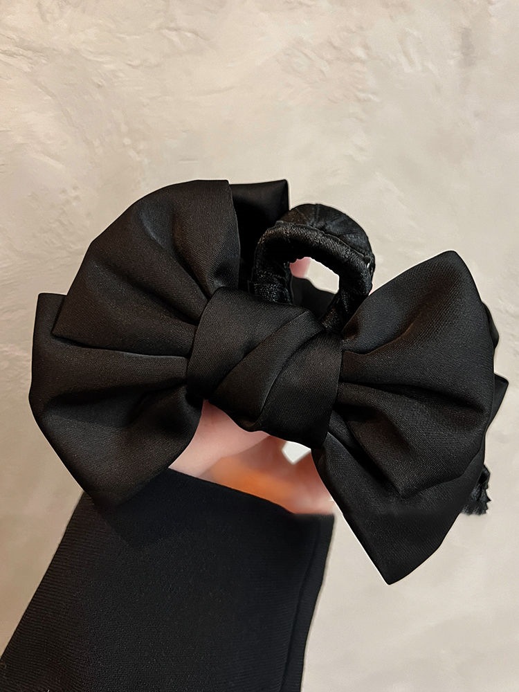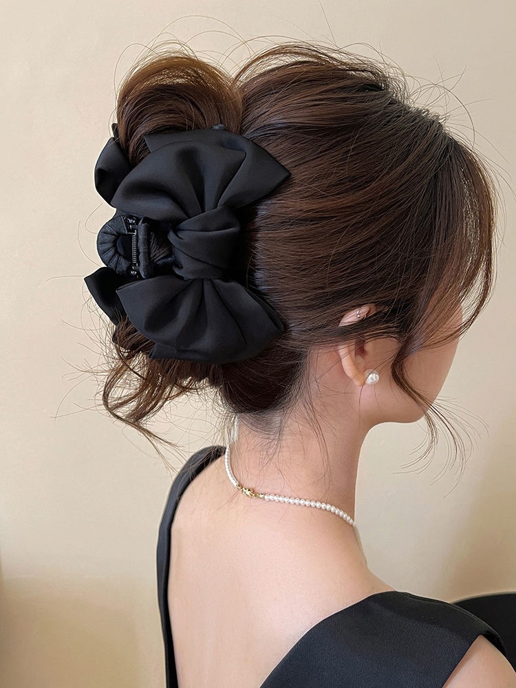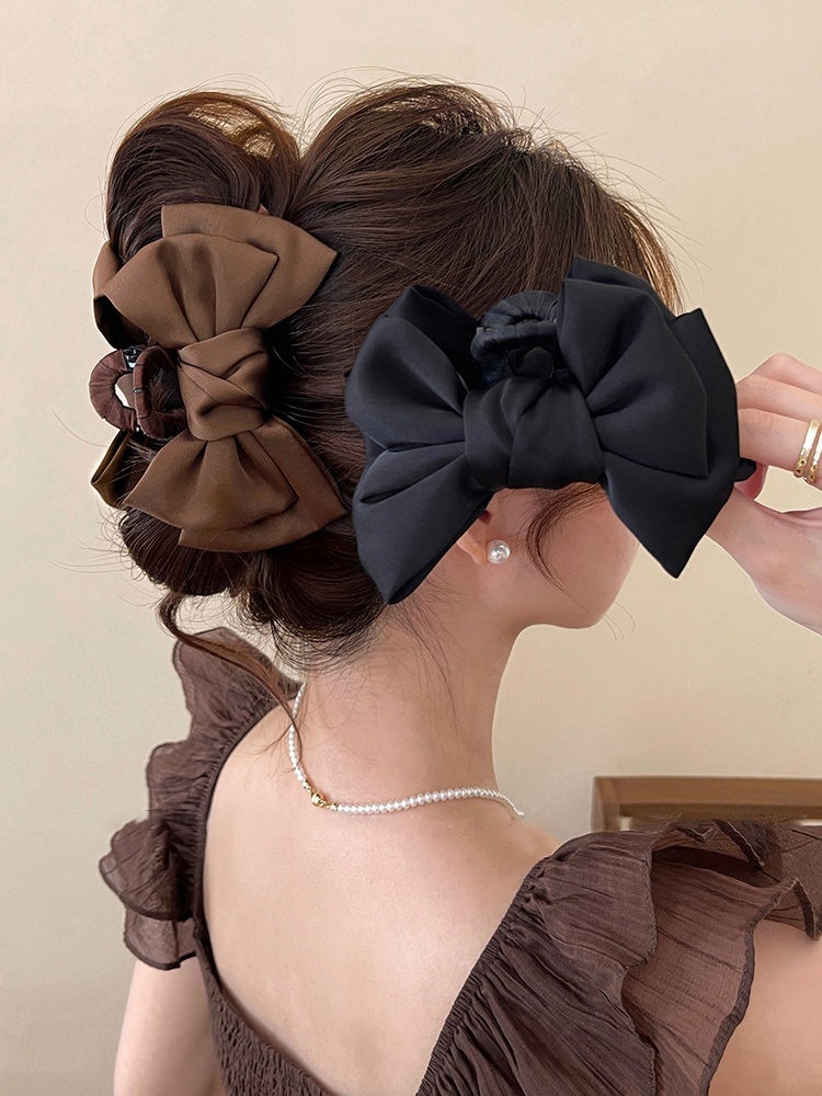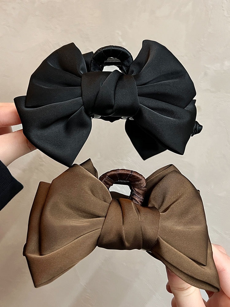 더블 레이어 새틴 활 헤어핀 여성용 프랑스 하이 엔드 센스 백 오브 더 헤드 디스크 헤어 랩 멀티 상어 클립 헤드웨어