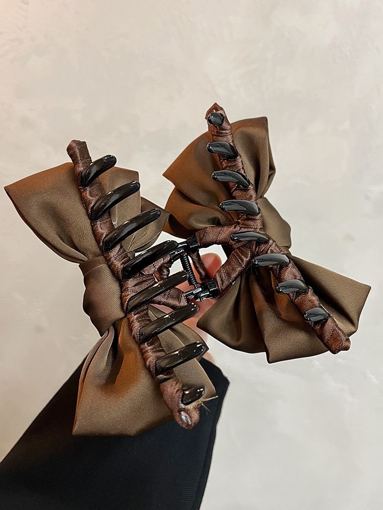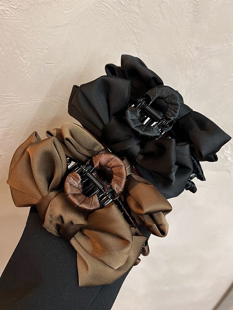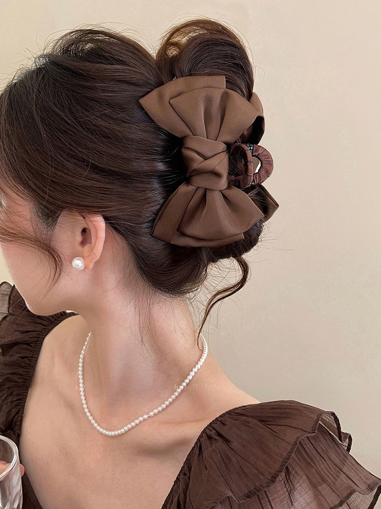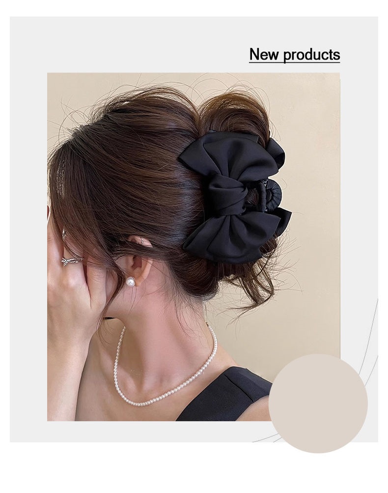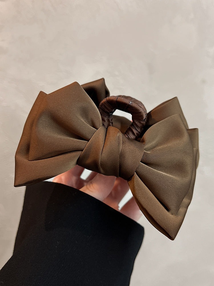 더블 레이어 새틴 활 헤어핀 여성용 프랑스 하이 엔드 센스 백 오브 더 헤드 디스크 헤어 랩 멀티 상어 클립 헤드웨어