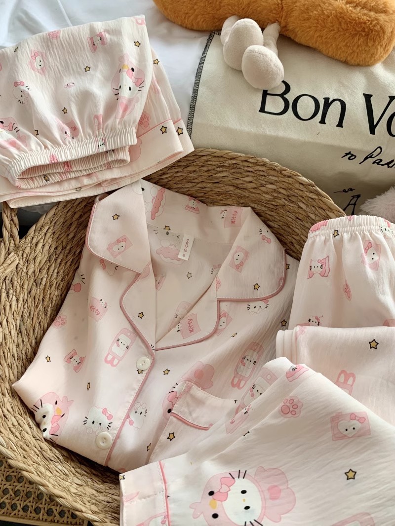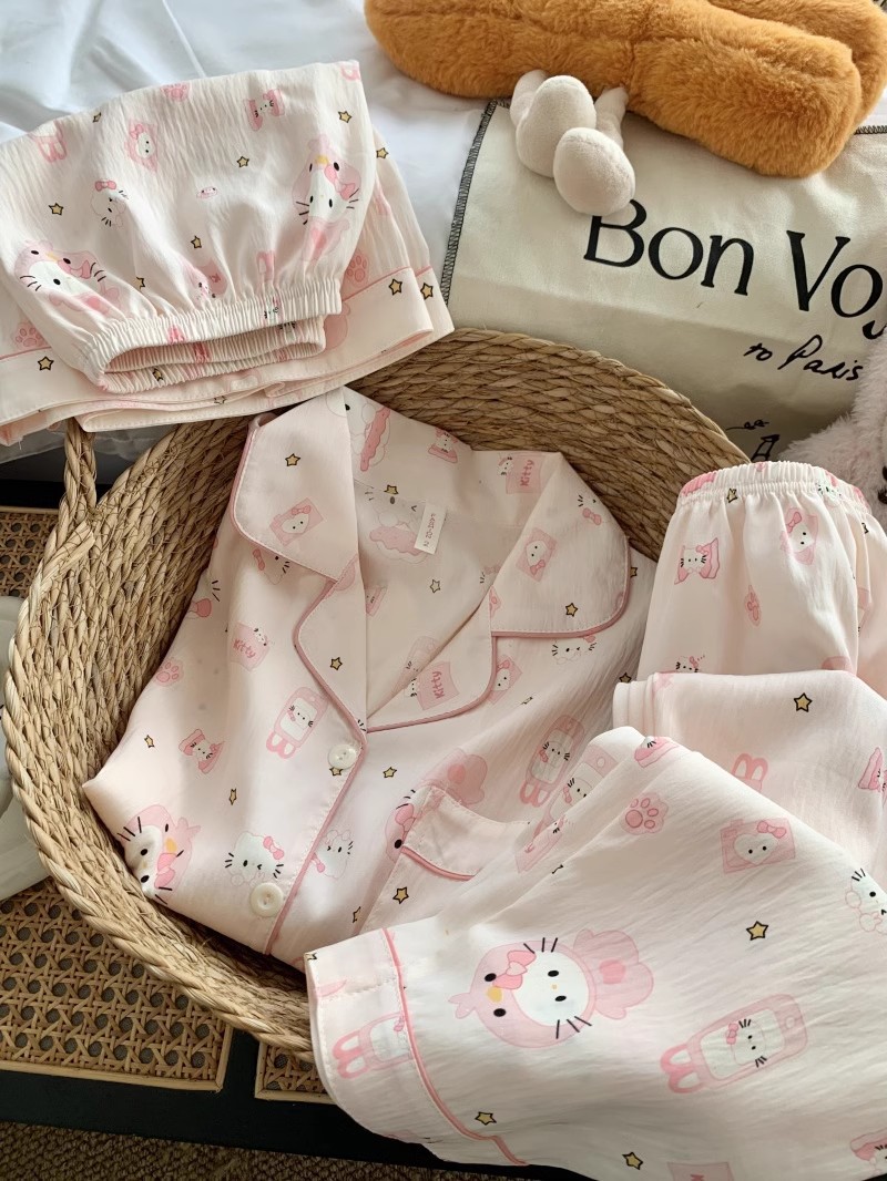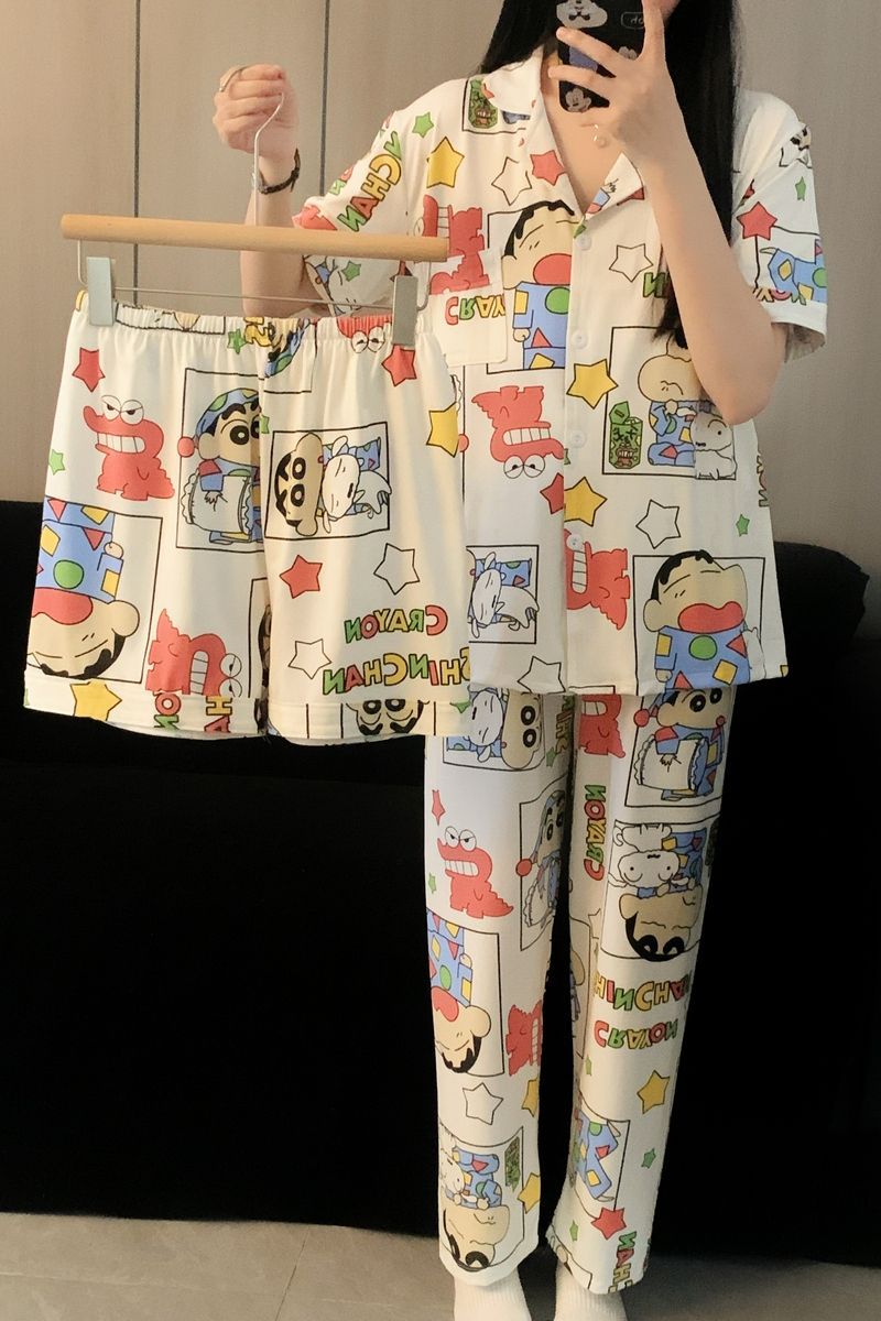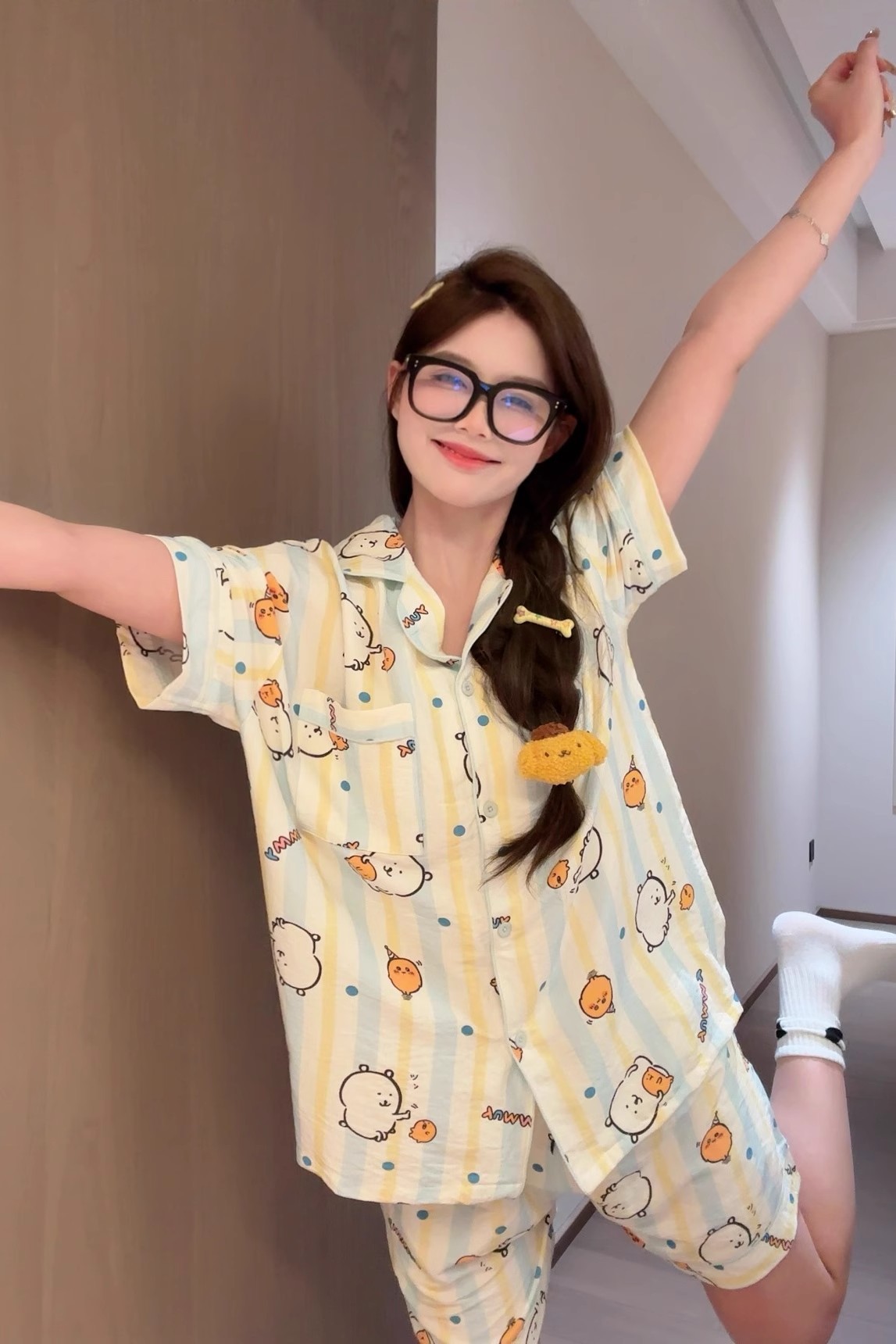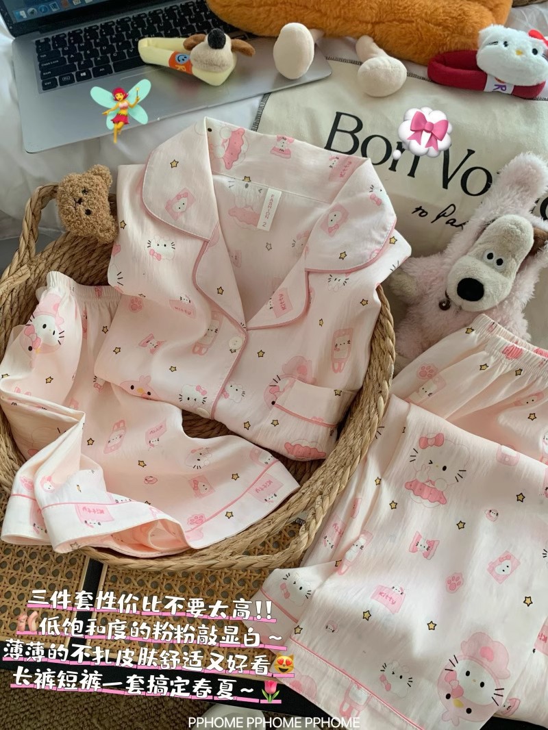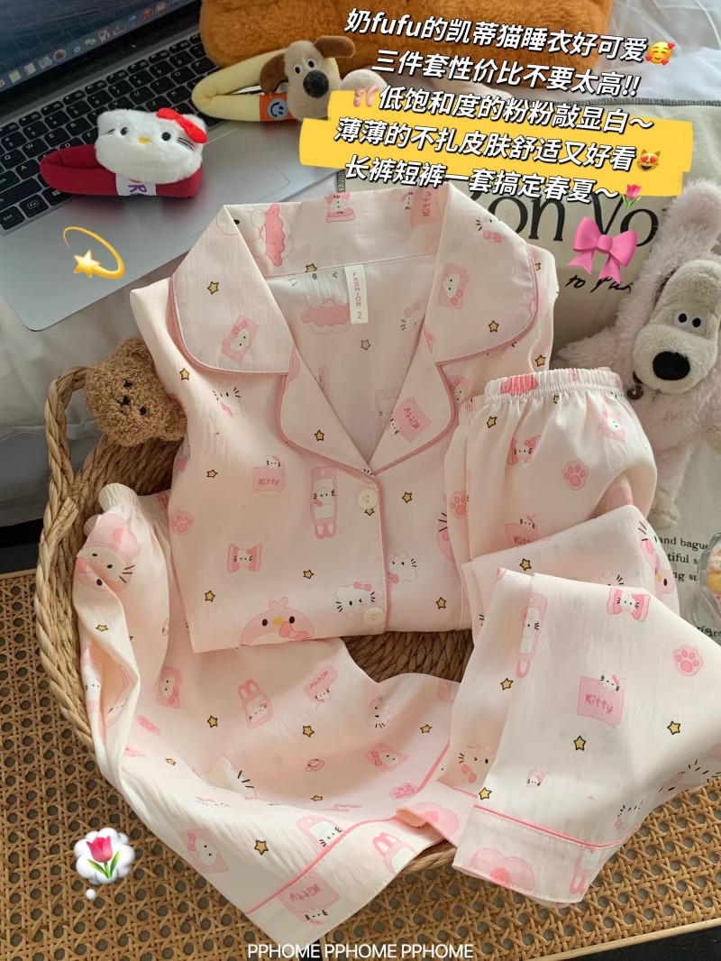 새로운 클라우드 코튼 3 피스 잠옷 세트 여성 여름 달콤한 만화 얇은 홈웨어 120g