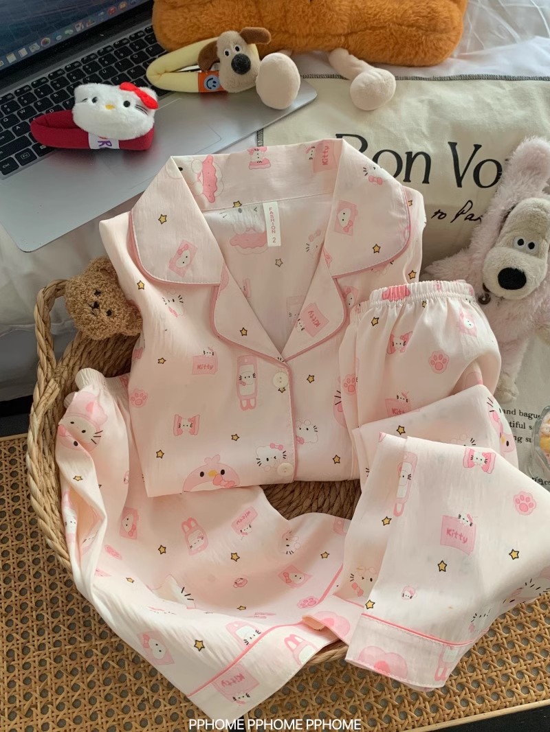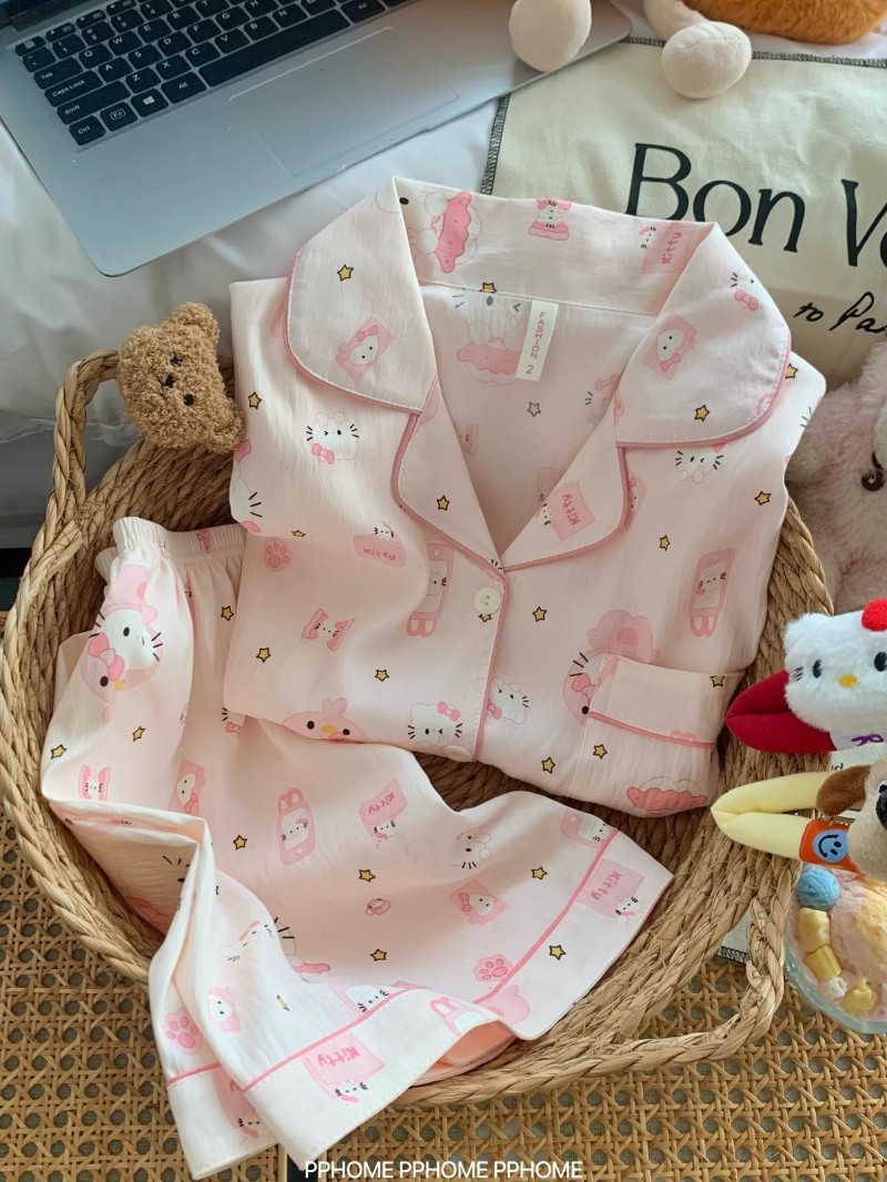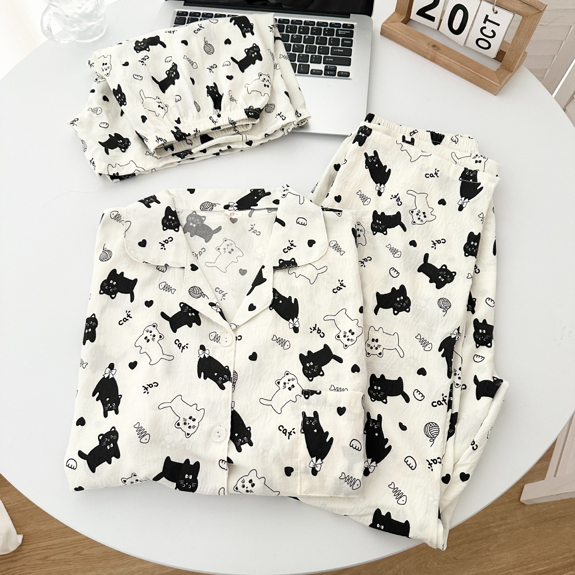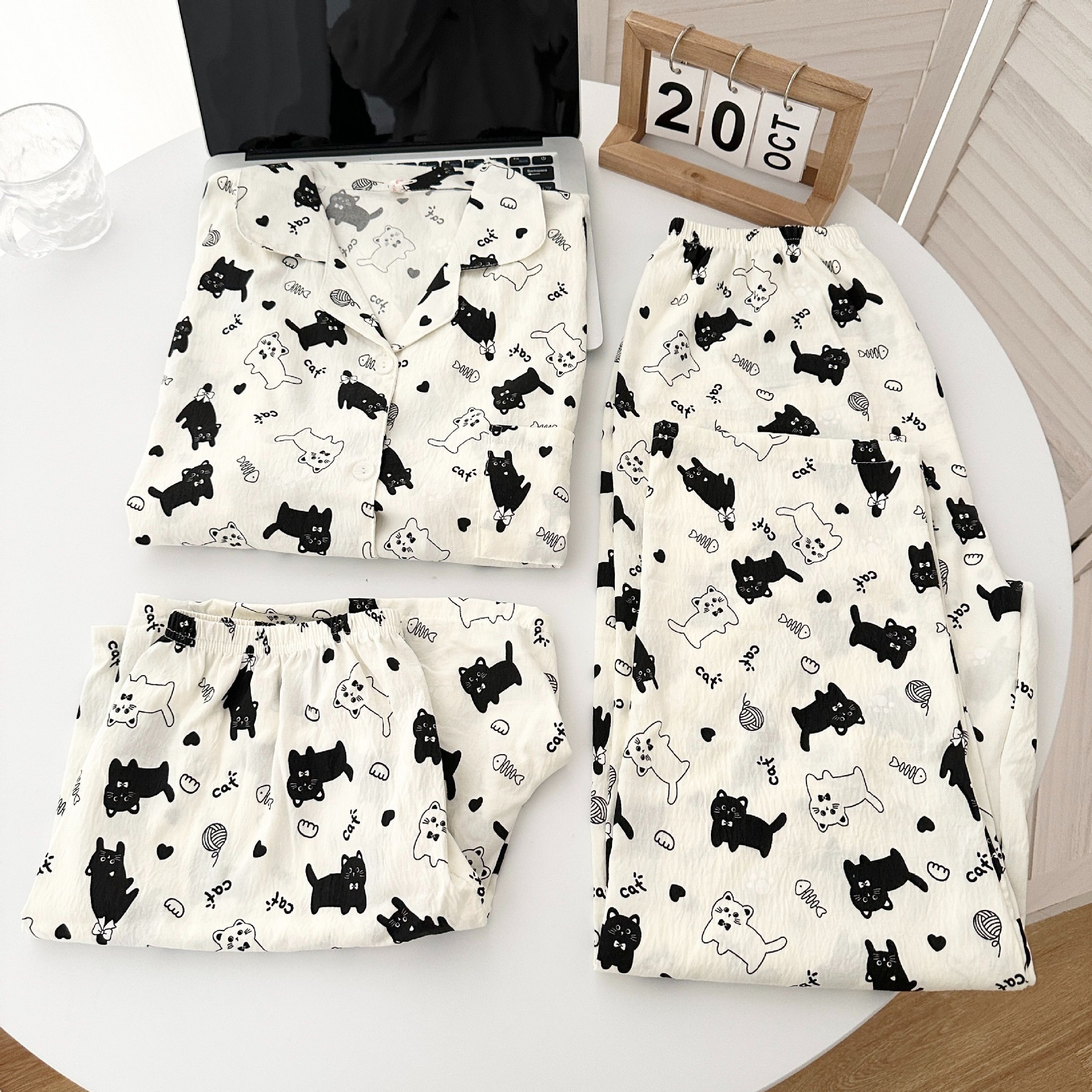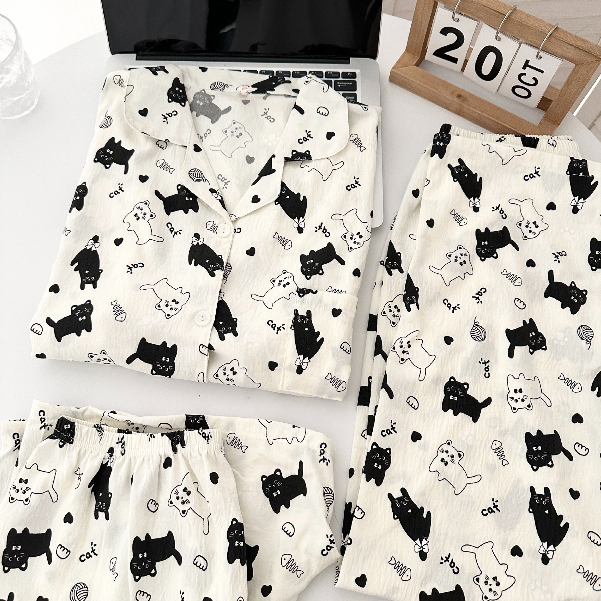 새로운 클라우드 코튼 3 피스 잠옷 세트 여성 여름 달콤한 만화 얇은 홈웨어 120g