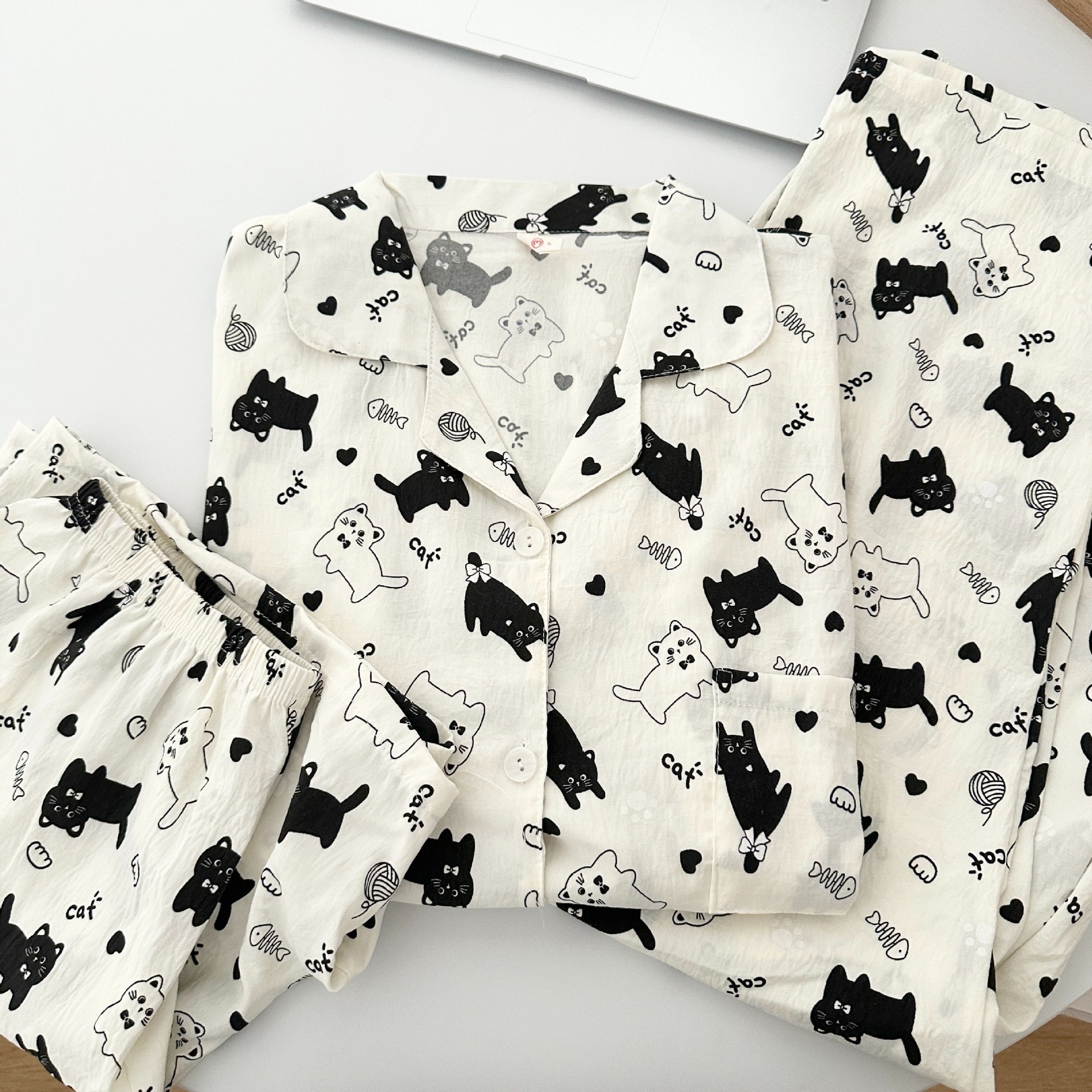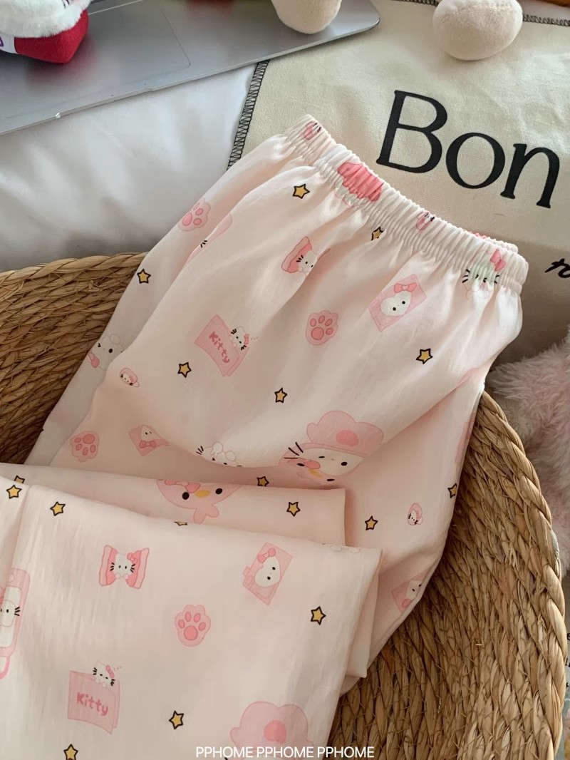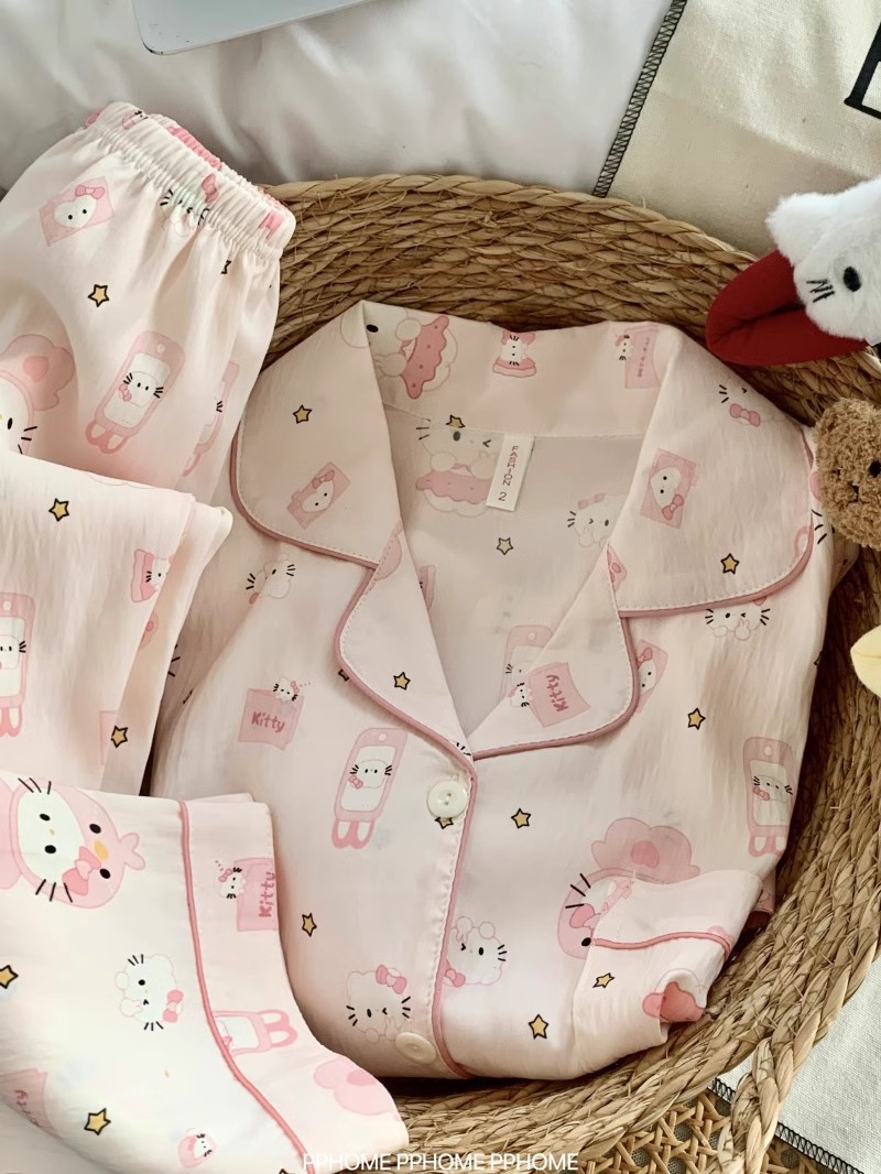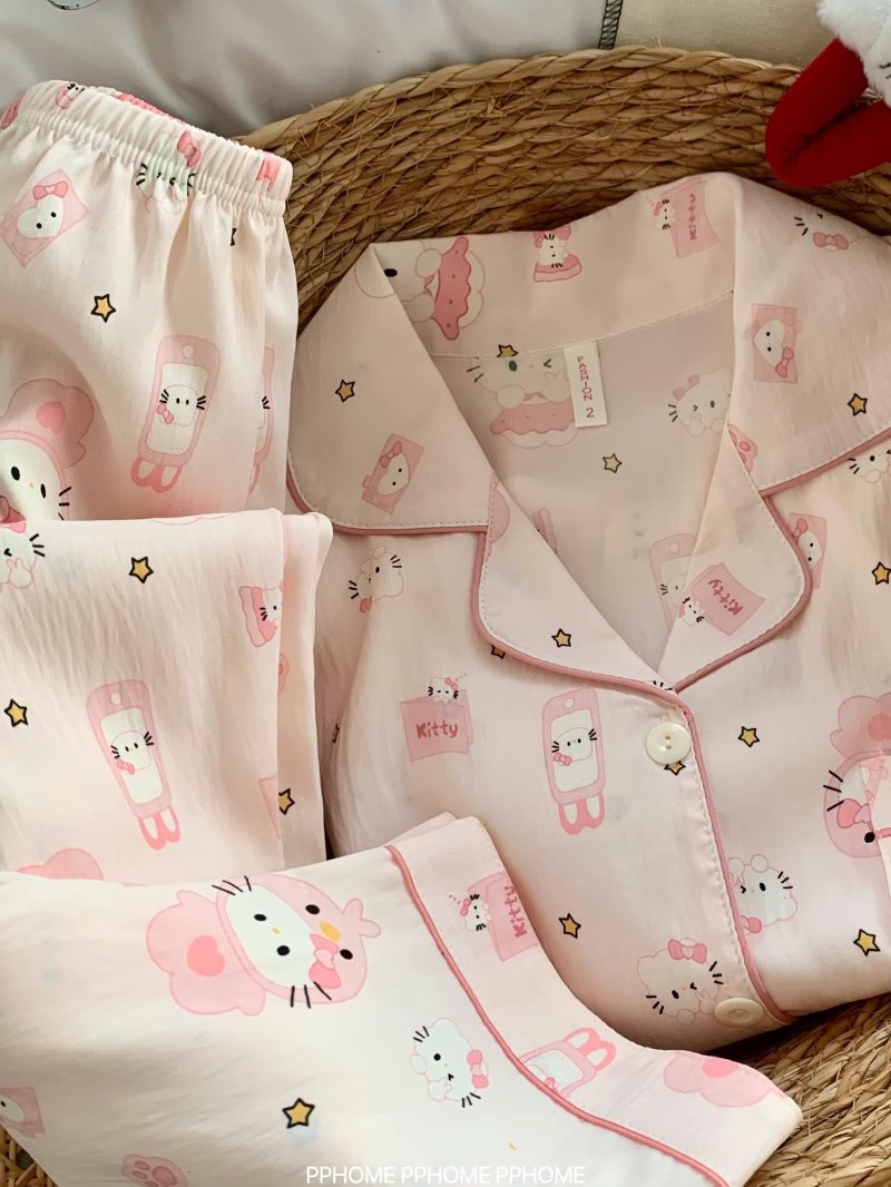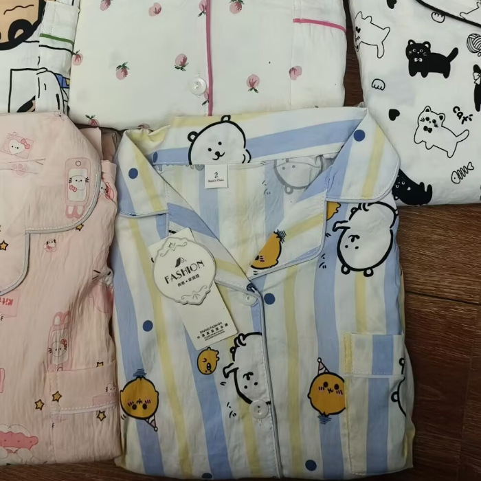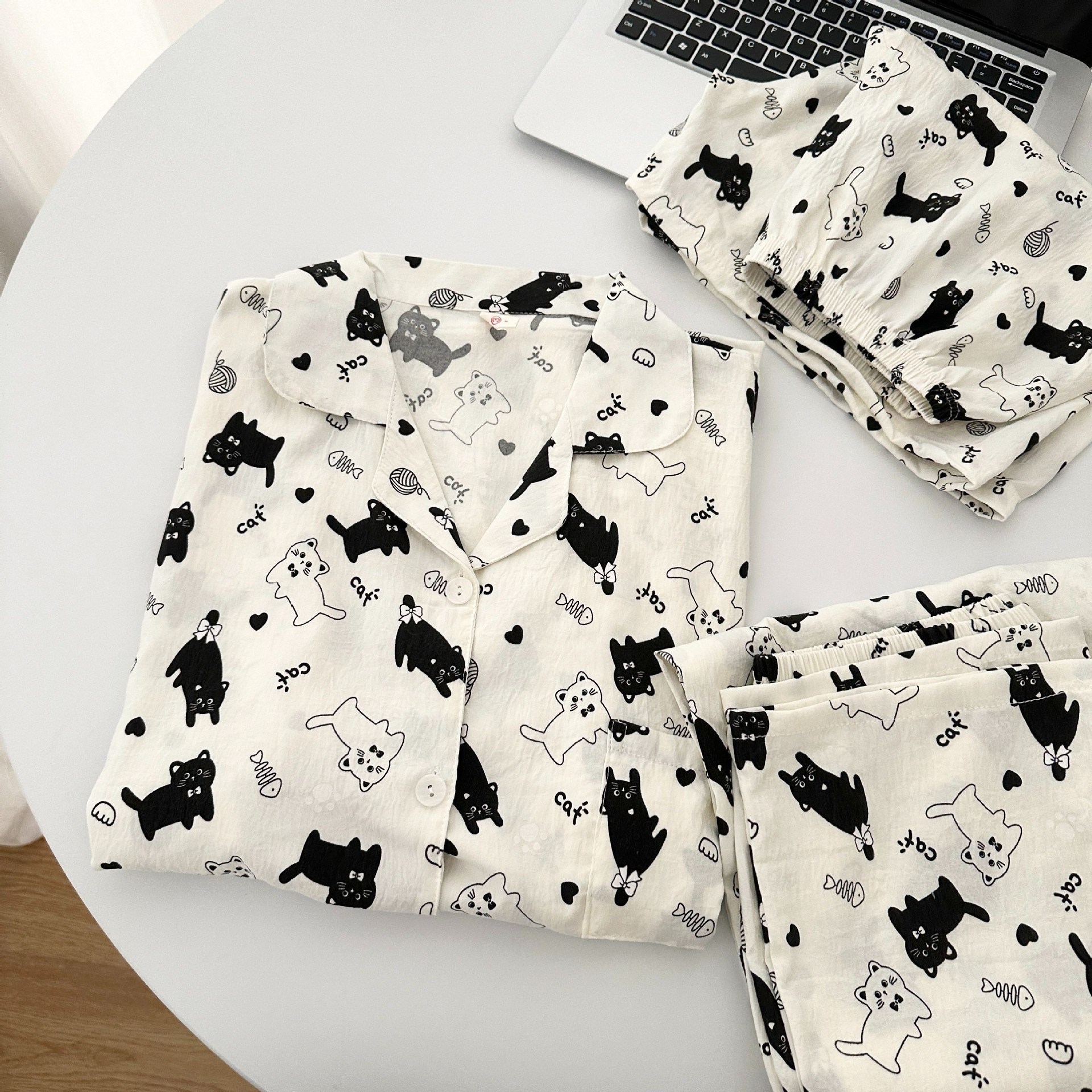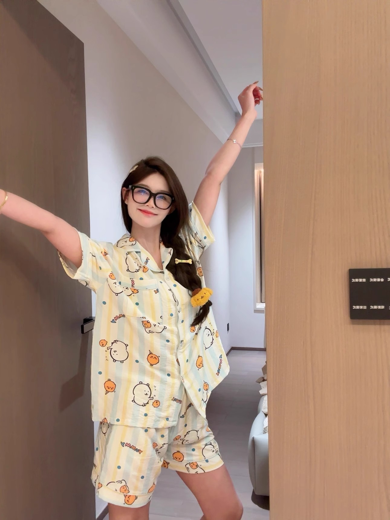 새로운 클라우드 코튼 3 피스 잠옷 세트 여성 여름 달콤한 만화 얇은 홈웨어 120g