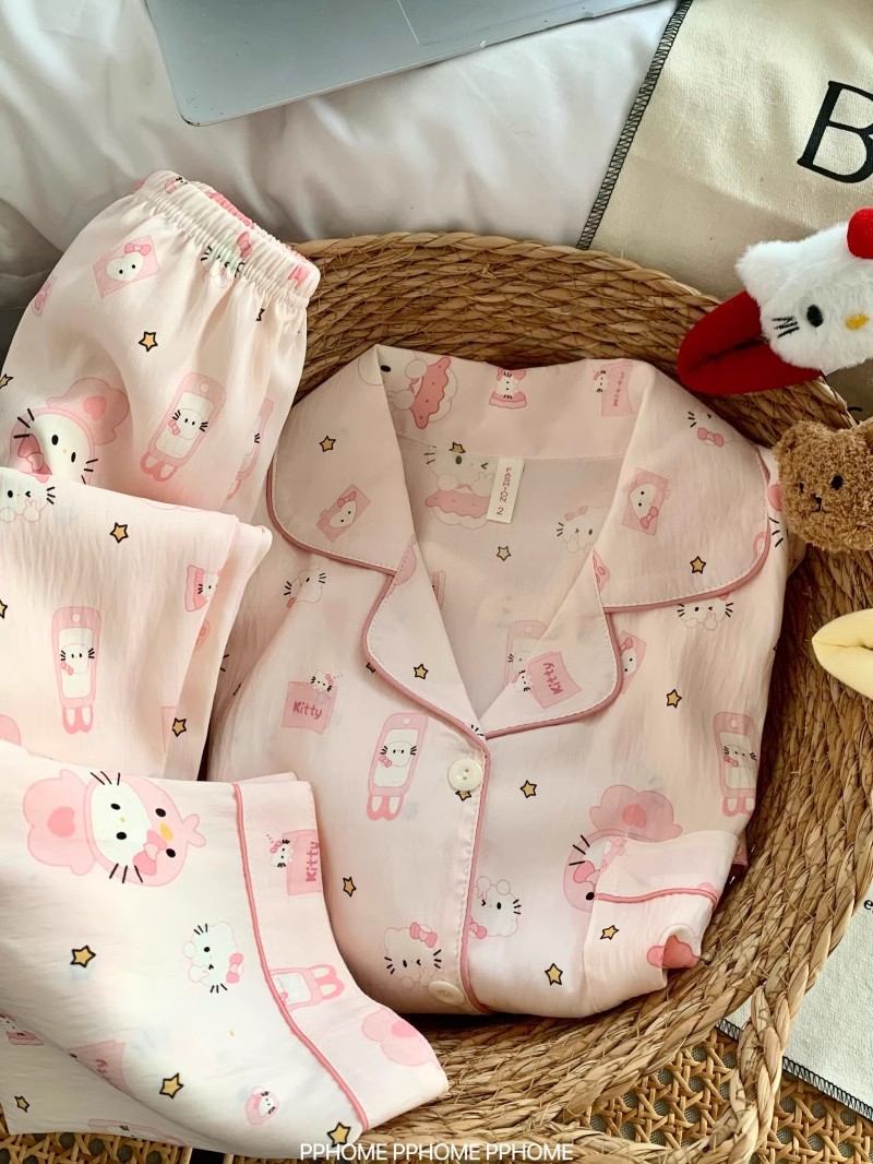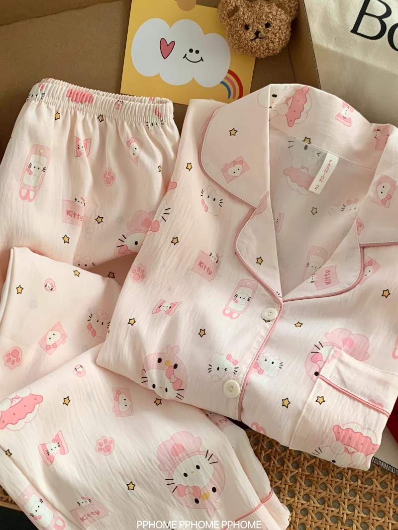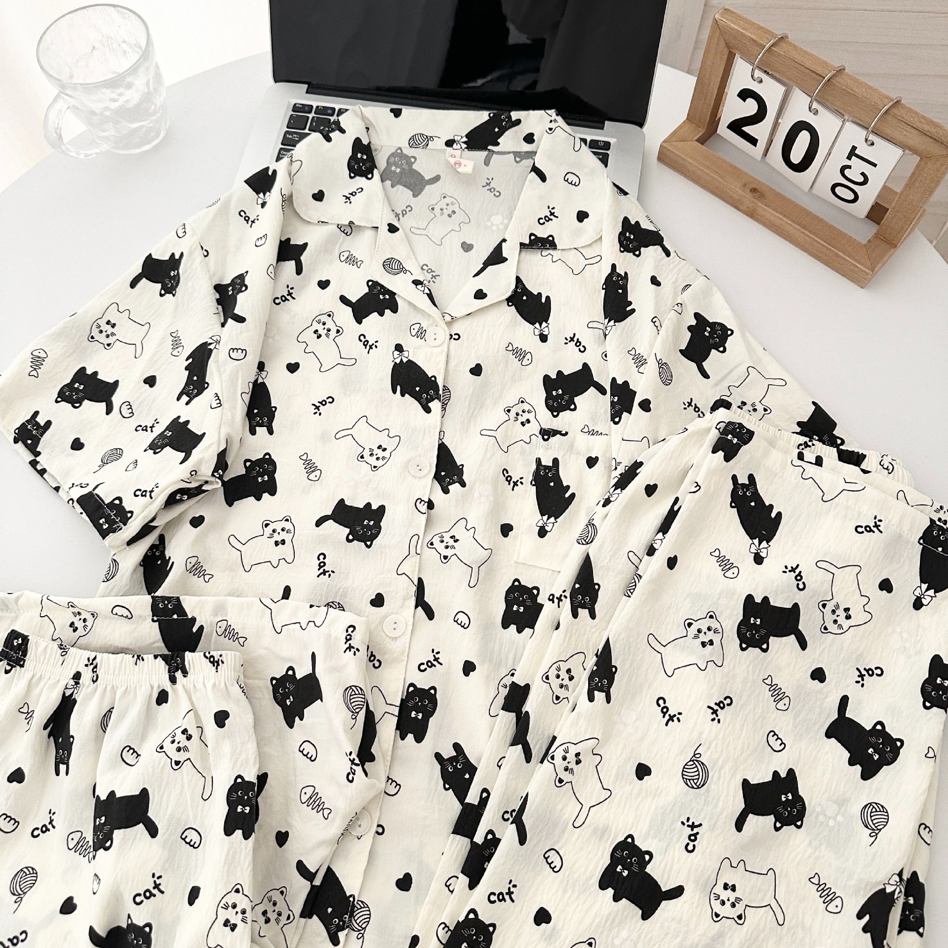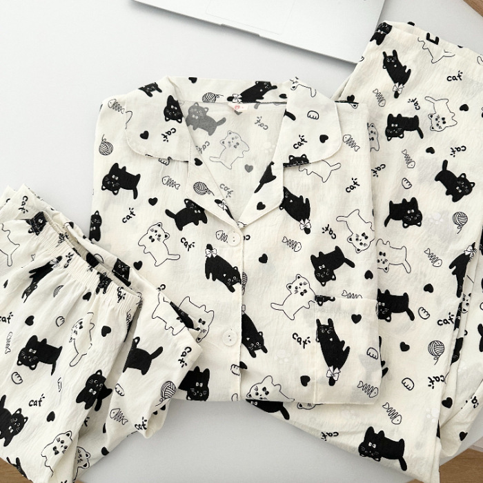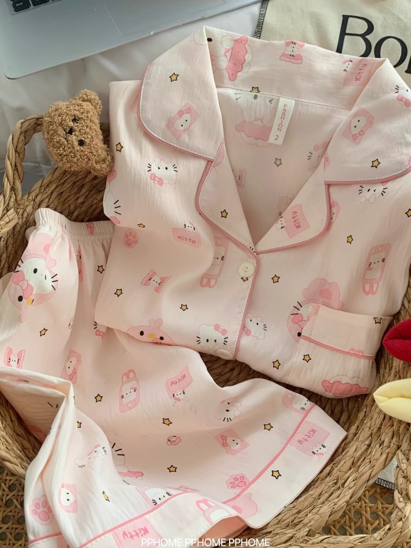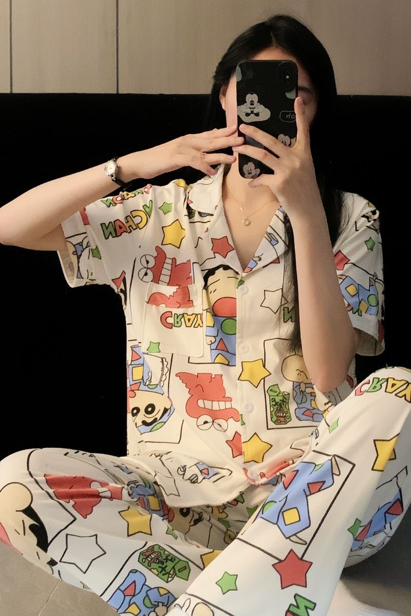새로운 클라우드 코튼 3 피스 잠옷 세트 여성 여름 달콤한 만화 얇은 홈웨어 120g