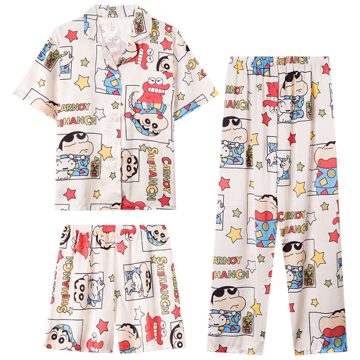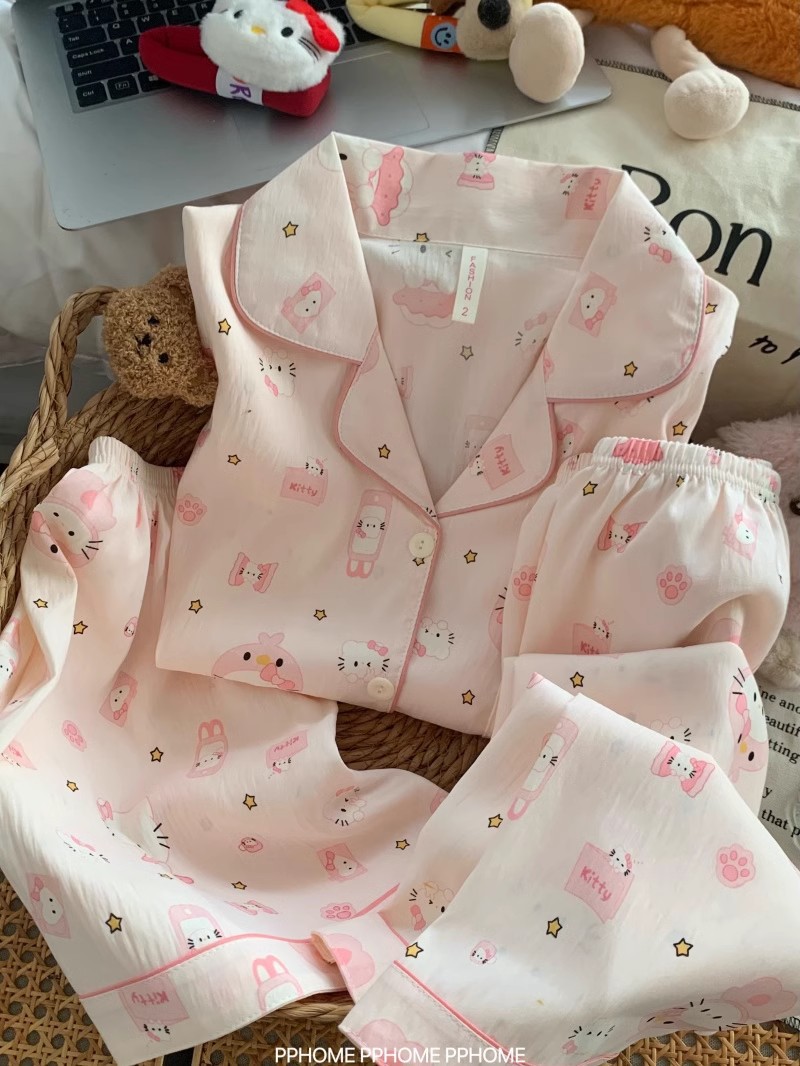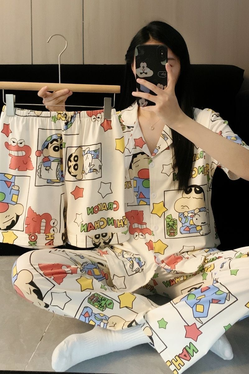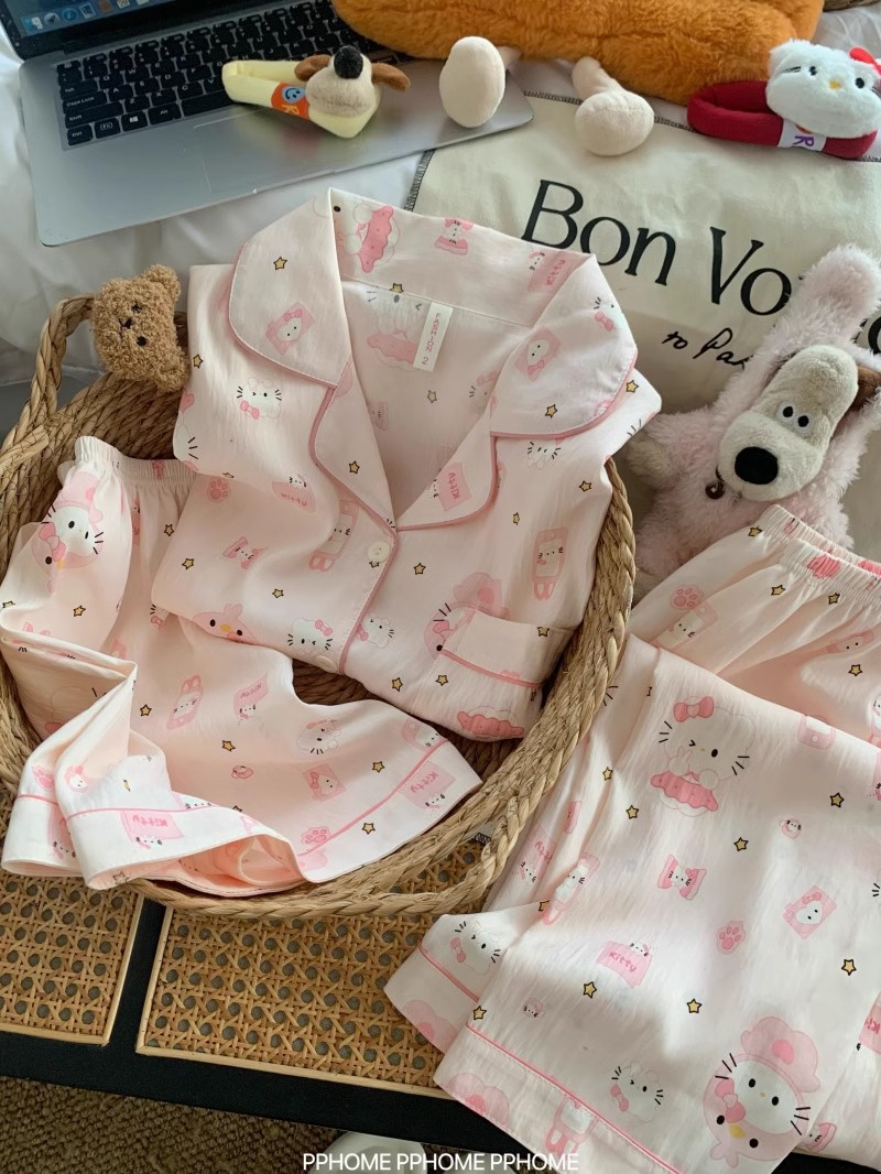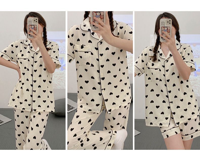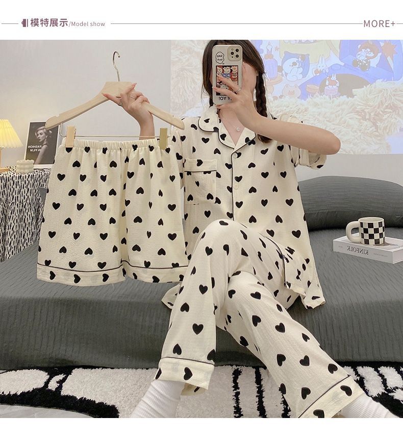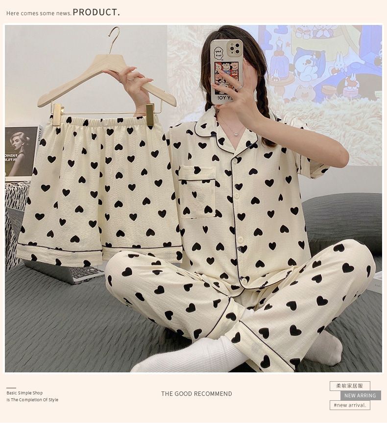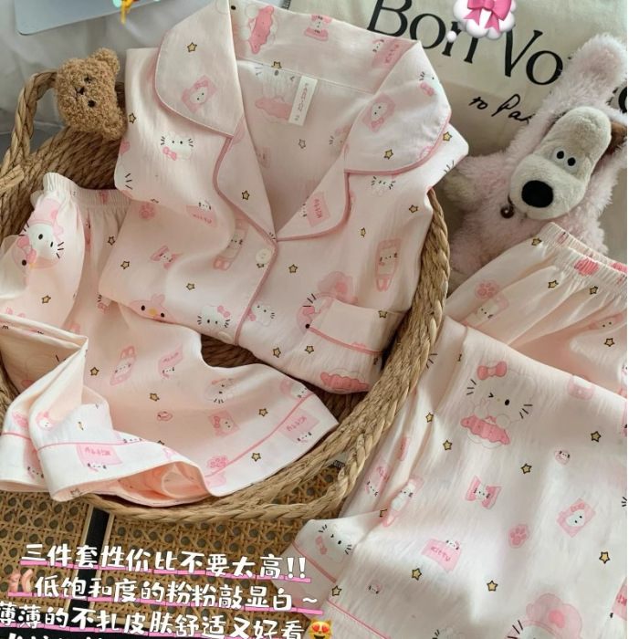 새로운 클라우드 코튼 3 피스 잠옷 세트 여성 여름 달콤한 만화 얇은 홈웨어 120g스토어 가기