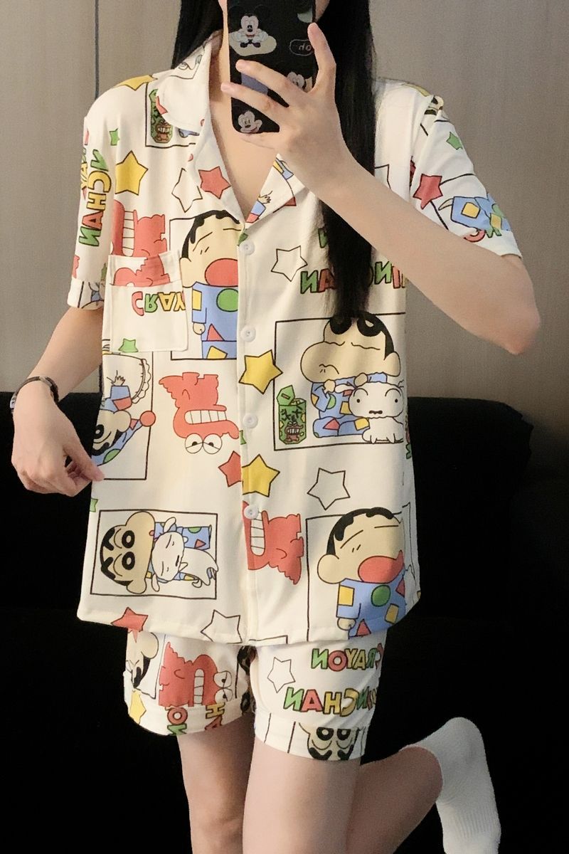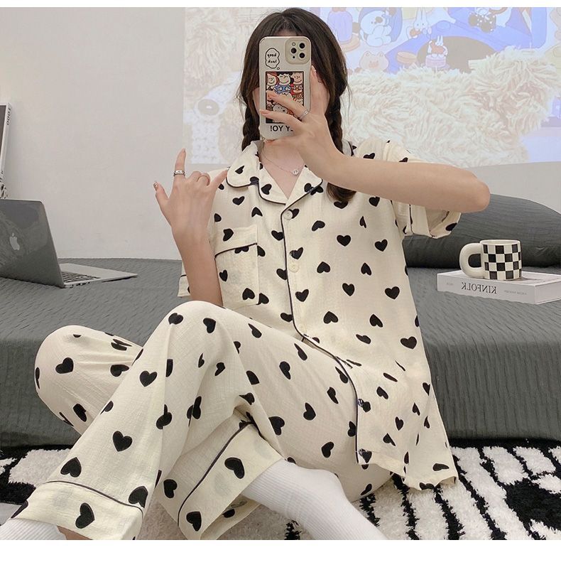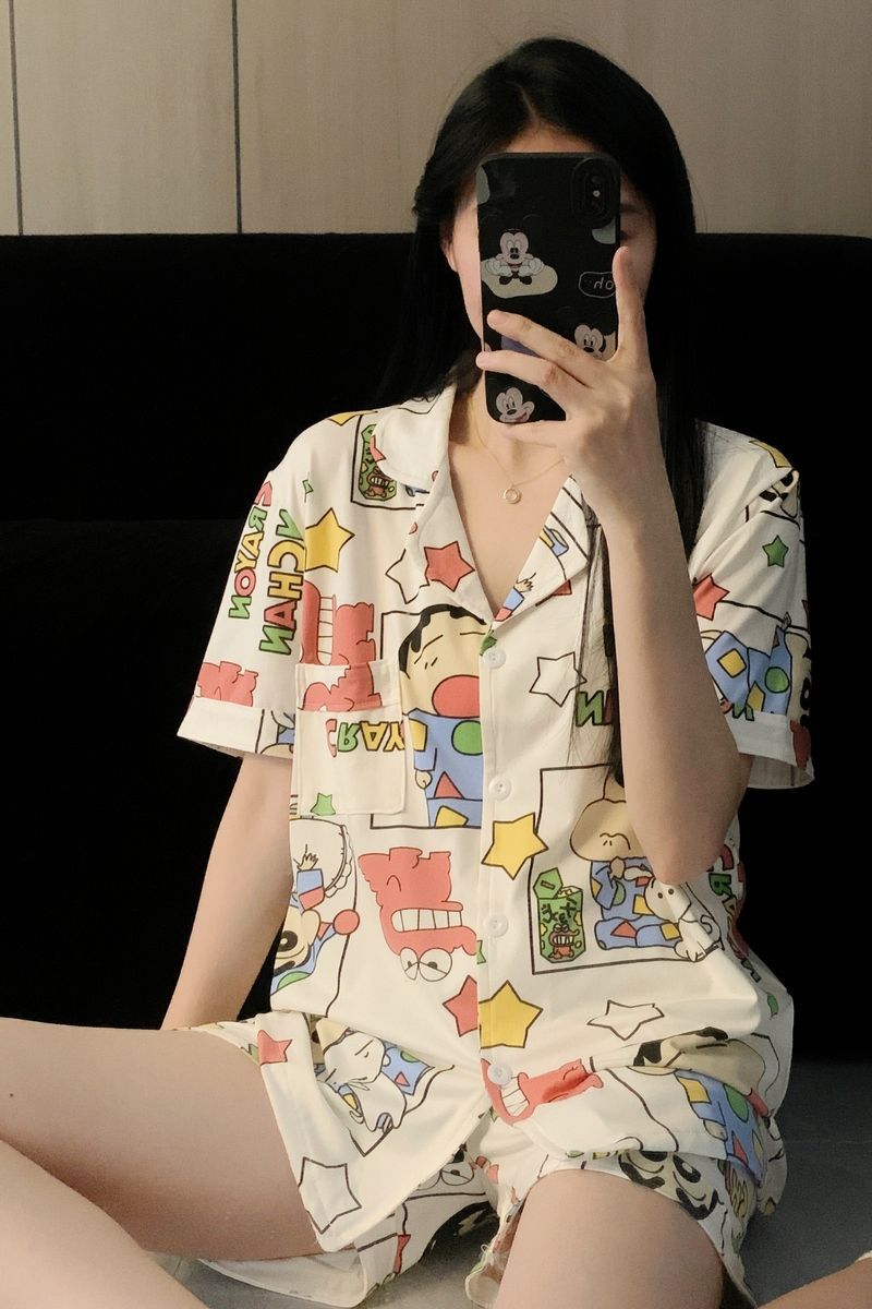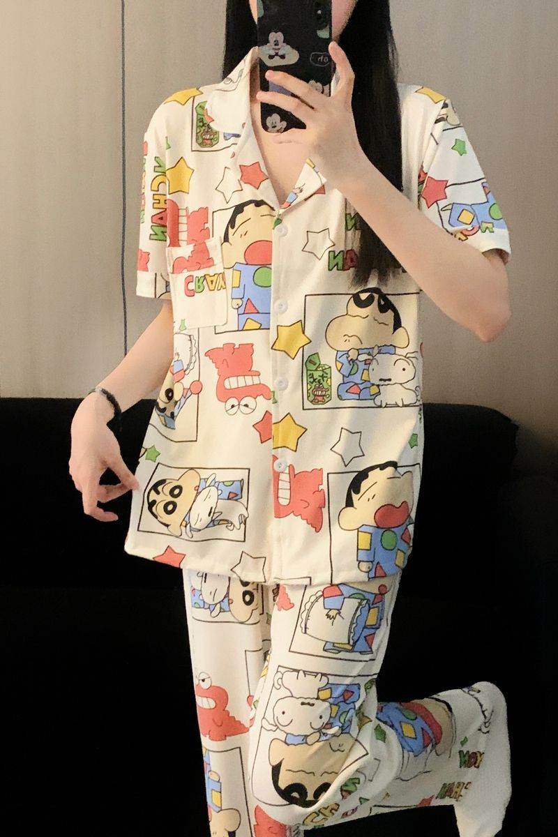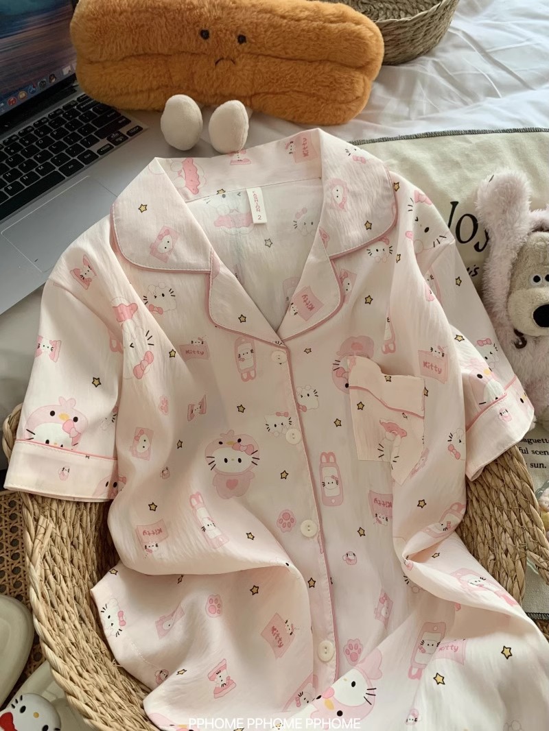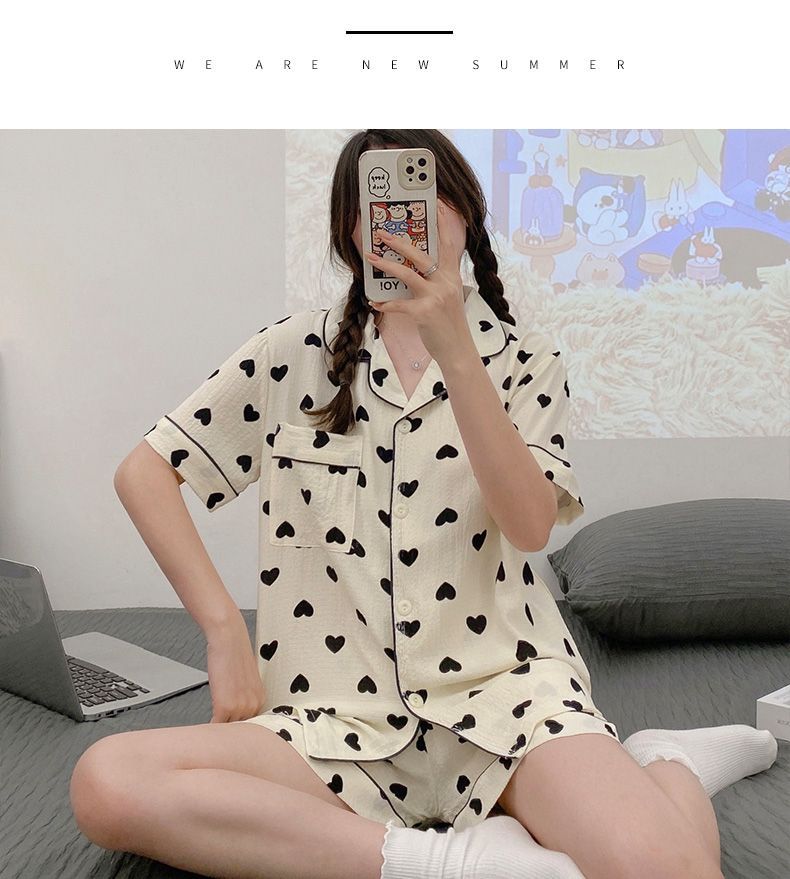 새로운 클라우드 코튼 3 피스 잠옷 세트 여성 여름 달콤한 만화 얇은 홈웨어 120g스토어 가기