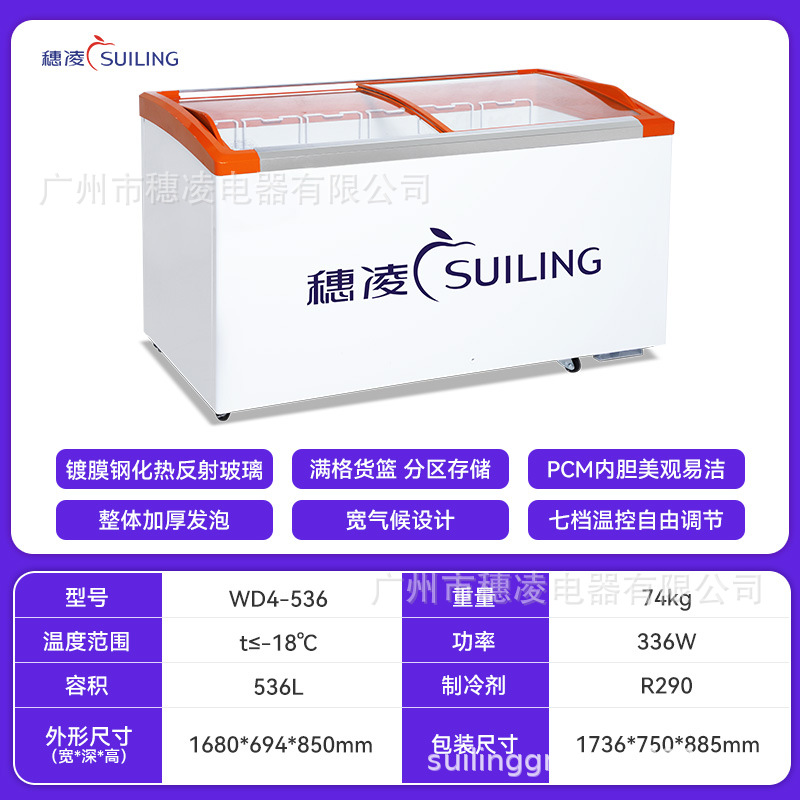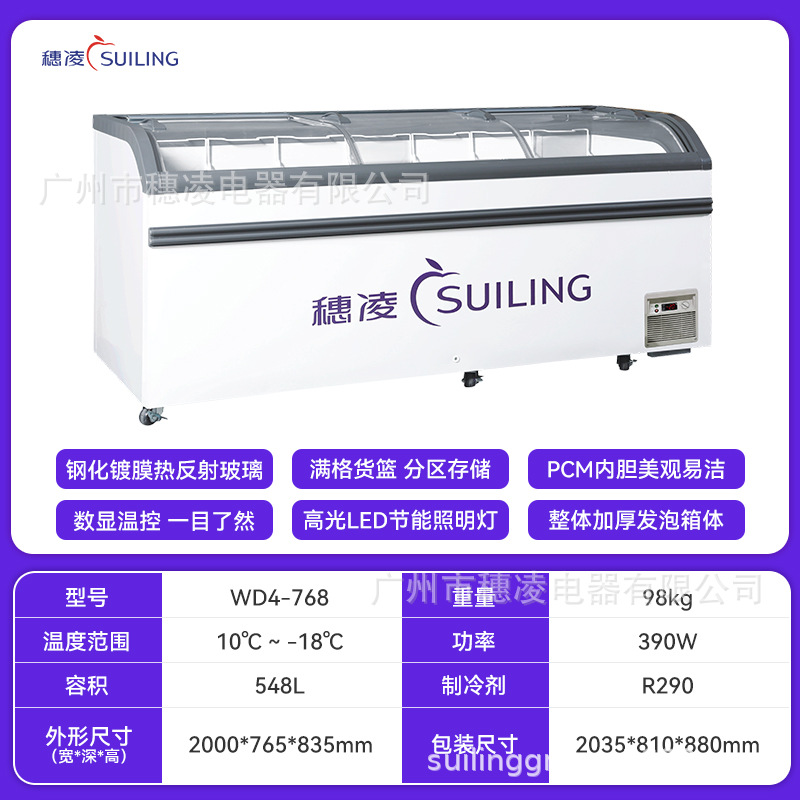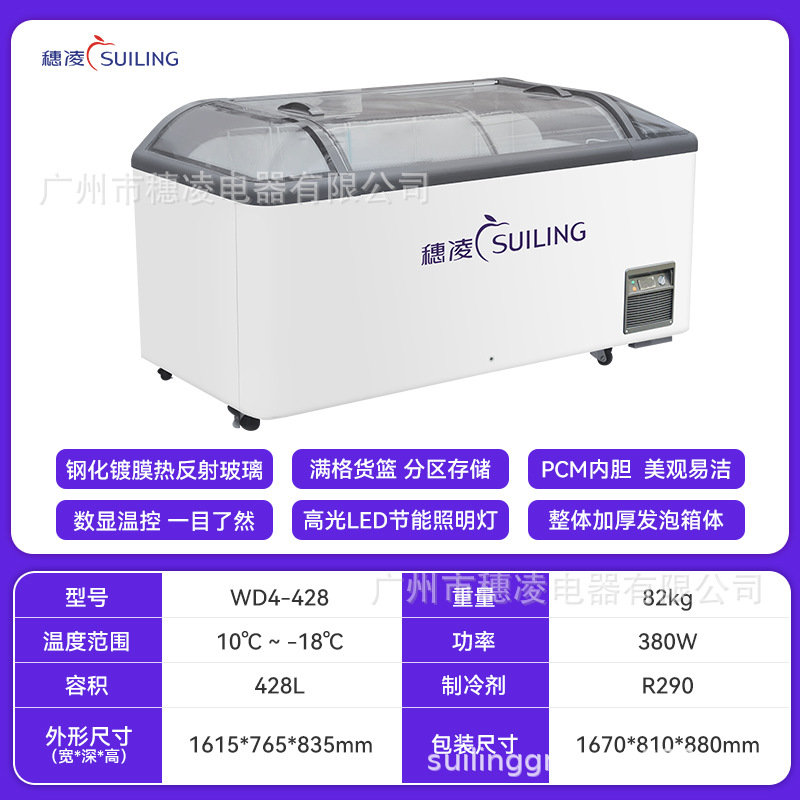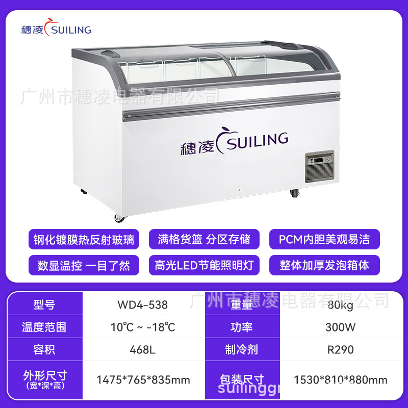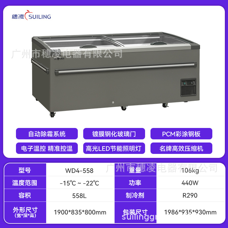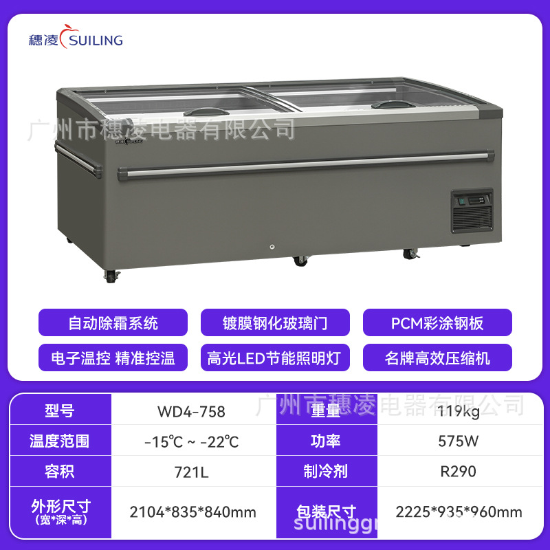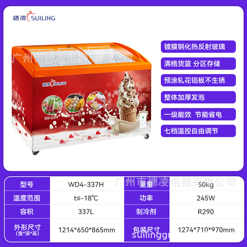 Suiling 스팟 냉동고 상업용 냉동고 단일 온도 냉동 냉장 디스플레이 캐비닛 아이스크림 슈퍼마켓 냉장고 소스 공장