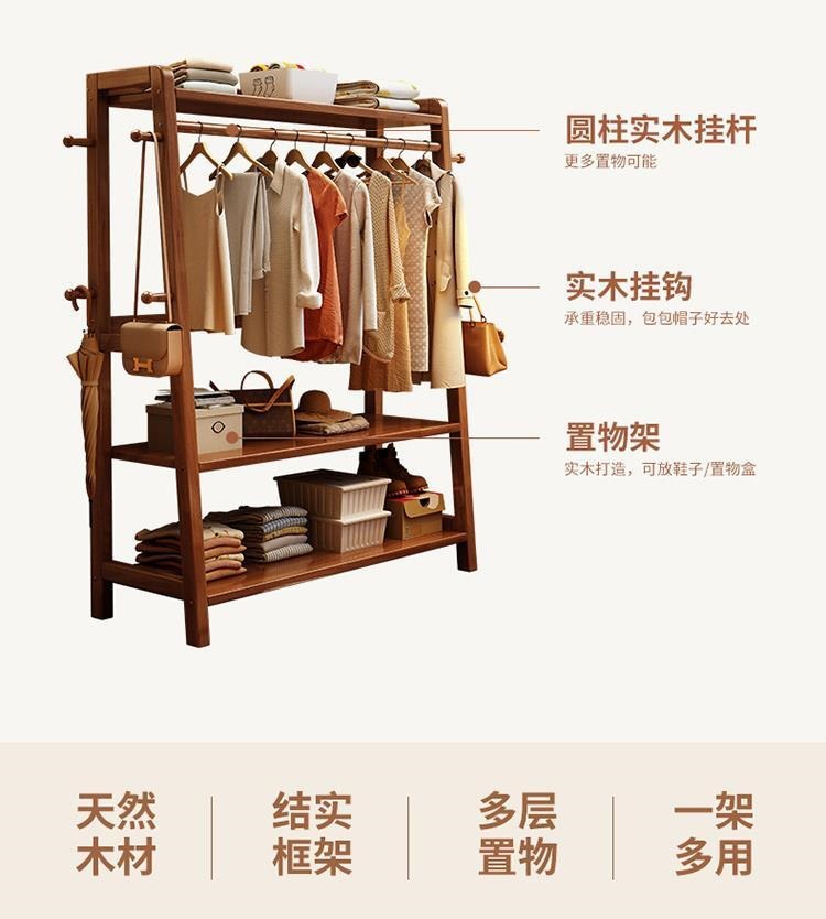단단한 나무 옷걸이, 바닥에서 천장까지 옷걸이, 가정용 옷걸이, 간단한 옷걸이, 침대 끝 수납 선반