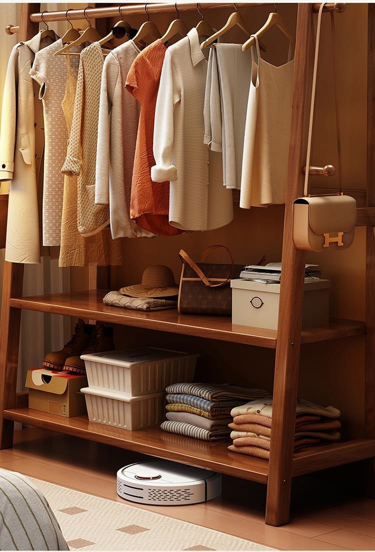 단단한 나무 옷걸이, 바닥에서 천장까지 옷걸이, 가정용 옷걸이, 간단한 옷걸이, 침대 끝 수납 선반스토어 가기
