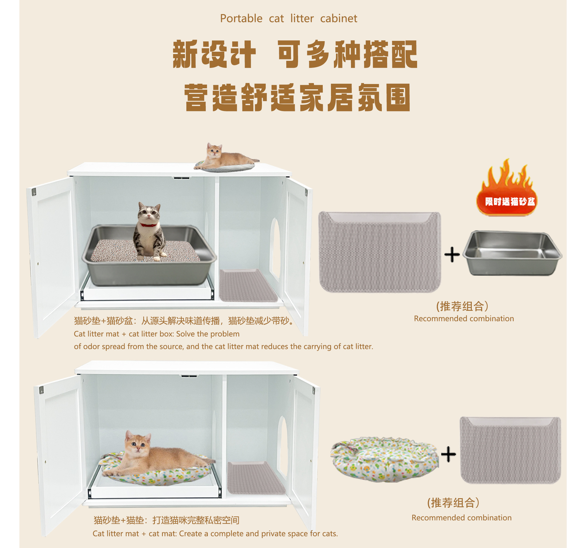• 무료 고양이 쓰레기 트레이 + 고양이 쓰레기 매트