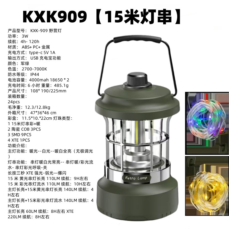 产品型号:KXK-380-1 太阳能串灯野营灯 产品颜色:黑色 材质: ABS