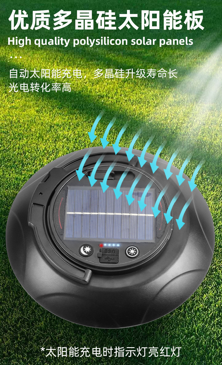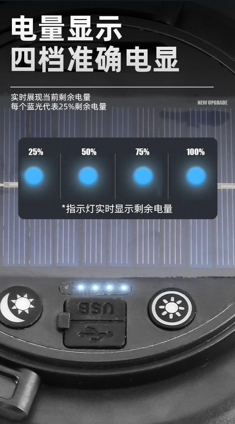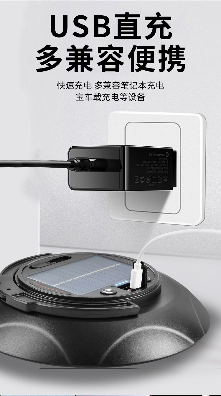 充电方式:type-c 5V 1A放电方式:主灯+灯串:6h 左右,主灯:8小时,灯串:12 小时