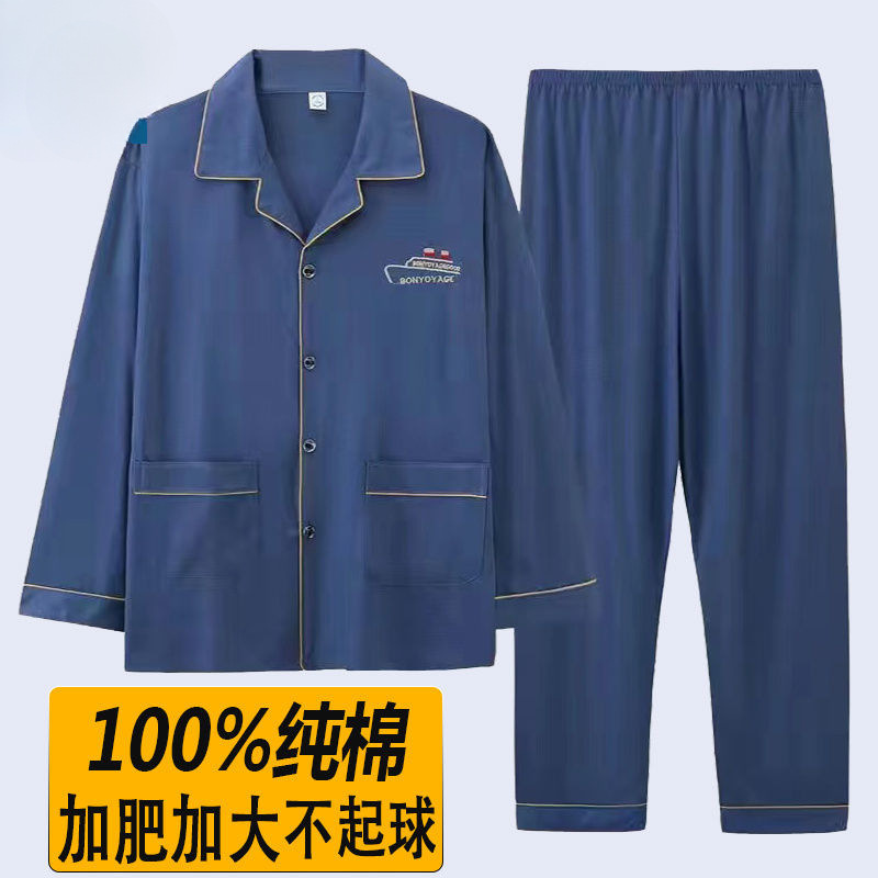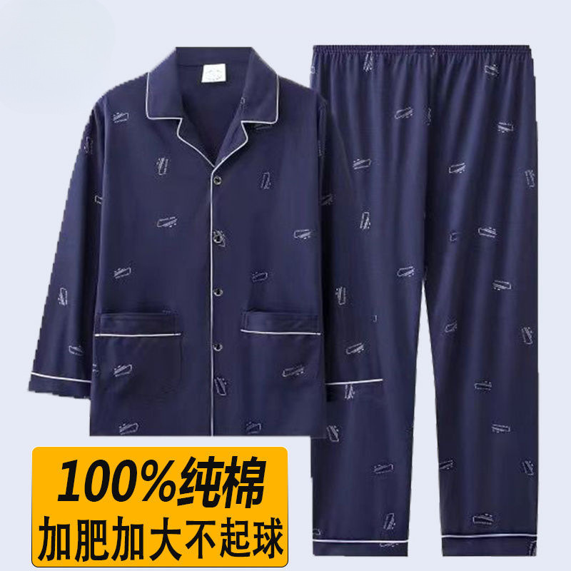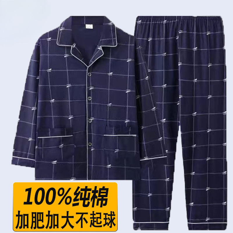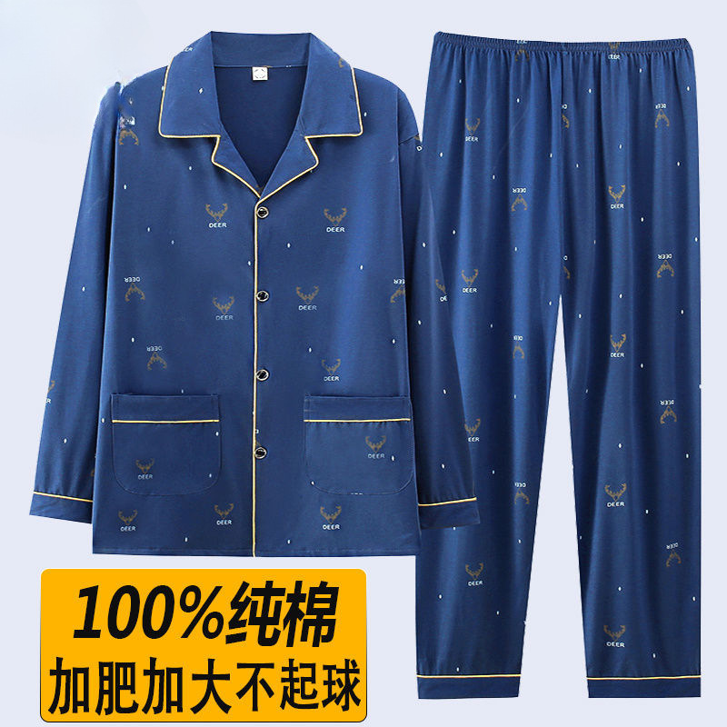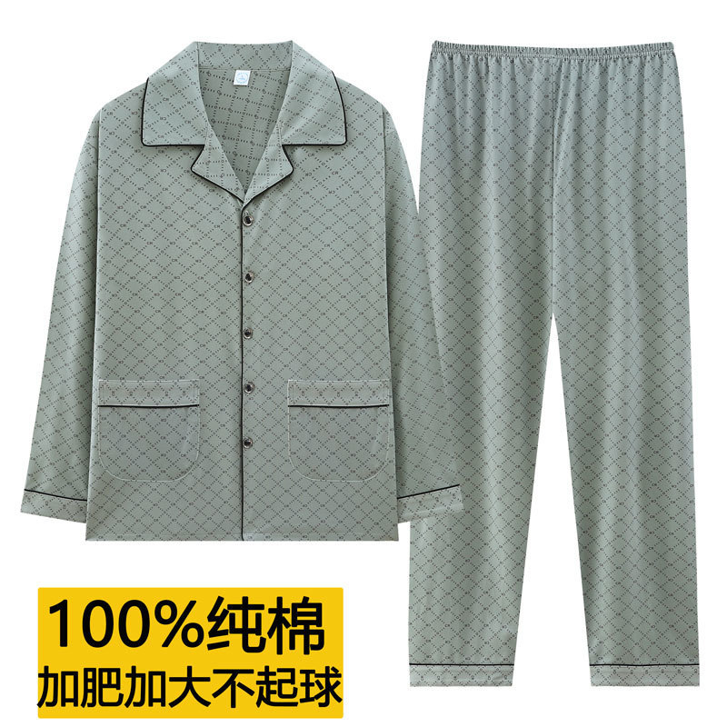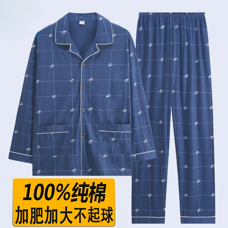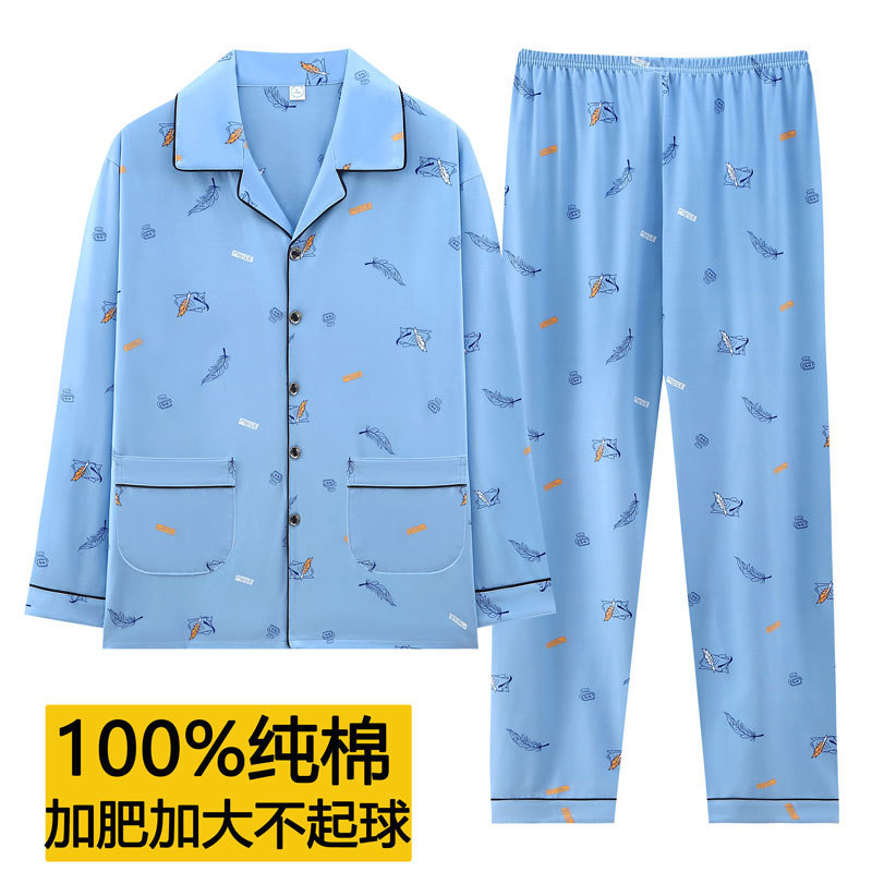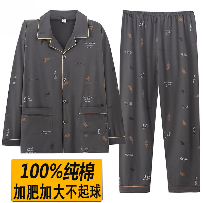 100% 순면 잠옷 남자의 봄과 가을 긴 소매 순수한 면화 플러스 사이즈 뚱뚱한 남자 청소년 홈 옷 남성 카디건 세트스토어 가기