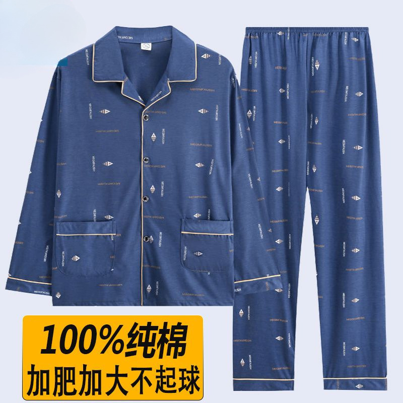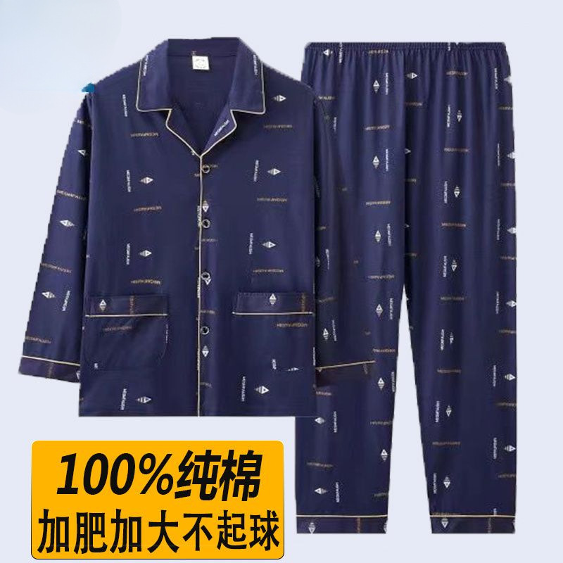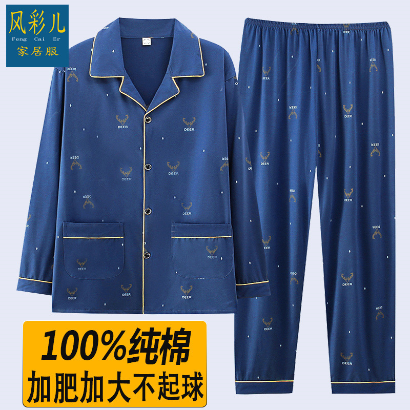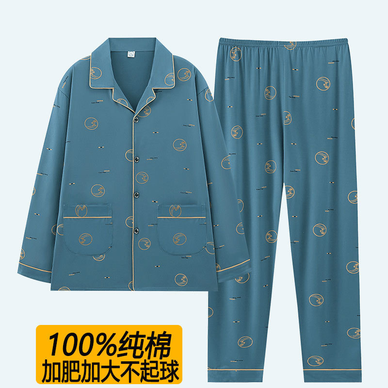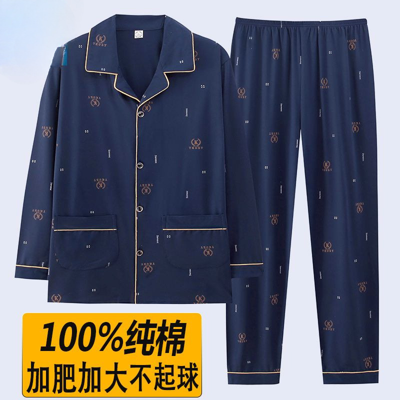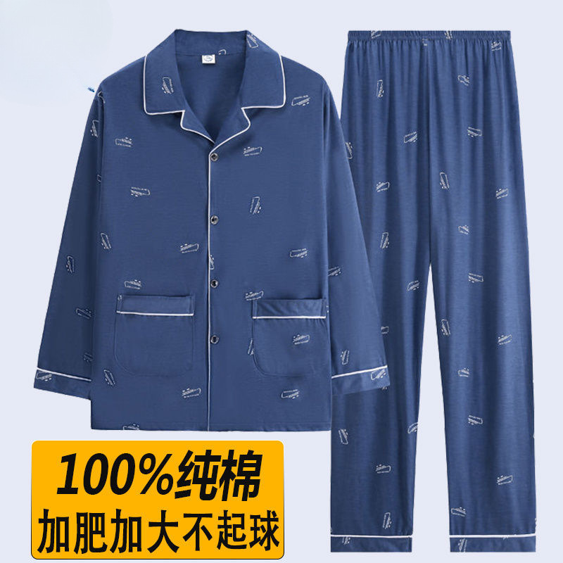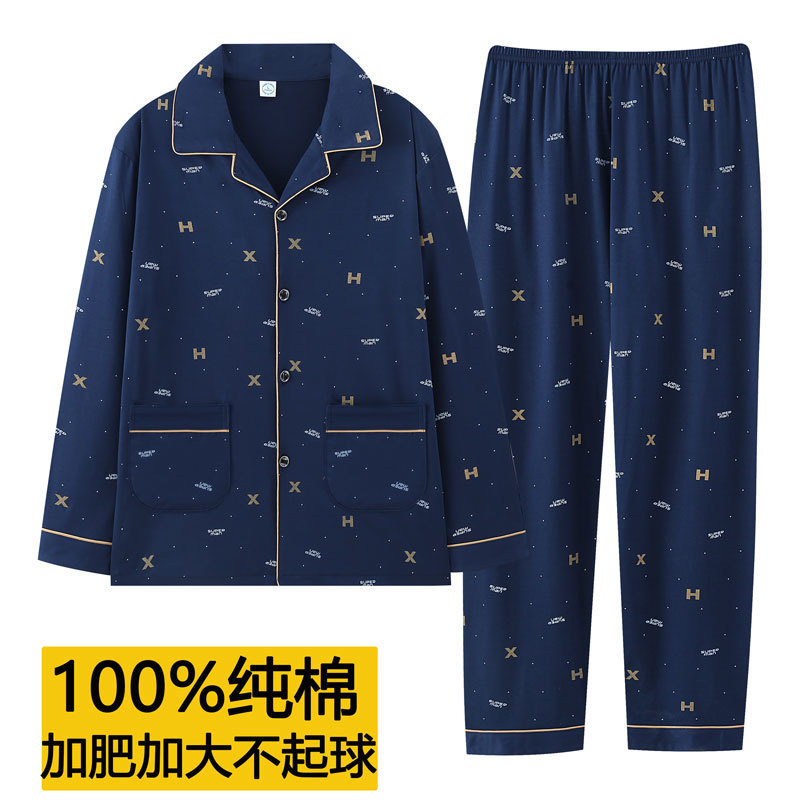 100% 순면 잠옷 남자의 봄과 가을 긴 소매 순수한 면화 플러스 사이즈 뚱뚱한 남자 청소년 홈 옷 남성 카디건 세트스토어 가기