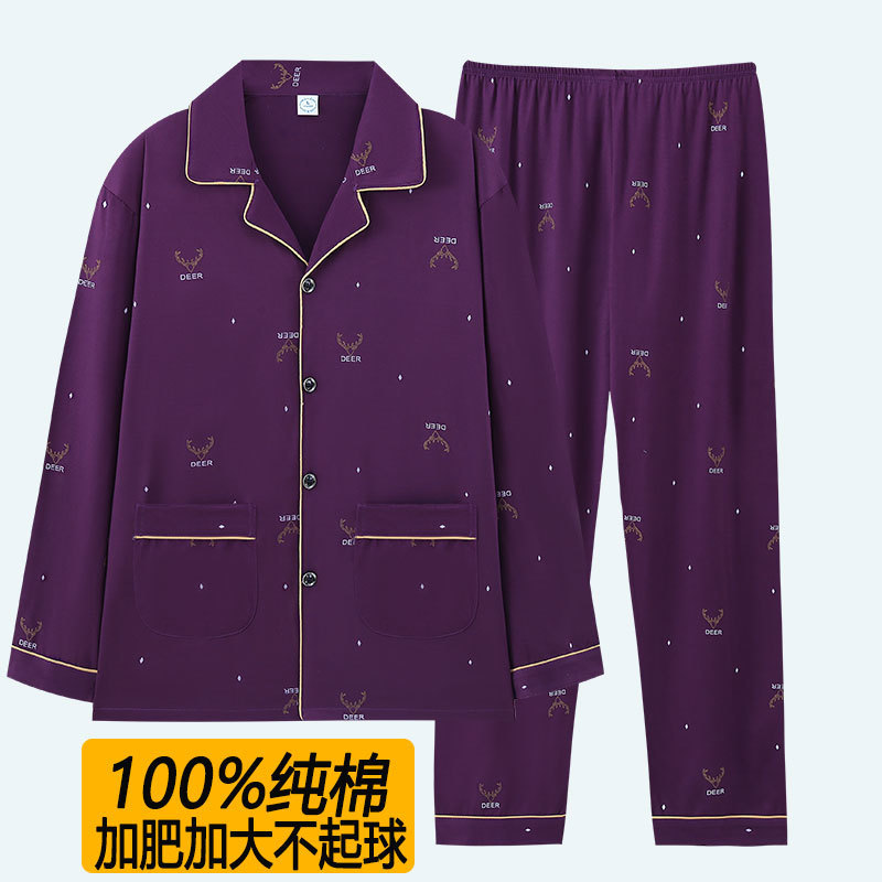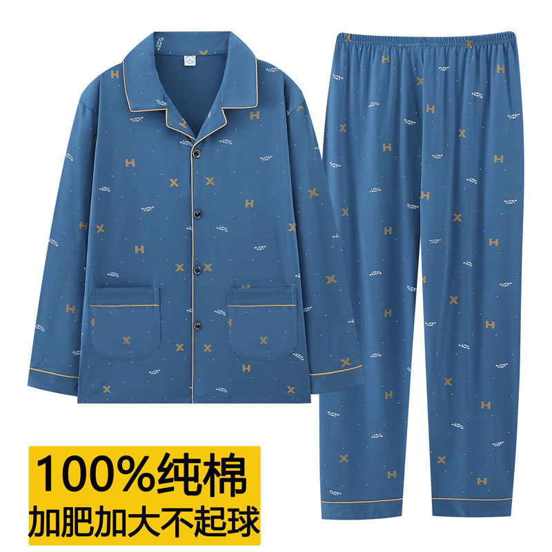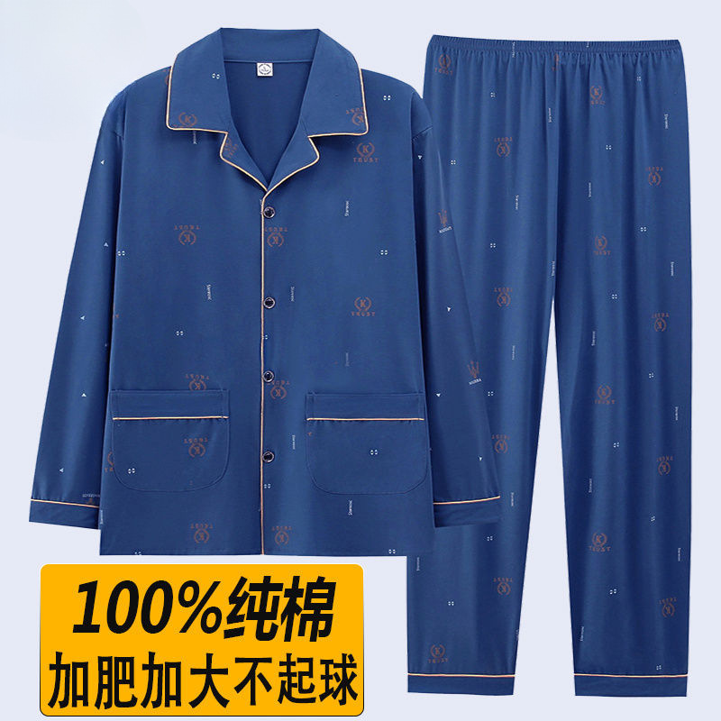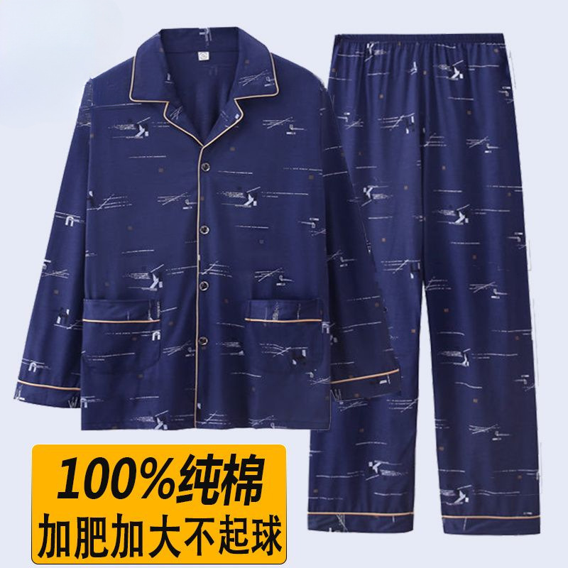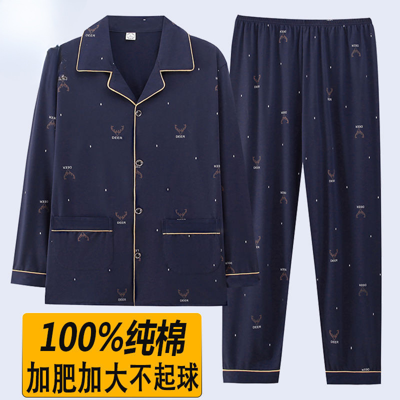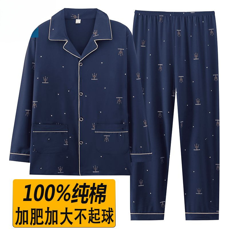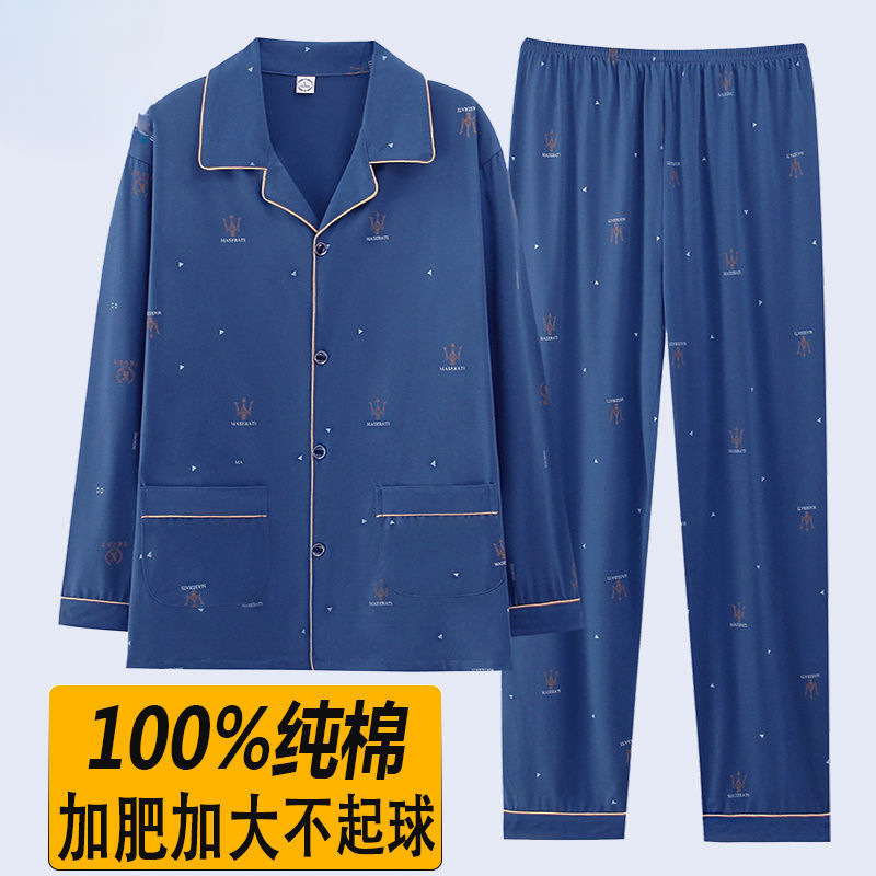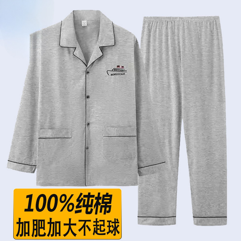 100% 순면 잠옷 남자의 봄과 가을 긴 소매 순수한 면화 플러스 사이즈 뚱뚱한 남자 청소년 홈 옷 남성 카디건 세트스토어 가기