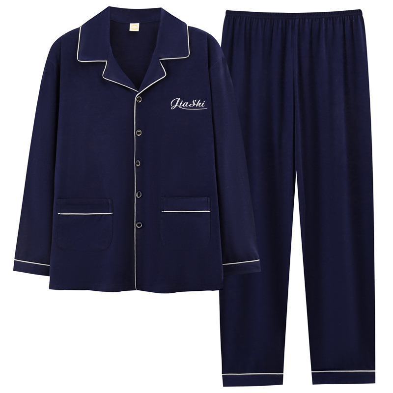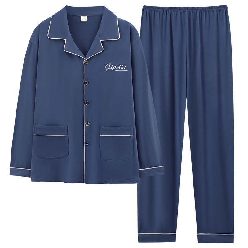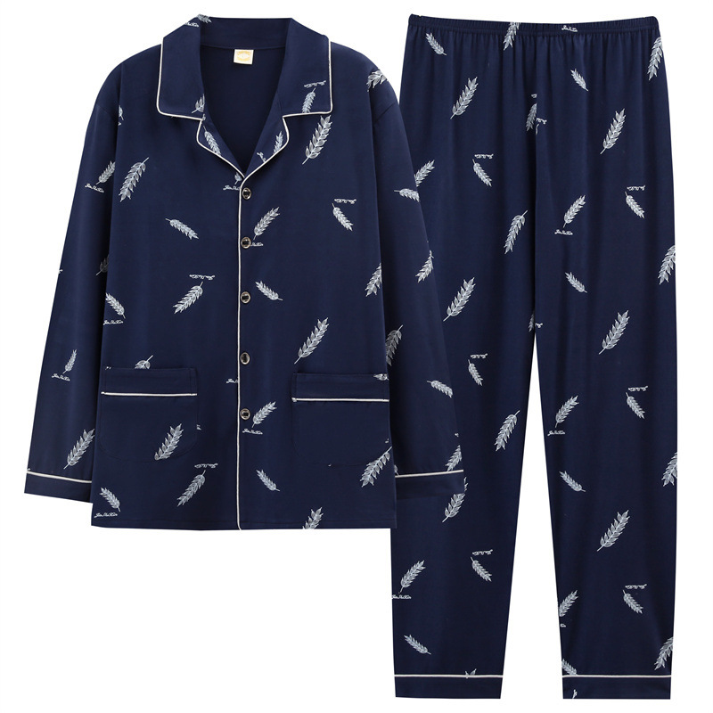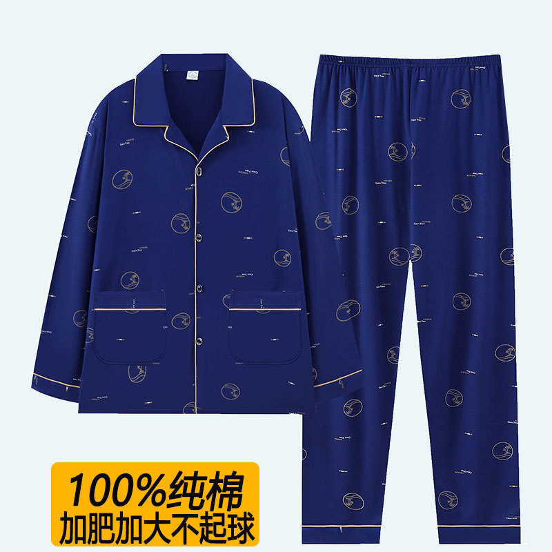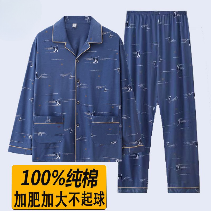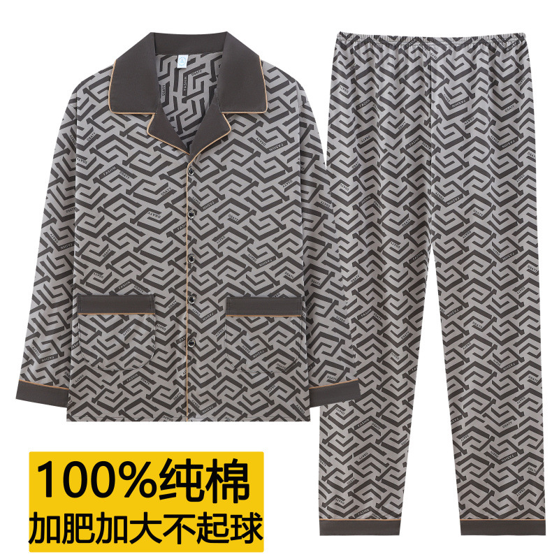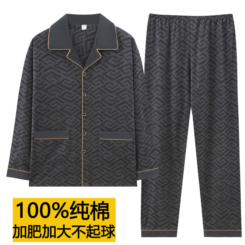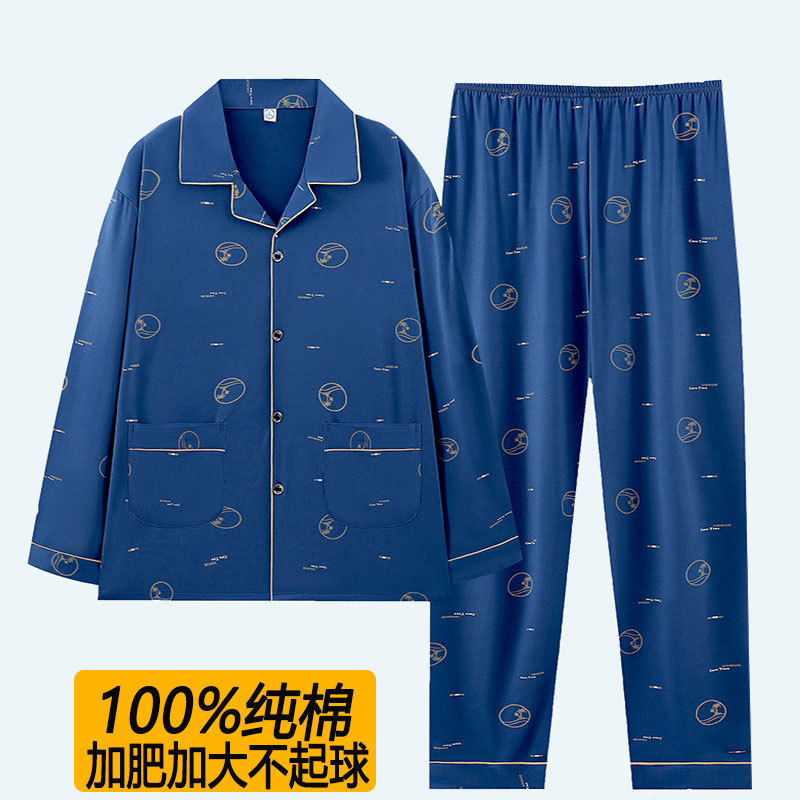 100% 순면 잠옷 남자의 봄과 가을 긴 소매 순수한 면화 플러스 사이즈 뚱뚱한 남자 청소년 홈 옷 남성 카디건 세트스토어 가기