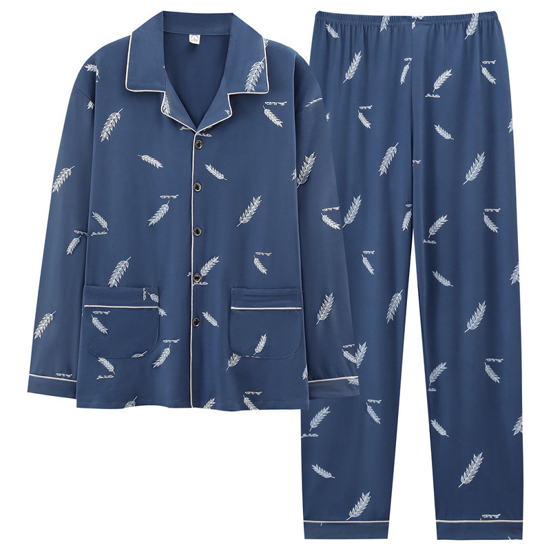100% 순면 잠옷 남자의 봄과 가을 긴 소매 순수한 면화 플러스 사이즈 뚱뚱한 남자 청소년 홈 옷 남성 카디건 세트