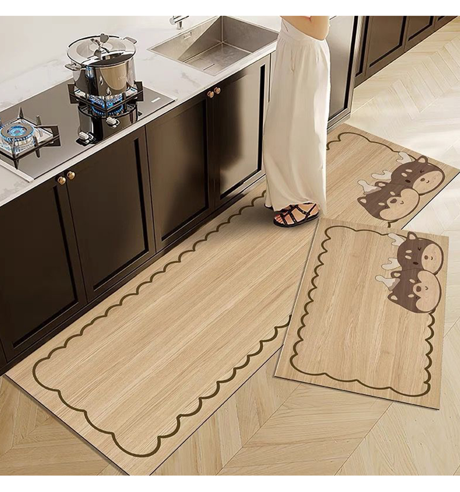 주방 바닥 매트 먼지 저항하고 사용하기 쉬운 Diatom 진흙 바닥 매트 만화 귀여운 빠른 건조 물 흡수 매트 2 피스 미끄럼 방지 발 매트