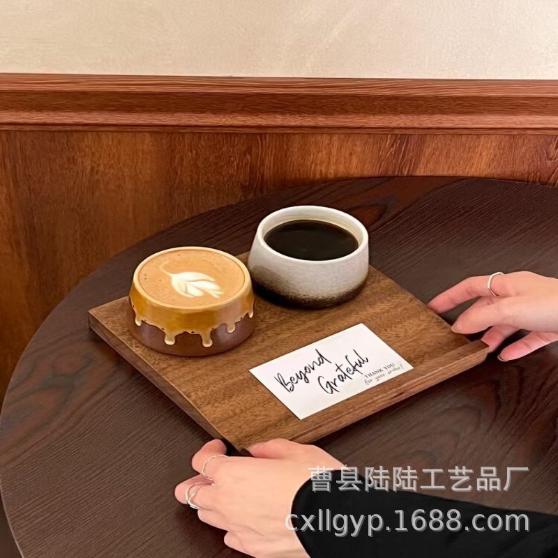 음료용 원목 트레이, 두 구멍이 있는 나무 트레이, 세 칸 나무 커피/차 시음 컵 받침, 나무 트레이 수납스토어 가기