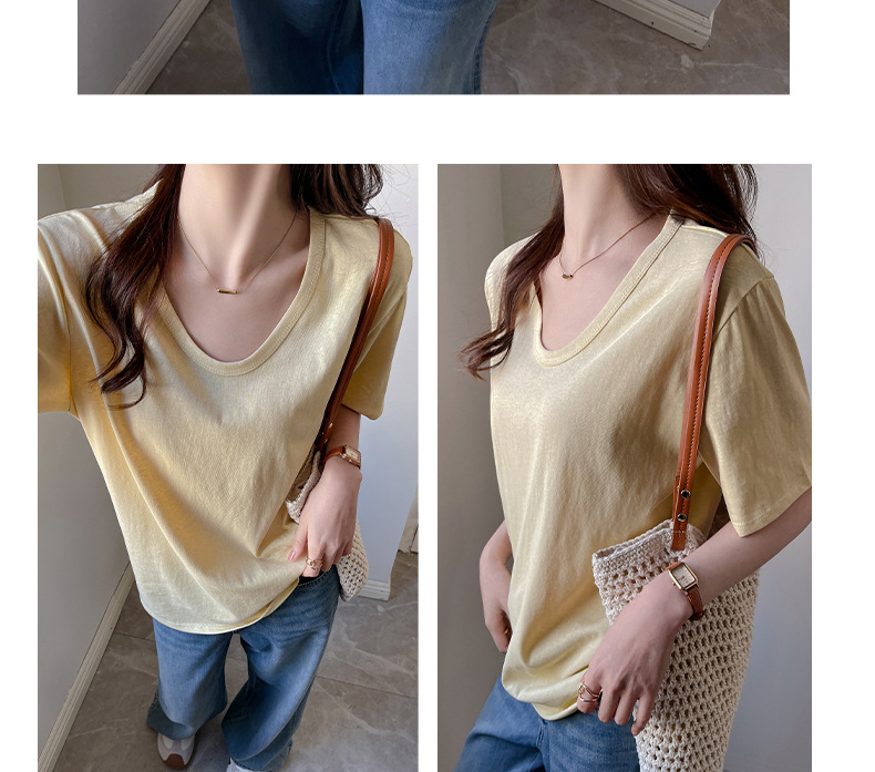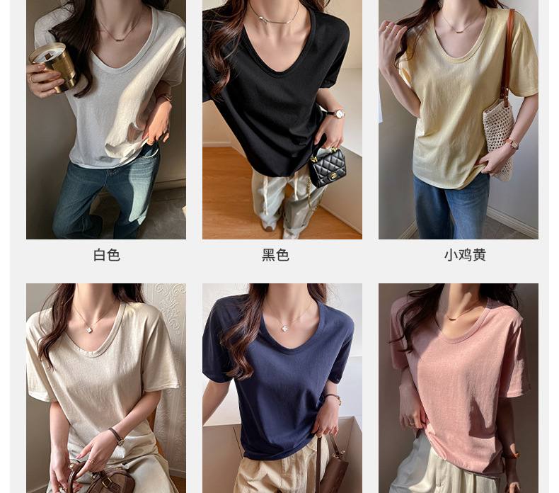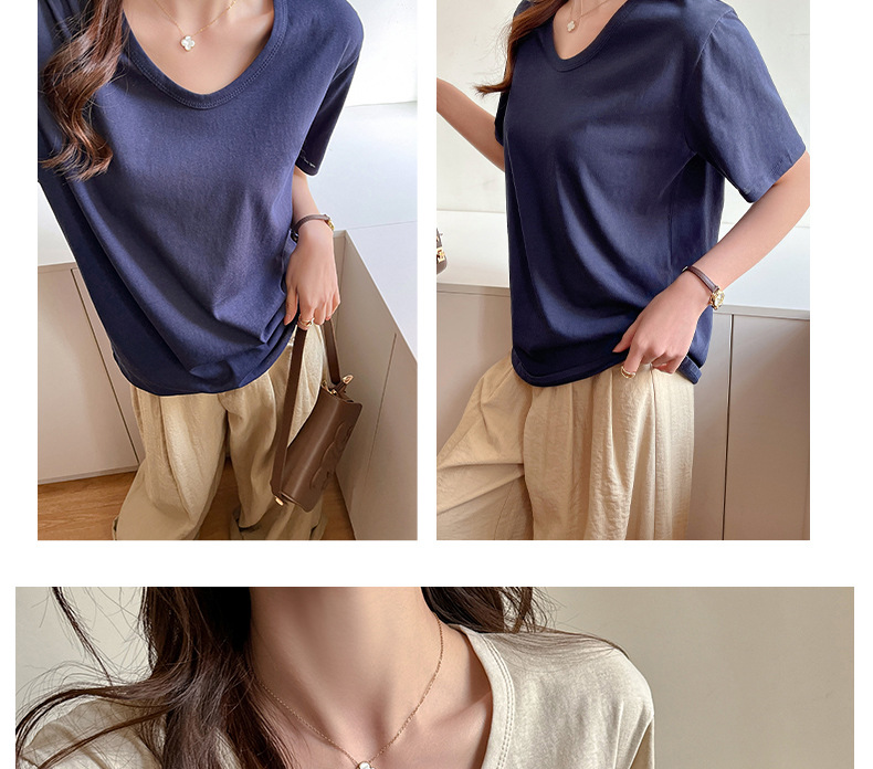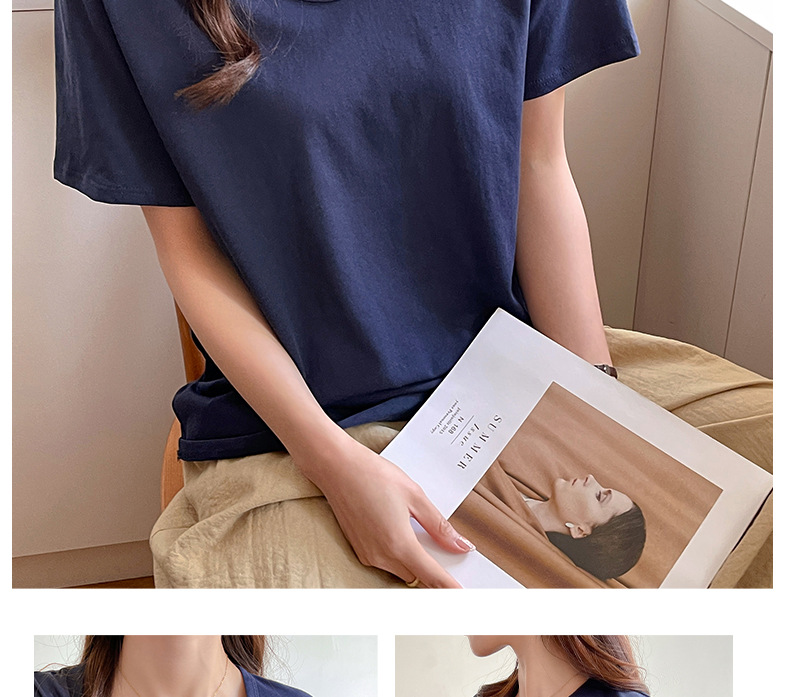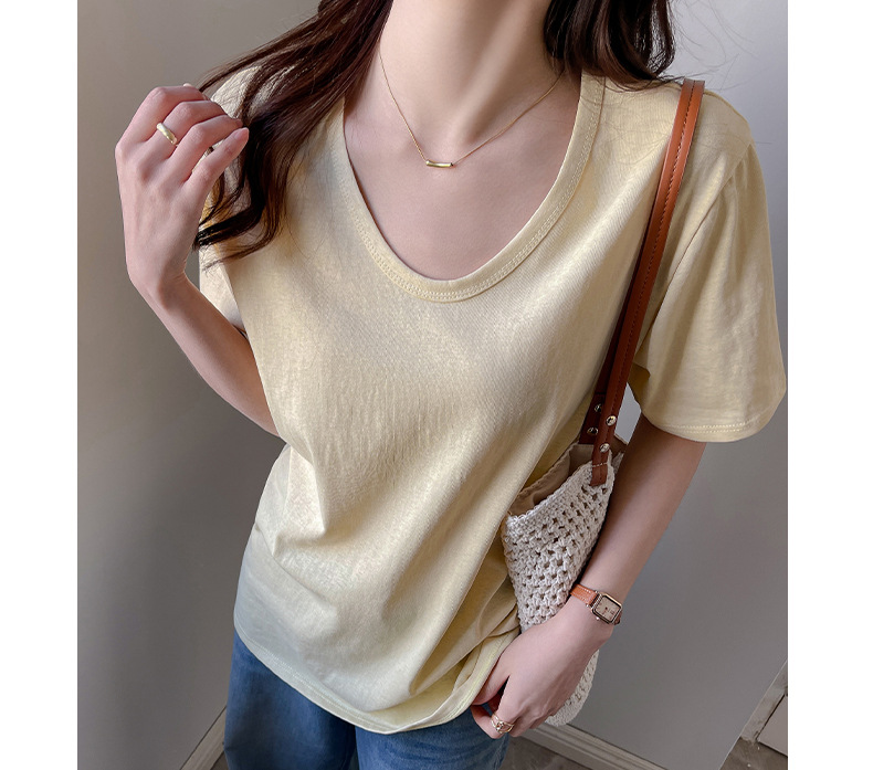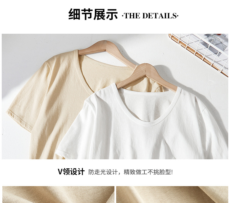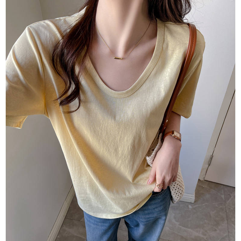 엄선된 오른쪽 어깨 눈송이 면 반팔 티셔츠 여성 브이넥 봄 상의 한국식 루즈하고 활용도가 높은 고급 하의 셔츠스토어 가기