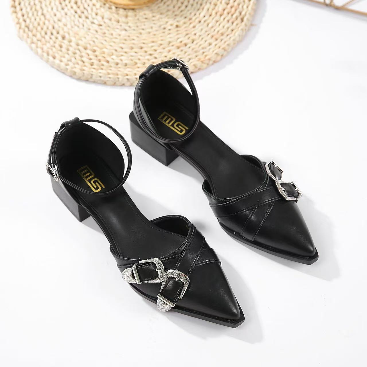 새로운 봄 미드힐 하이힐, 프렌치 스타일의 작은 가죽 신발, 스커트가 있는 여성용 미색 뾰족한 신발, 두꺼운 굽의 메리제인 신발