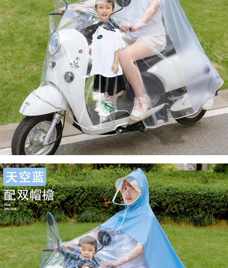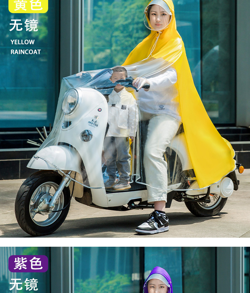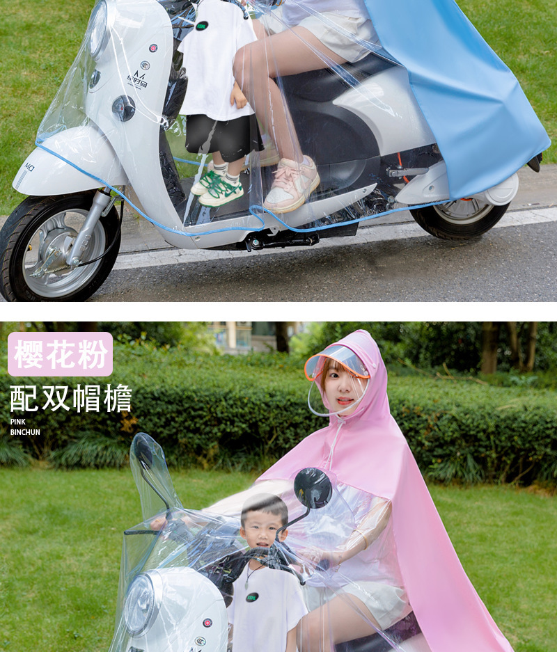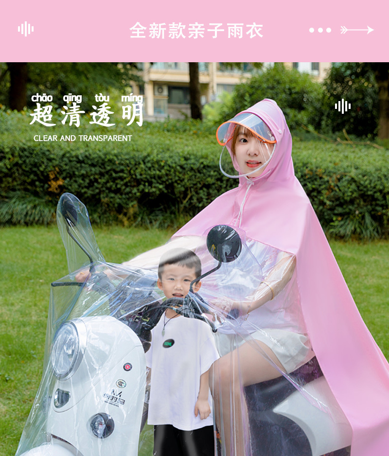 전기 자동차 비옷 판초 투명한 부모-자식 어린이 오토바이 두꺼운 거울 커버 전기 자동차 판초 5XL스토어 가기