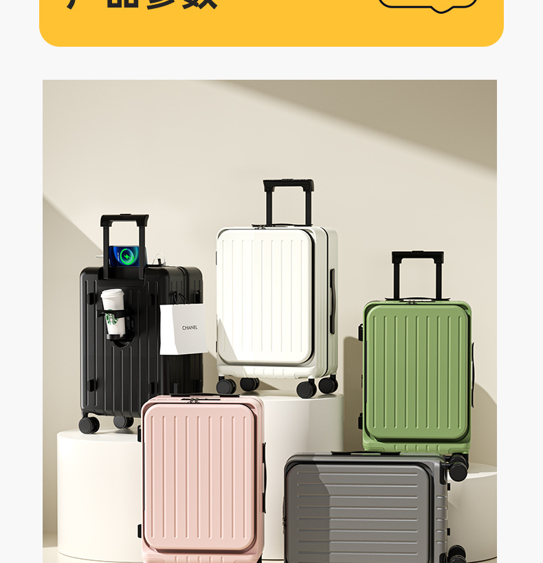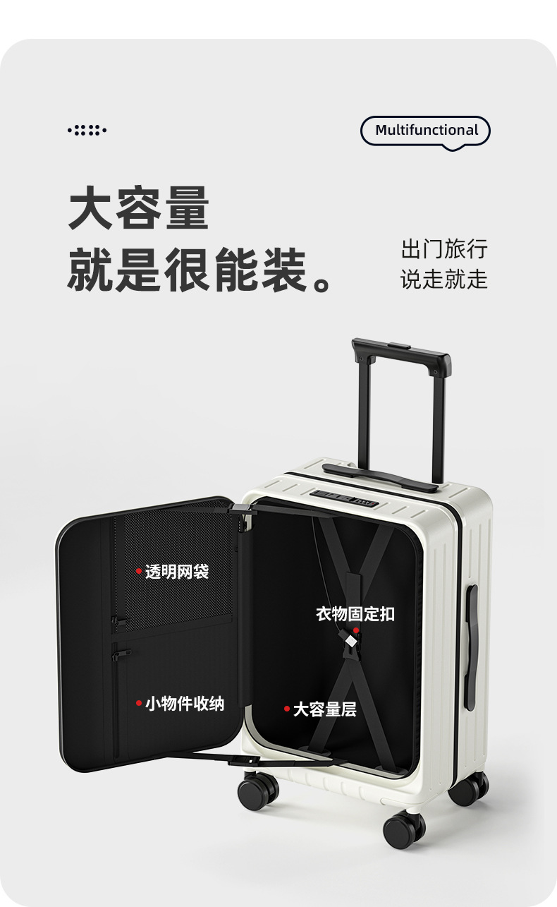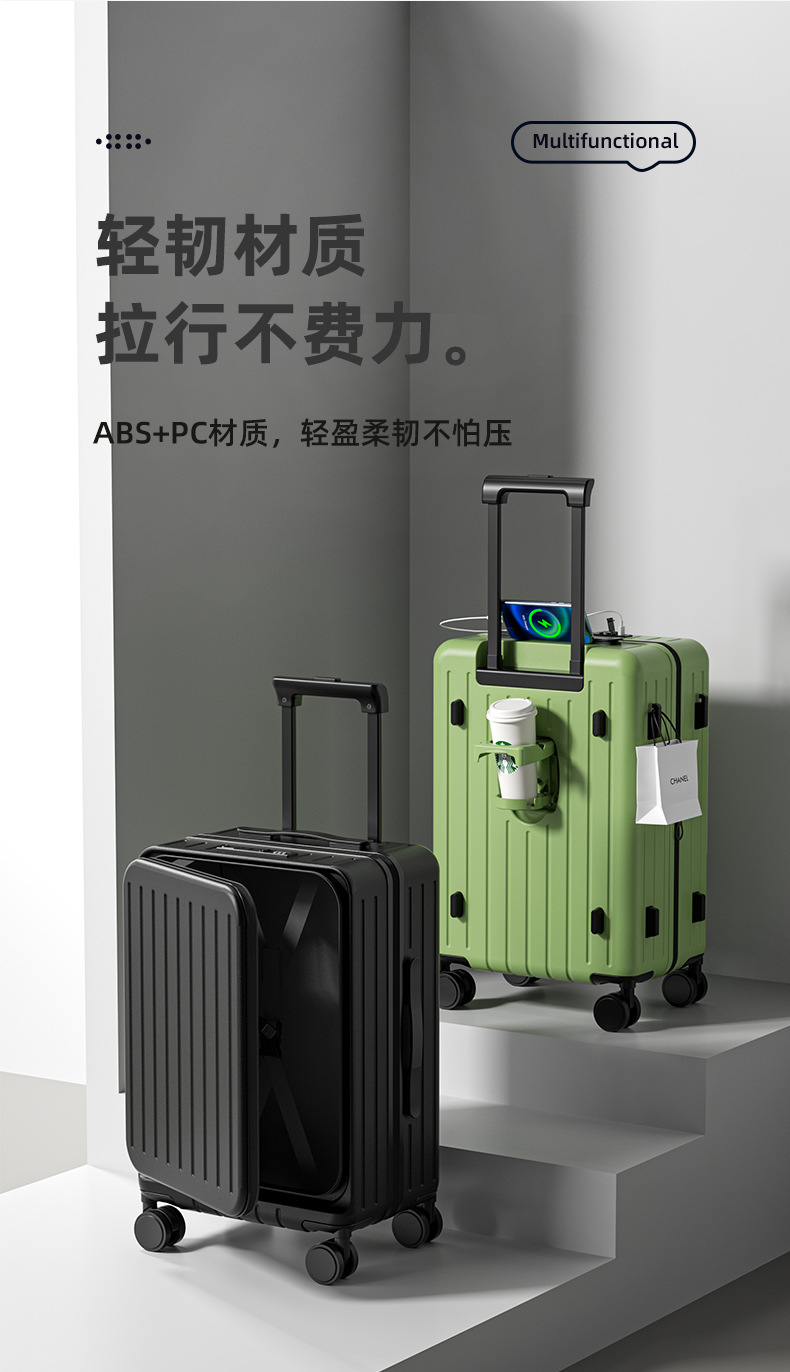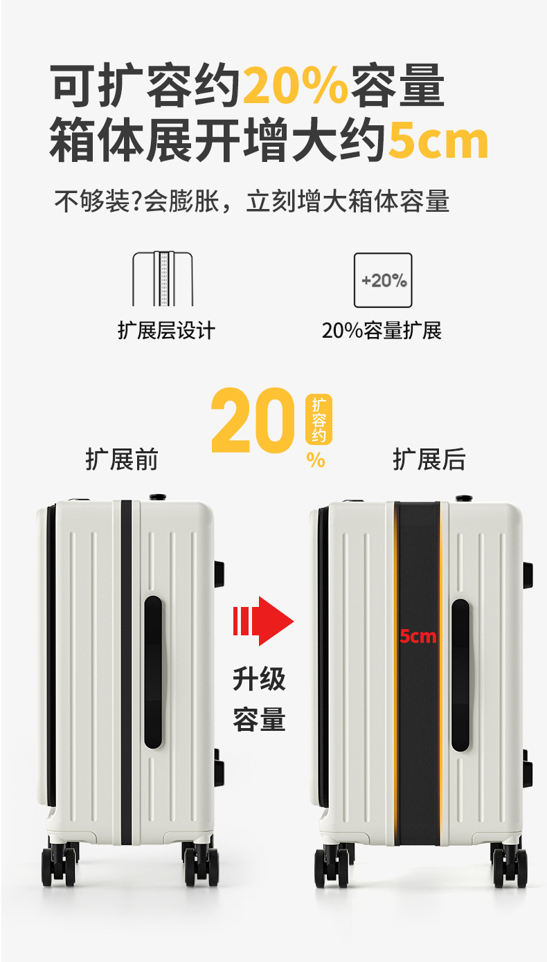 사이드 오픈 뚜껑 확장 가능한 수하물 케이스 여성 여행 비밀번호 상자 20 인치 탑승 두꺼운 대용량 고색 가치 트롤리 케이스스토어 가기