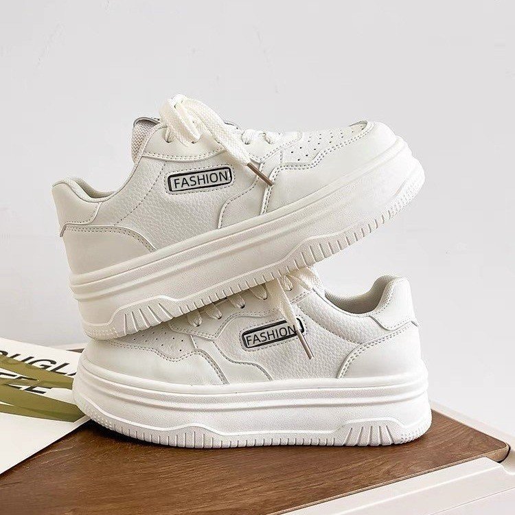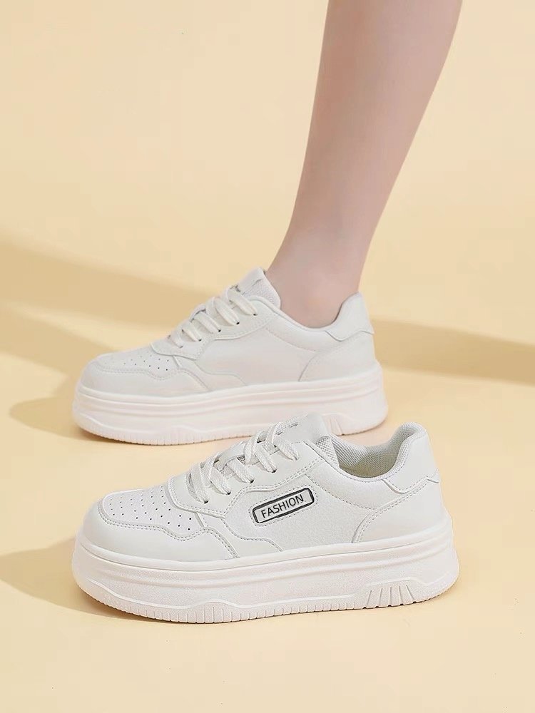 Ins 유행 두꺼운 바닥 흰색 신발 여성 2025 봄 새로운 한국 가죽 스포츠 캐주얼 신발 색상 일치 높이 증가 보드 신발스토어 가기