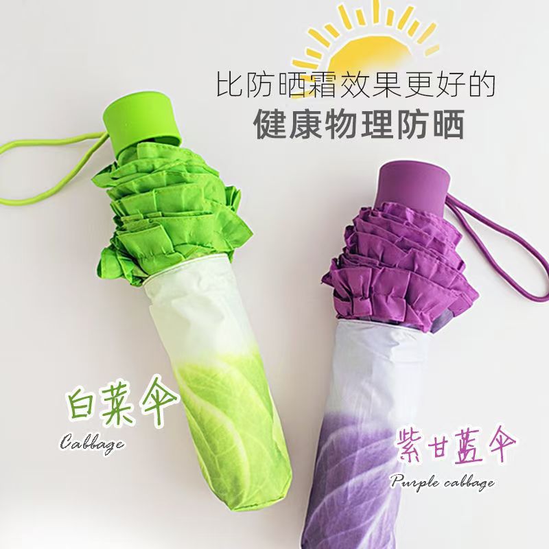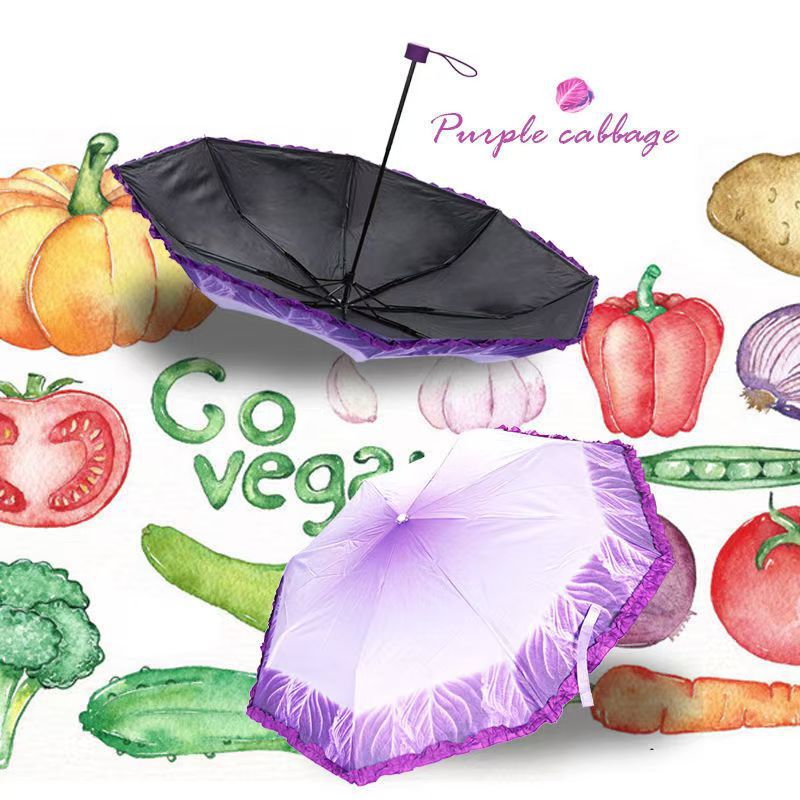 물에 닿는 상추 우산, 독특한 양배추 우산, 자외선 차단, 창의적인 보라색 양배추 접이식 우산, 비가 오나 눈이 오나 접이식 우산