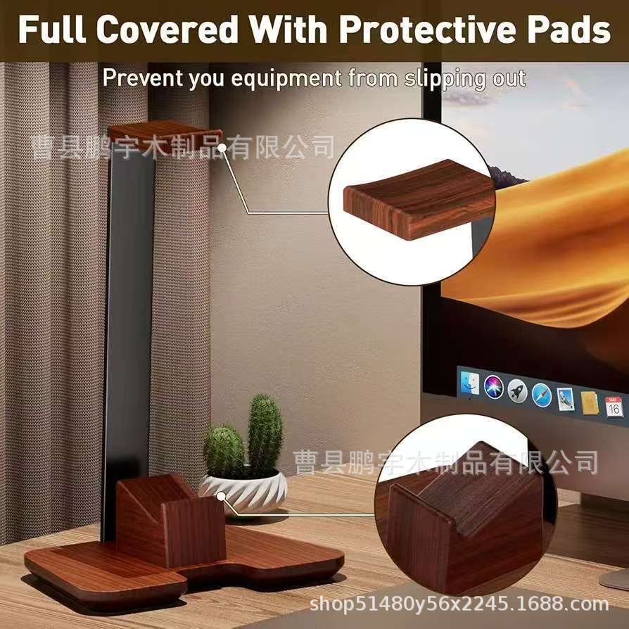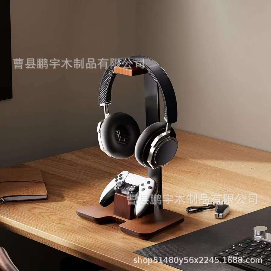 게임 패드 홀더가있는 크리 에이 티브 나무 헤드폰 스탠드 홈 나무 통합 핸들 헤드폰 스탠드 스토리지 랙