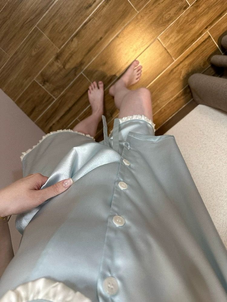 공주 스타일 아이스 실크 파자마 여성 여름 새로운 반팔 달콤한 하이 엔드 포장 솔리드 컬러 느슨한 홈 의류 세트스토어 가기