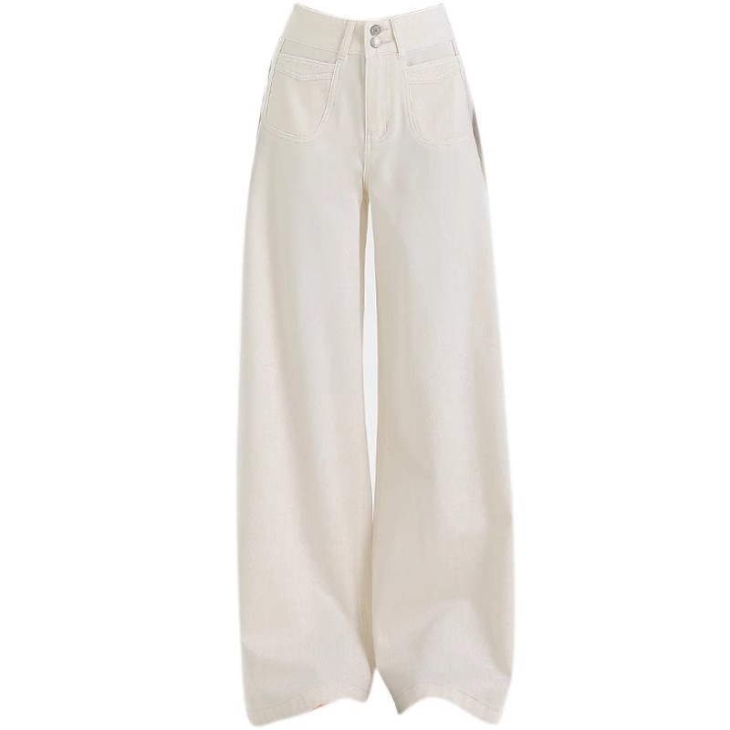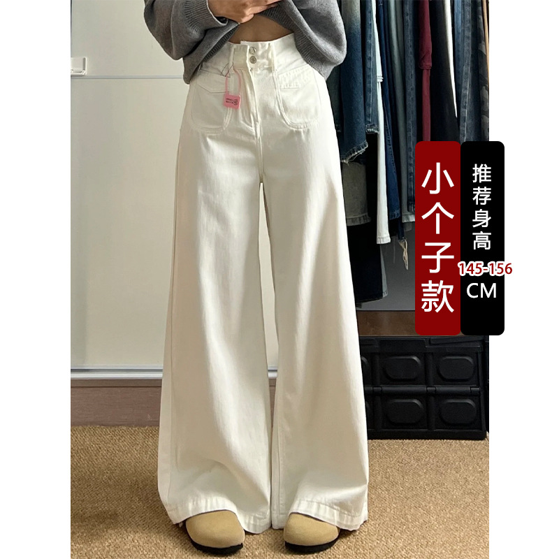 하이 엔드 여성의 봄과 가을 새로운 배 모양의 몸 A 버전 느슨한 바지 아래로 작은 흰색 데님 넓은 다리 바지스토어 가기