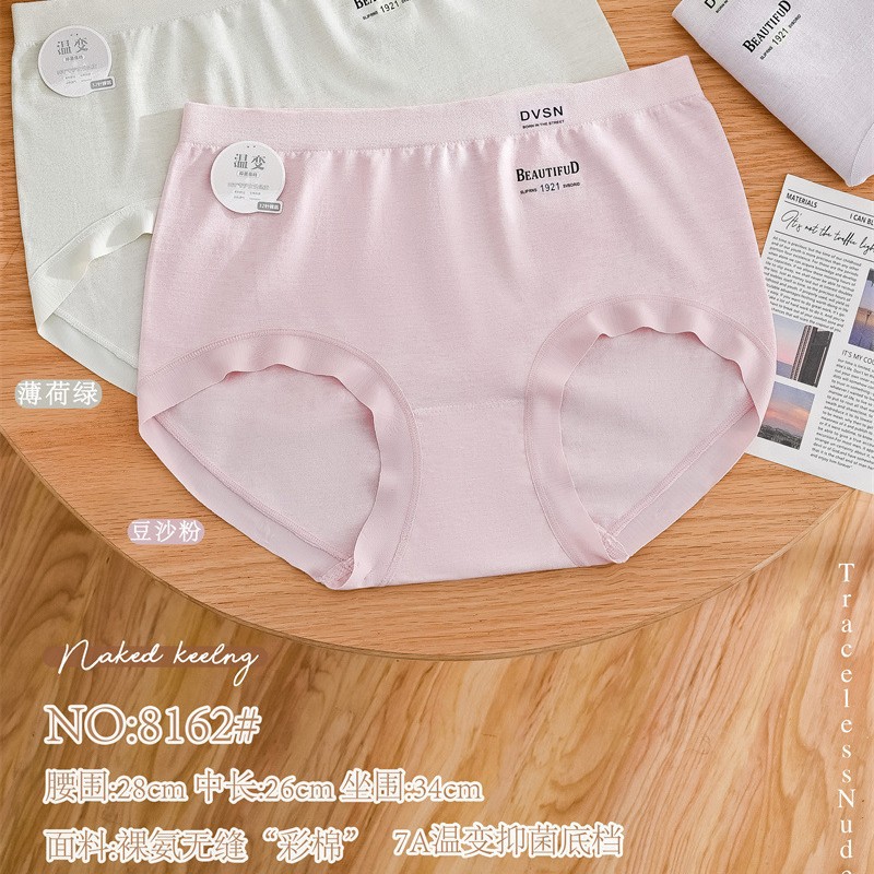 Xingnianmeng 8162 여성용 컬러 원사 이음매없는 문자 인쇄 팬티 중간 허리 오프셋 인쇄 팬티 통기성 팬티