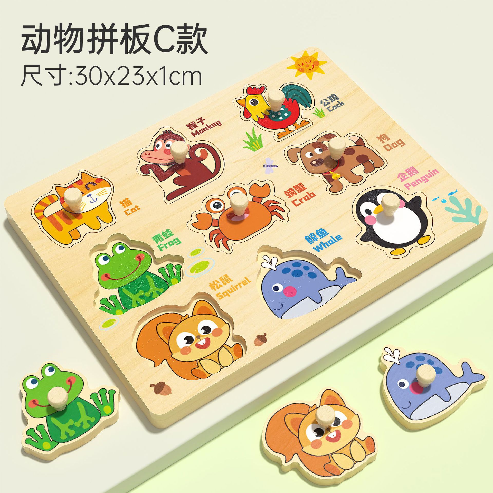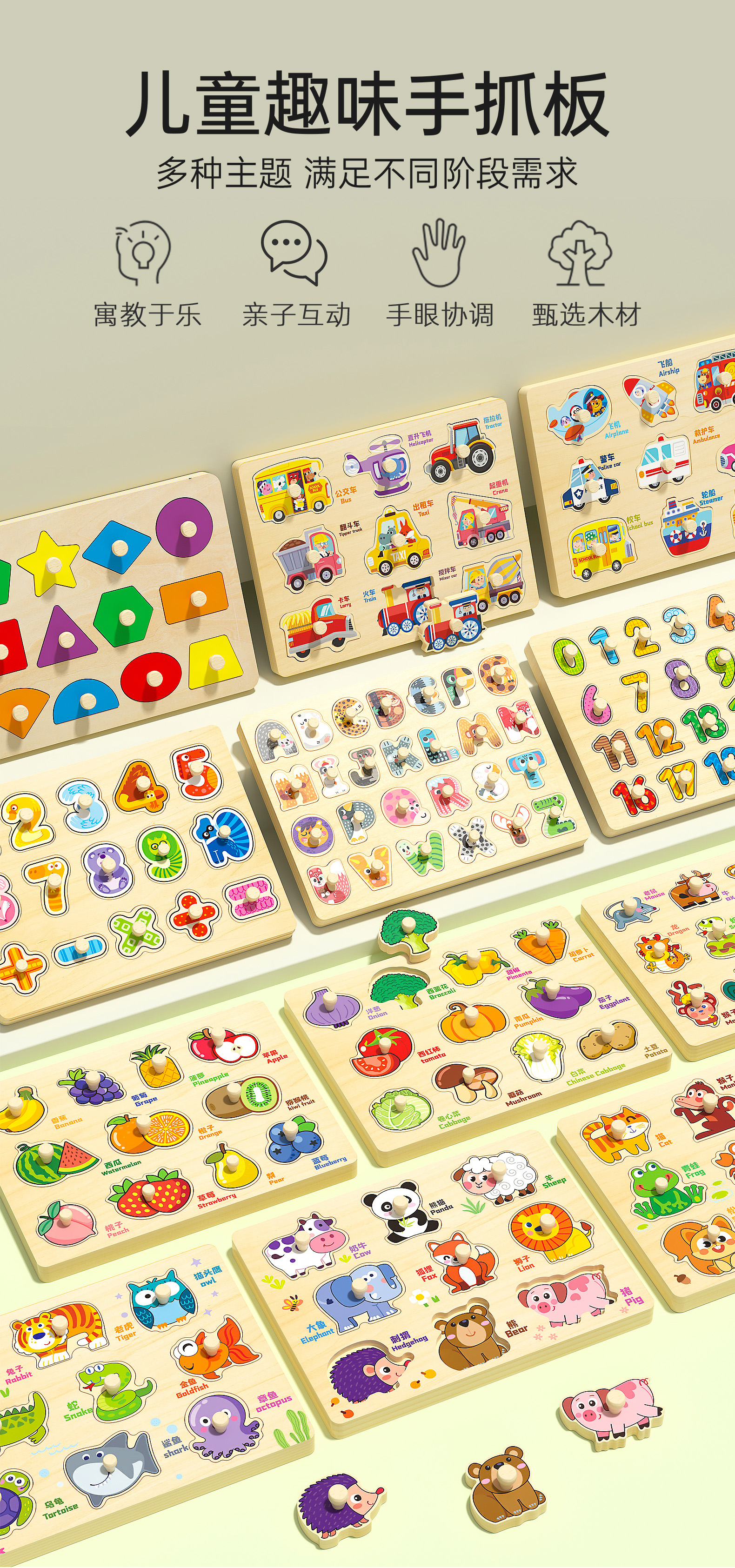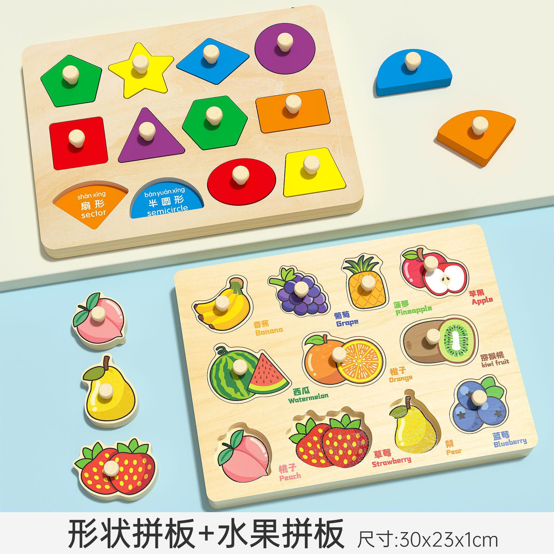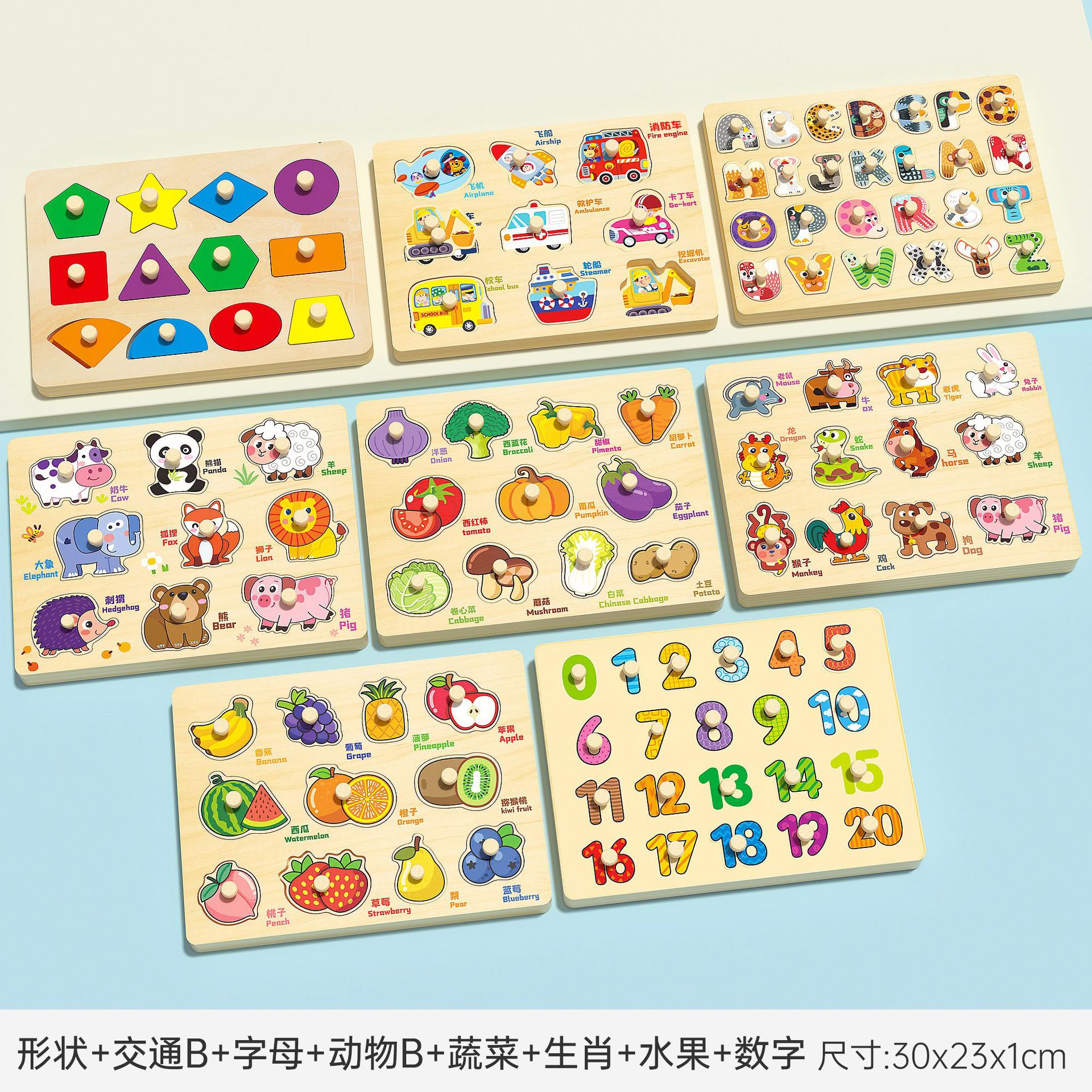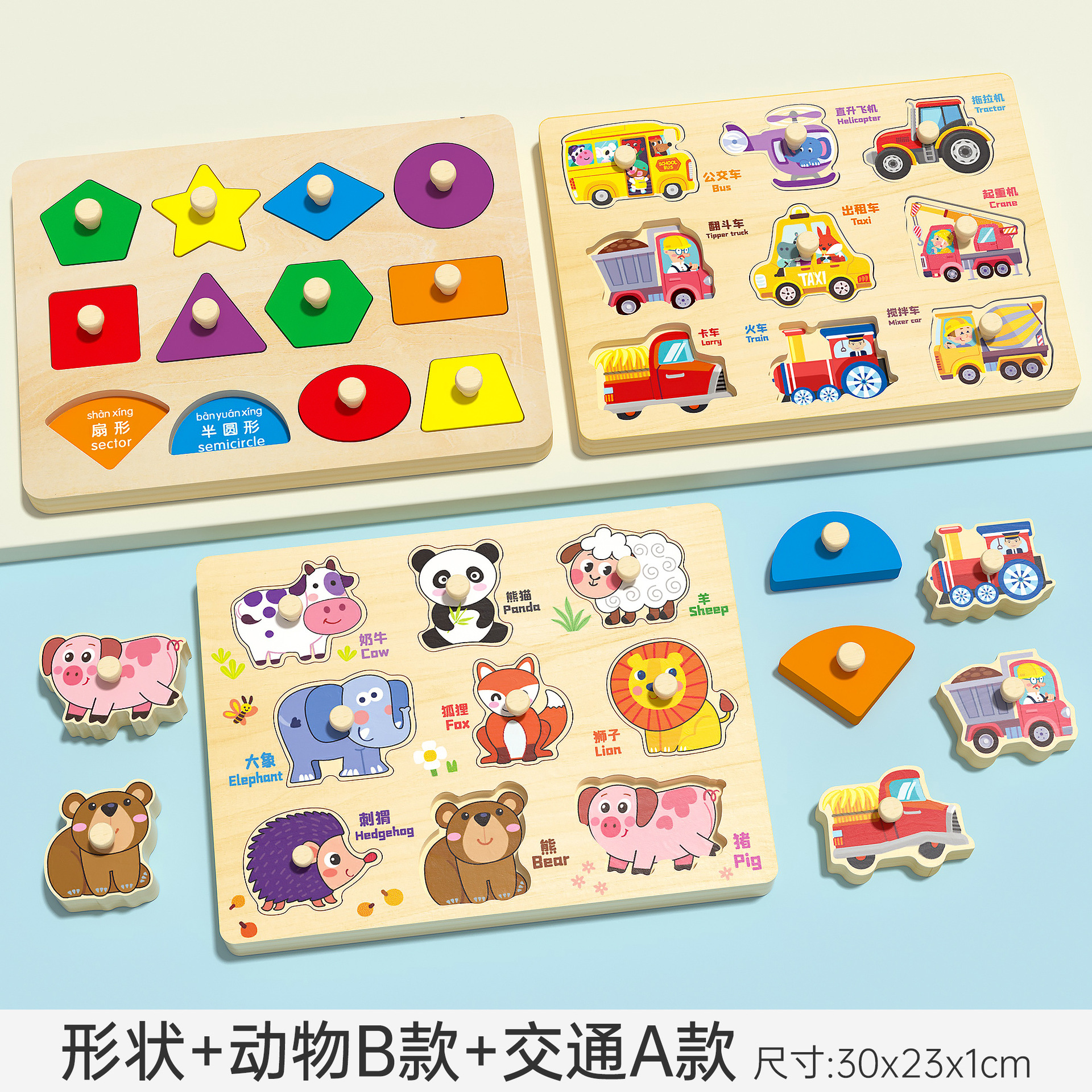 손잡이판 나무 퍼즐 몬테소리 어린이 조기교육 교육용 장난감 패널 아기 유아용 나무 블록 3~6세스토어 가기