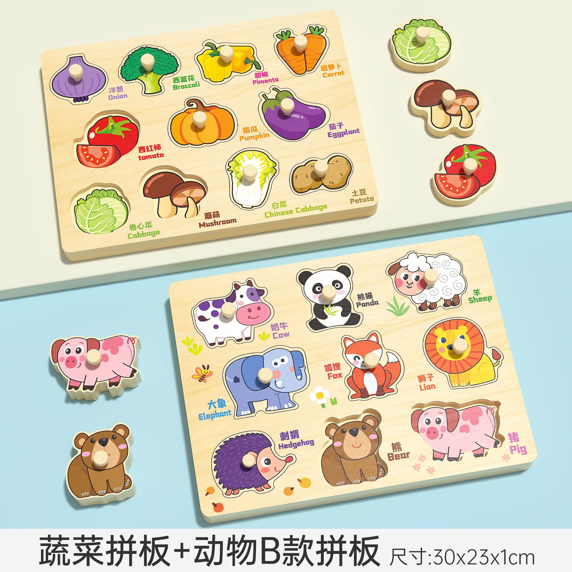 • 야채 손으로 잡아 퍼즐 보드 [중국어와 영어 이중 언어 조합]