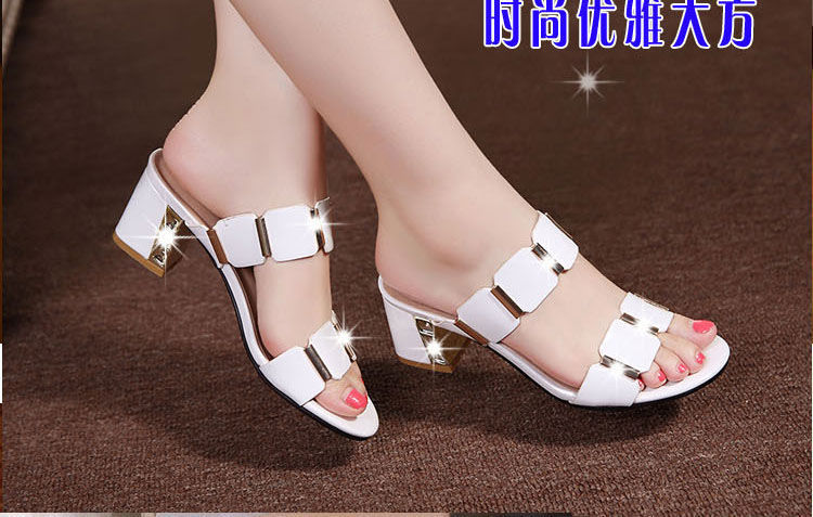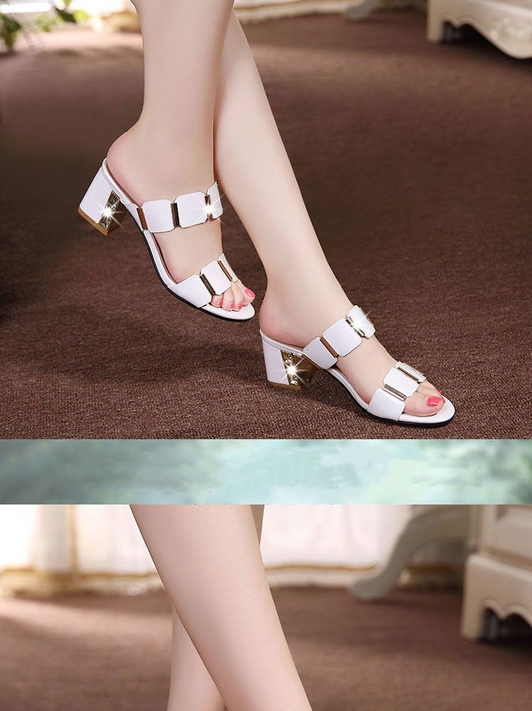 2025 새로운 대외 무역 패션 다목적 하이힐 여성 두꺼운 굽 슬리퍼 여성 외부 착용 샌들 대형스토어 가기