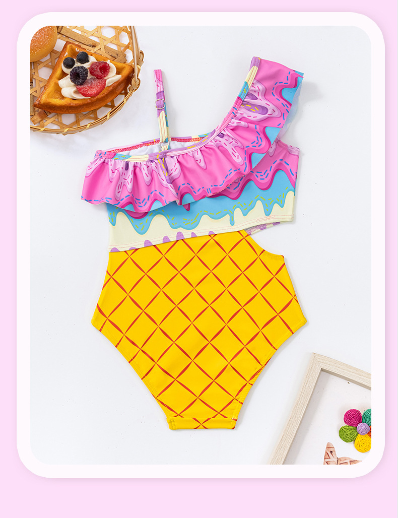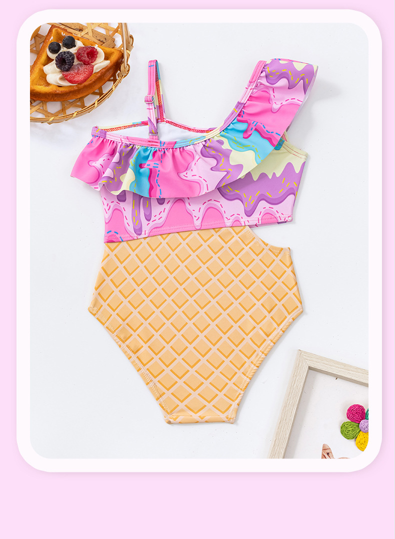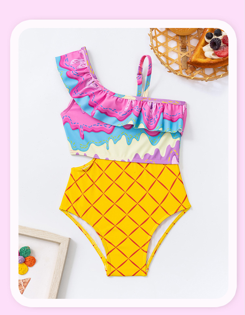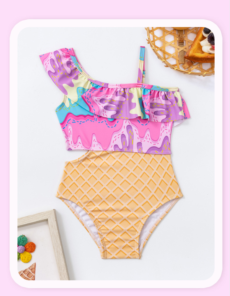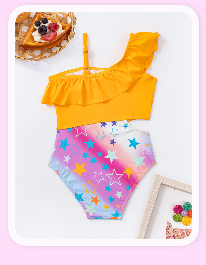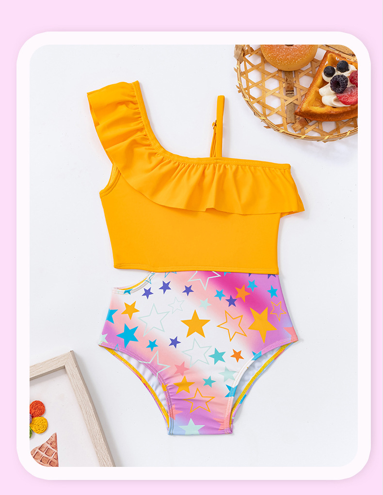 외국 무역 크로스보더 여아용 원숄더 비키니 투피스 수영복 귀여운 아동 수영복 도매 유아용스토어 가기