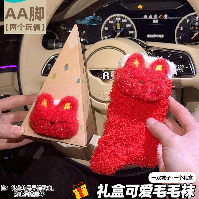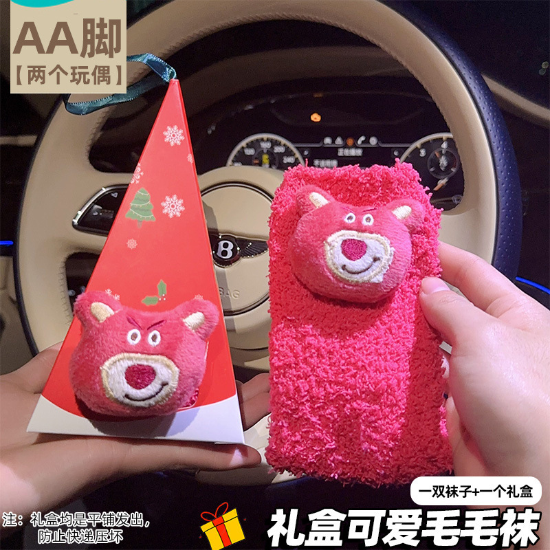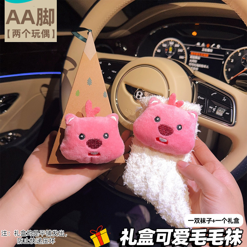 Lulu Little Beaver 선물 상자 양말 산호 벨벳 겨울 두꺼운 따뜻한 만화 귀여운 가장 친한 친구 커플 양말 선물 양말스토어 가기