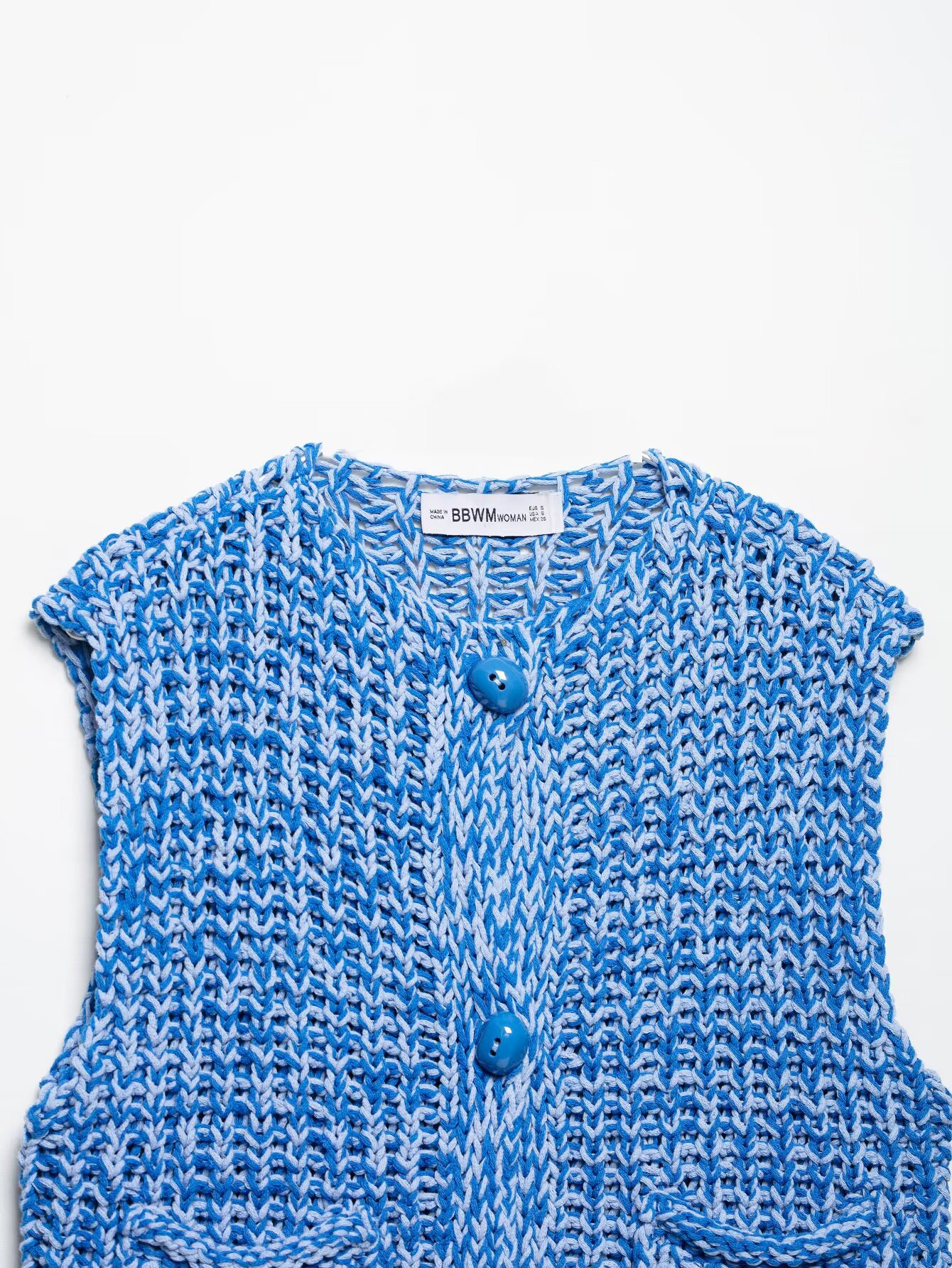 DEEABAE 2025 봄 신작 여성 두꺼운 바늘 민소매 라운드 넥 니트 조끼 여성 5802011