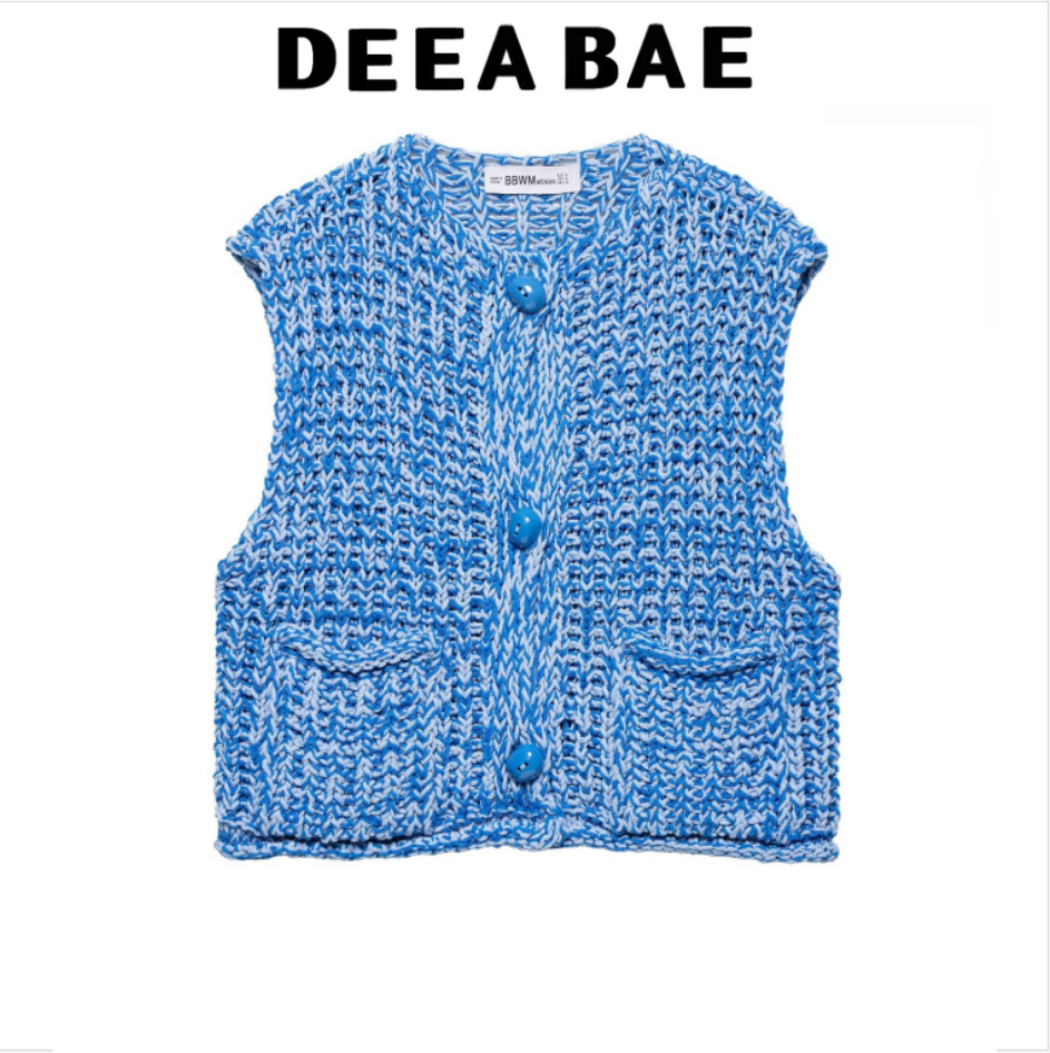 DEEABAE 2025 봄 신작 여성 두꺼운 바늘 민소매 라운드 넥 니트 조끼 여성 5802011스토어 가기
