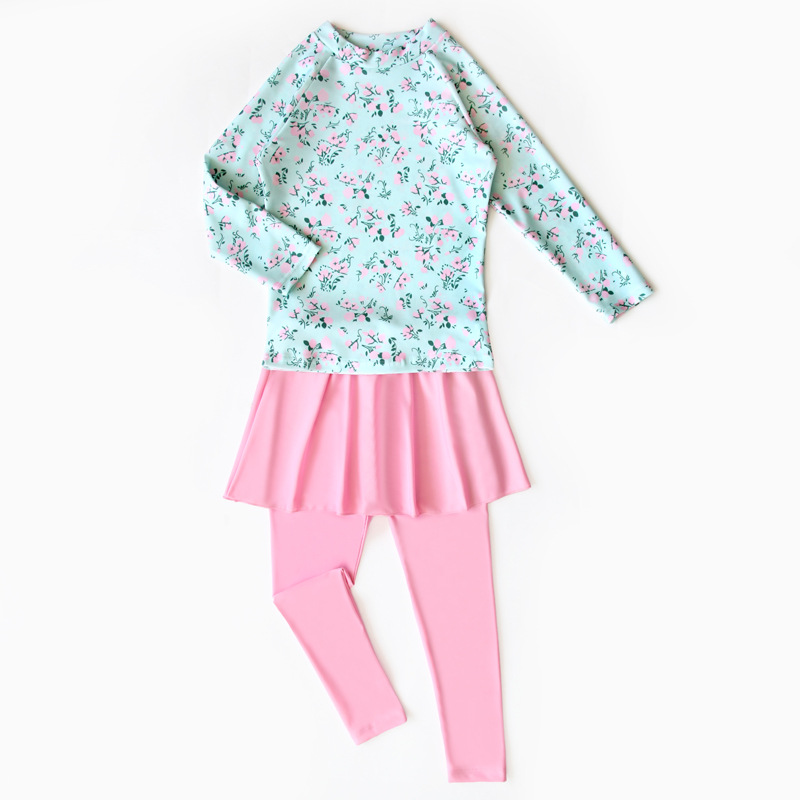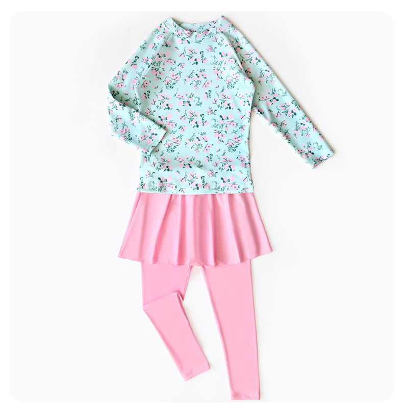 아동용 수영복, 여아용 긴팔 자외선 차단 수영복, 중대형 아동용 바지 스커트 스타일 속건 여아용 수영복 한국 공주스토어 가기