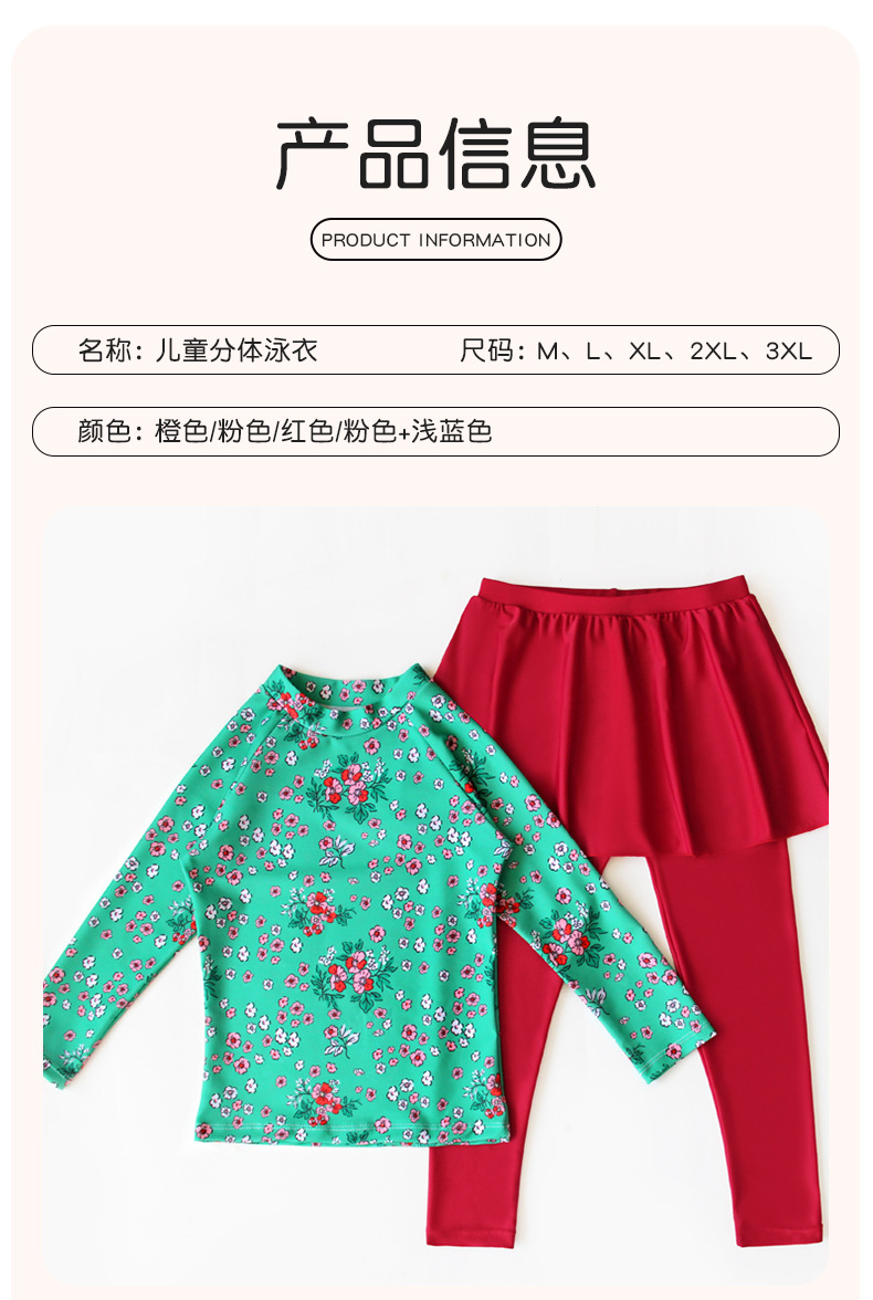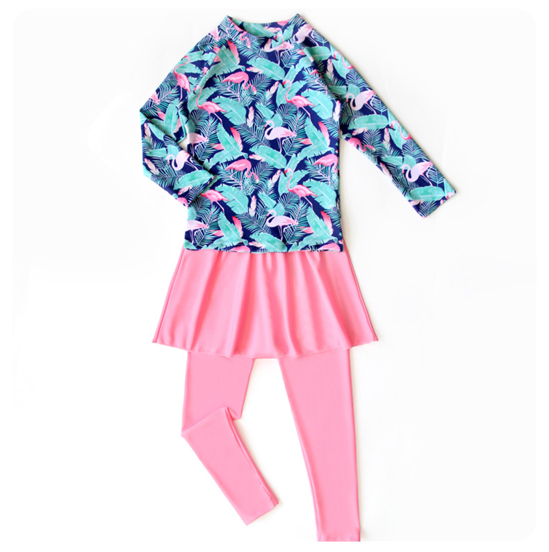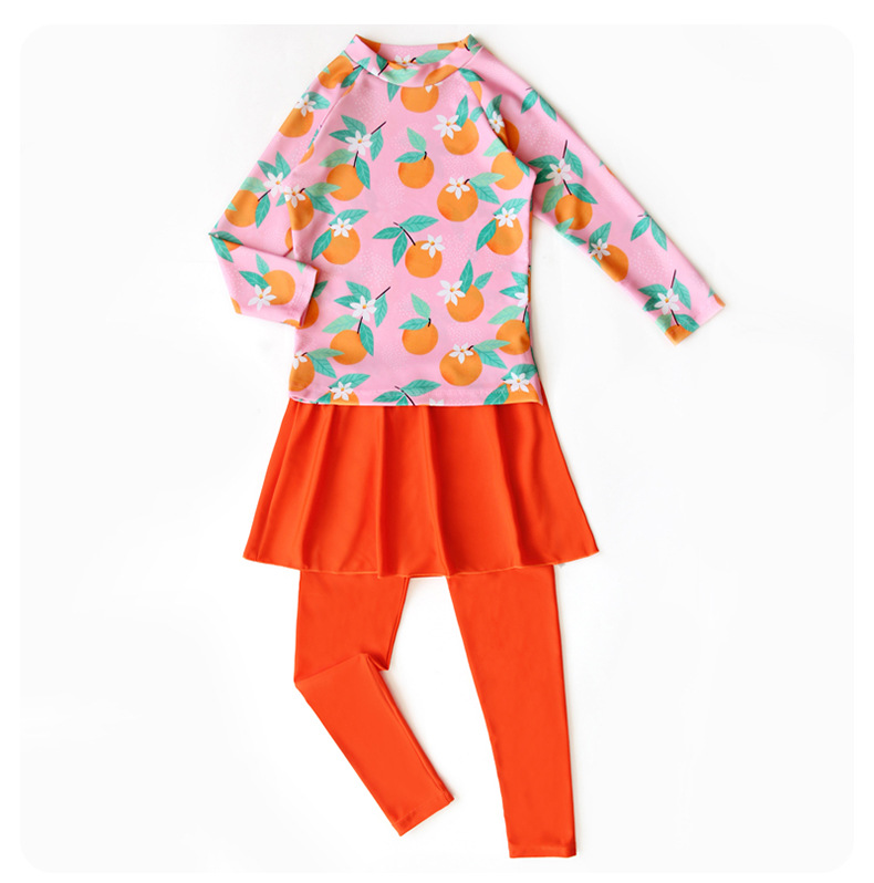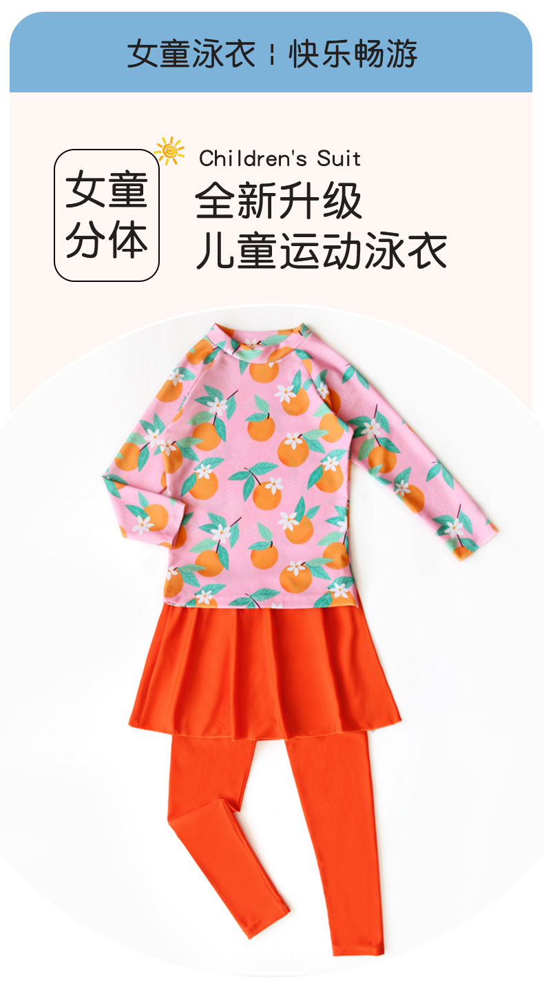 아동용 수영복, 여아용 긴팔 자외선 차단 수영복, 중대형 아동용 바지 스커트 스타일 속건 여아용 수영복 한국 공주