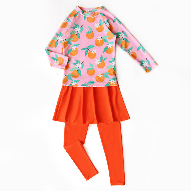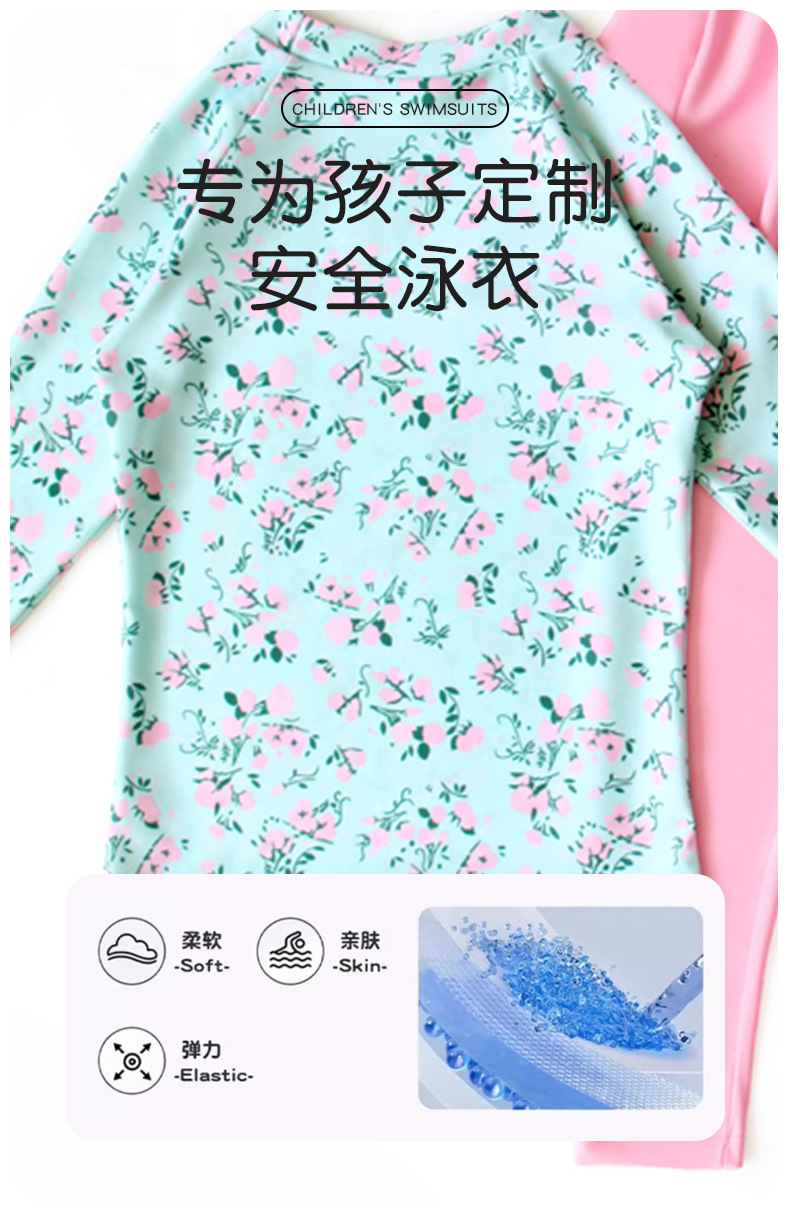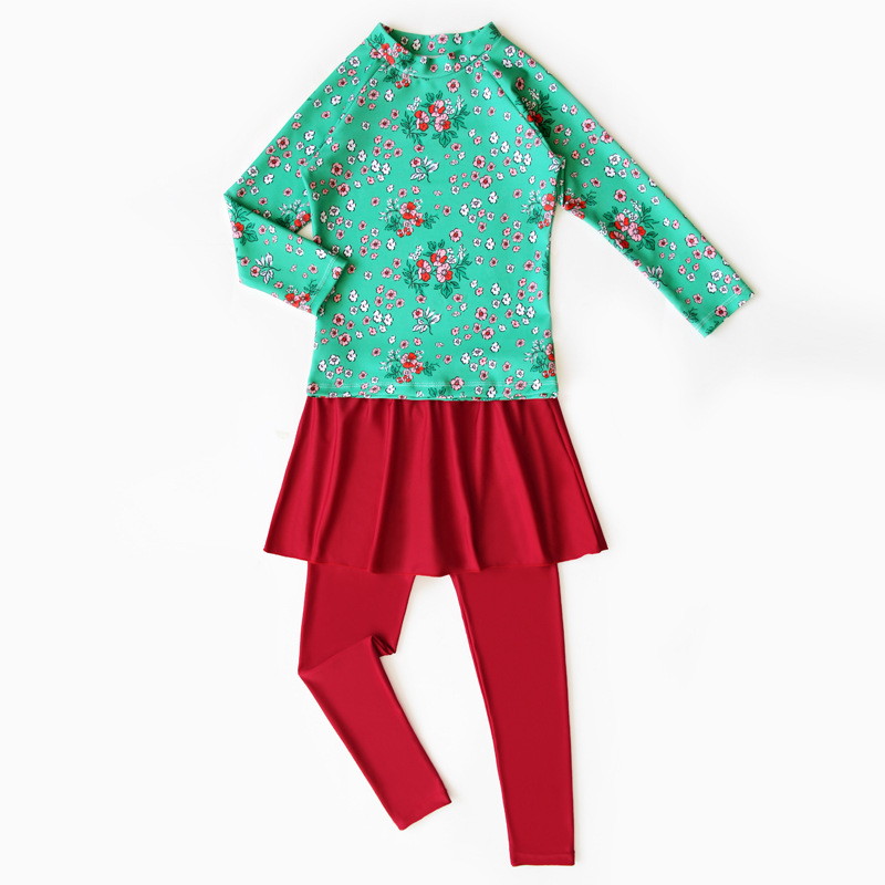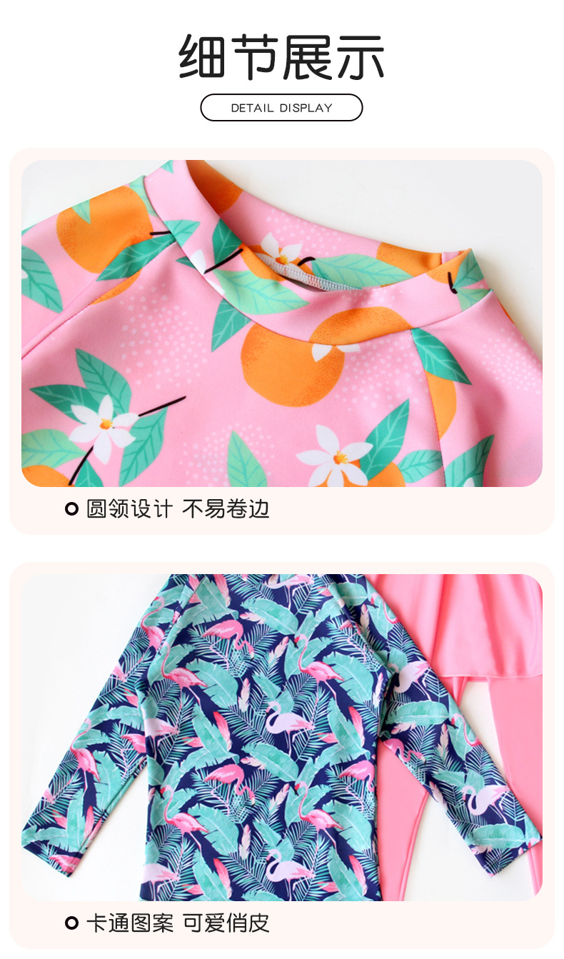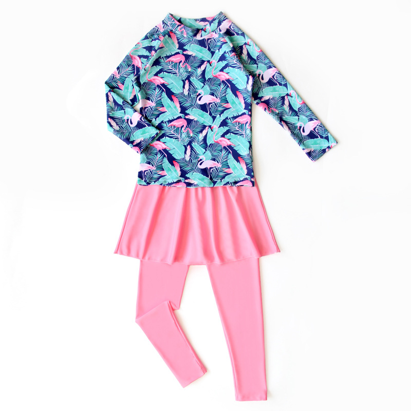 아동용 수영복, 여아용 긴팔 자외선 차단 수영복, 중대형 아동용 바지 스커트 스타일 속건 여아용 수영복 한국 공주