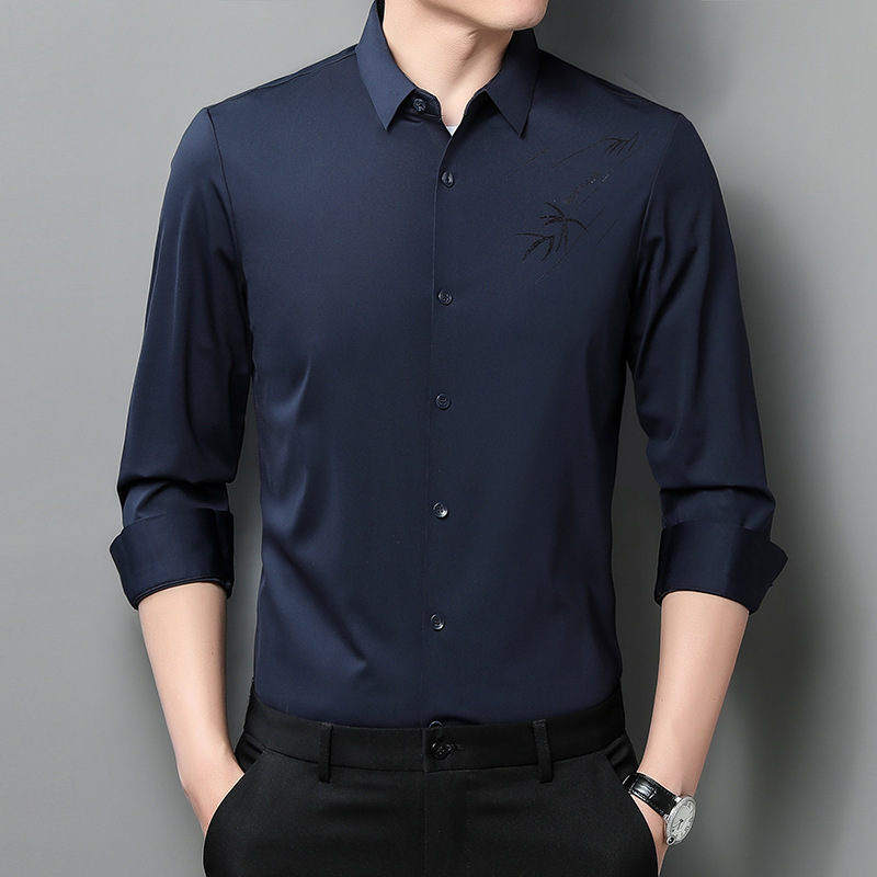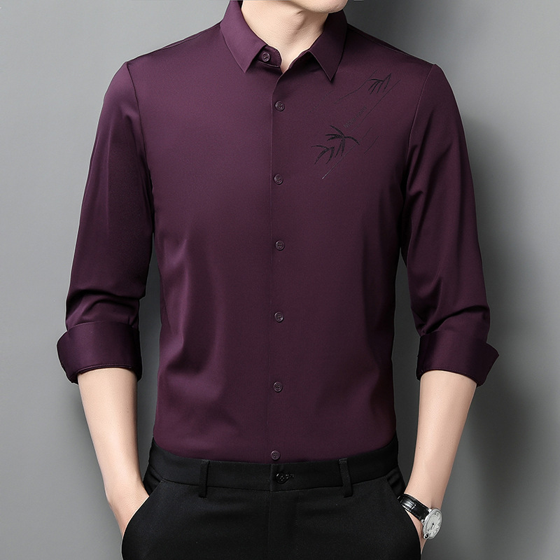 봄과 가을 새로운 남성 긴팔 원활한 셔츠 중년을위한 탄성 단색 얇은 비 화학적 비즈니스 셔츠