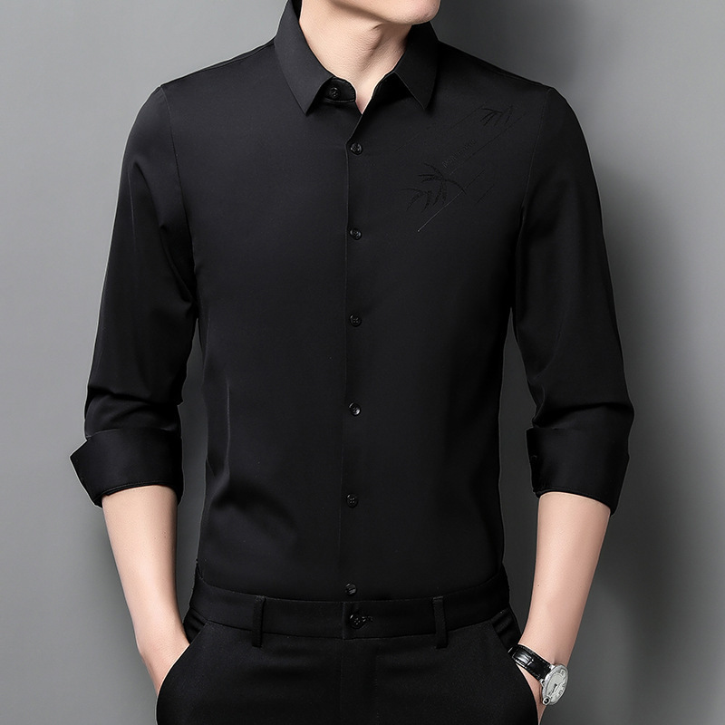 봄과 가을 새로운 남성 긴팔 원활한 셔츠 중년을위한 탄성 단색 얇은 비 화학적 비즈니스 셔츠스토어 가기