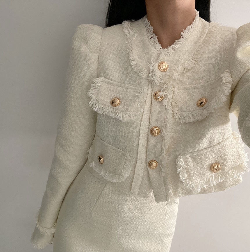 한국식 프렌치 스타일 패셔너블 슬리밍 슈트 여성용 하이엔드 긴팔 탑과 하이웨이스트 하프 스커트스토어 가기