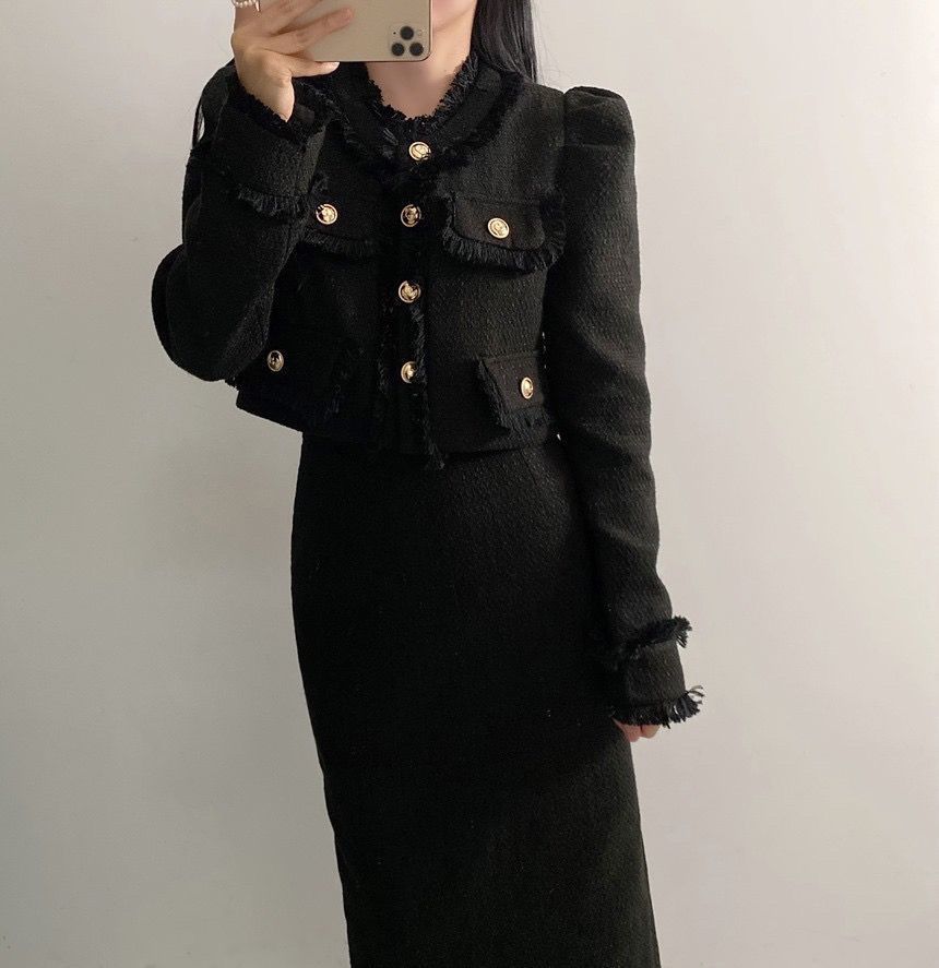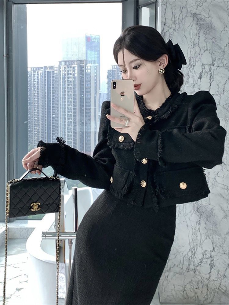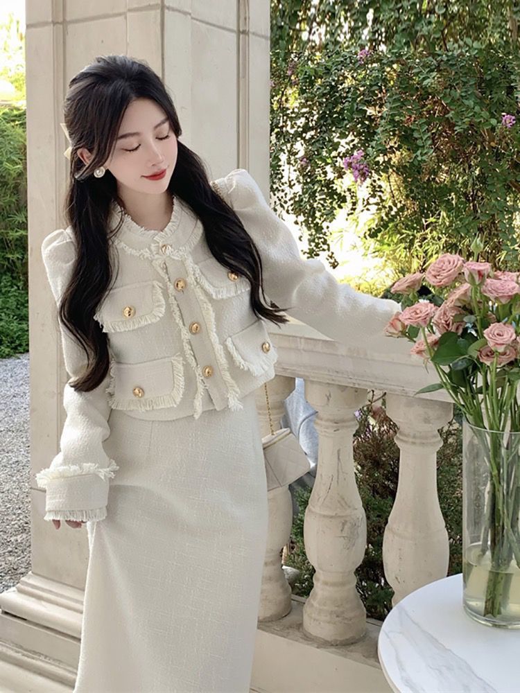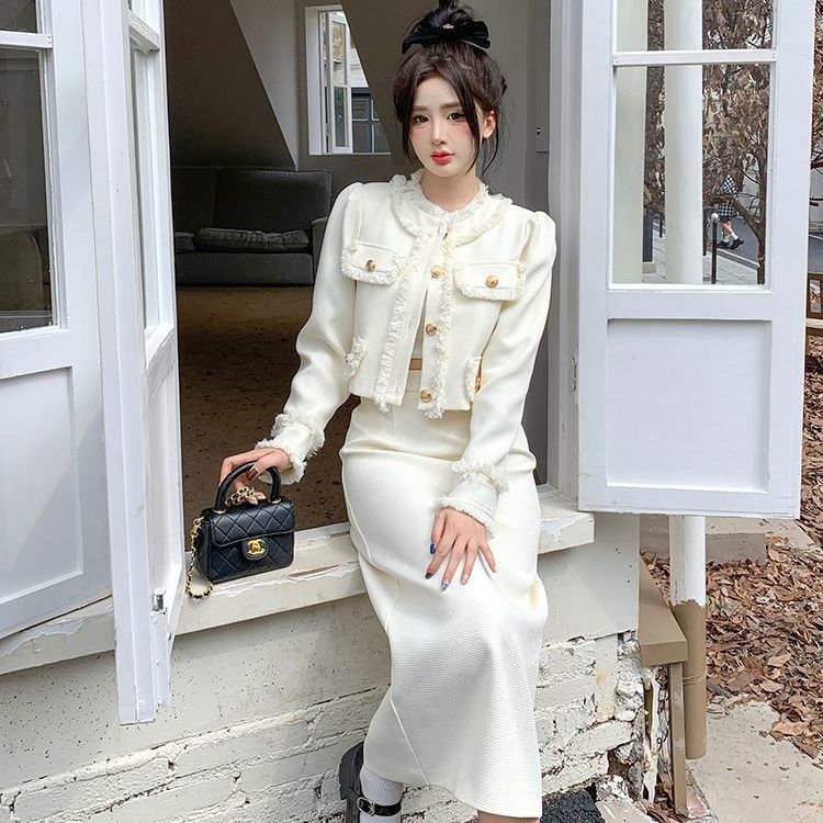 한국식 프렌치 스타일 패셔너블 슬리밍 슈트 여성용 하이엔드 긴팔 탑과 하이웨이스트 하프 스커트